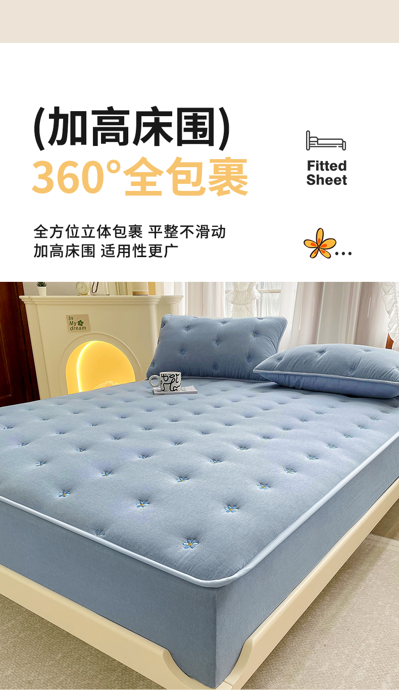 (总)予梦家纺 2024新款A类夹棉防水床笠,本白色,宾利蓝,冰山灰,深粉色,天空蓝,茵草绿,樱花粉,优雅紫