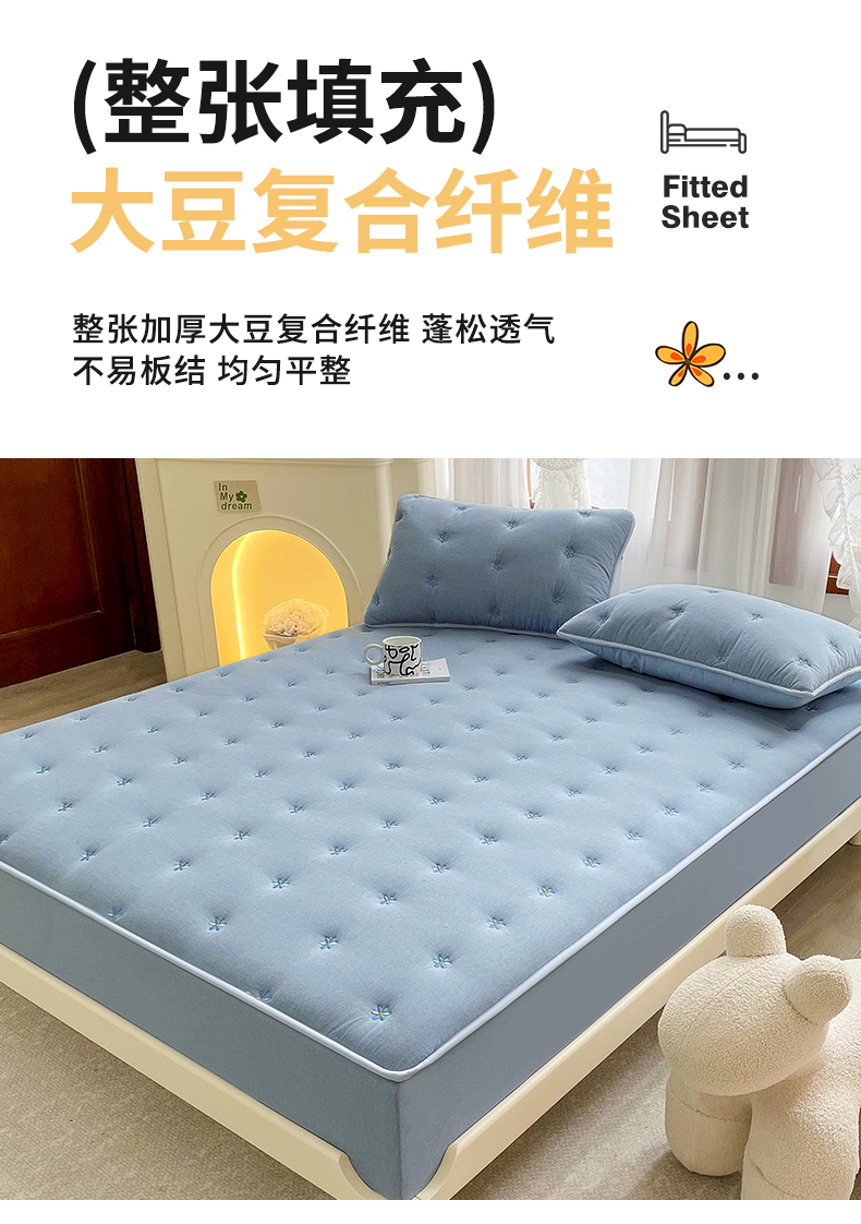 (总)予梦家纺 2024新款点绣款大豆夹棉床护垫床垫-阿卡丽,阿卡丽-雪白,阿卡丽-草绿,阿卡丽-卡其,阿卡丽-浅灰,阿卡丽-深玉,阿卡丽-天蓝