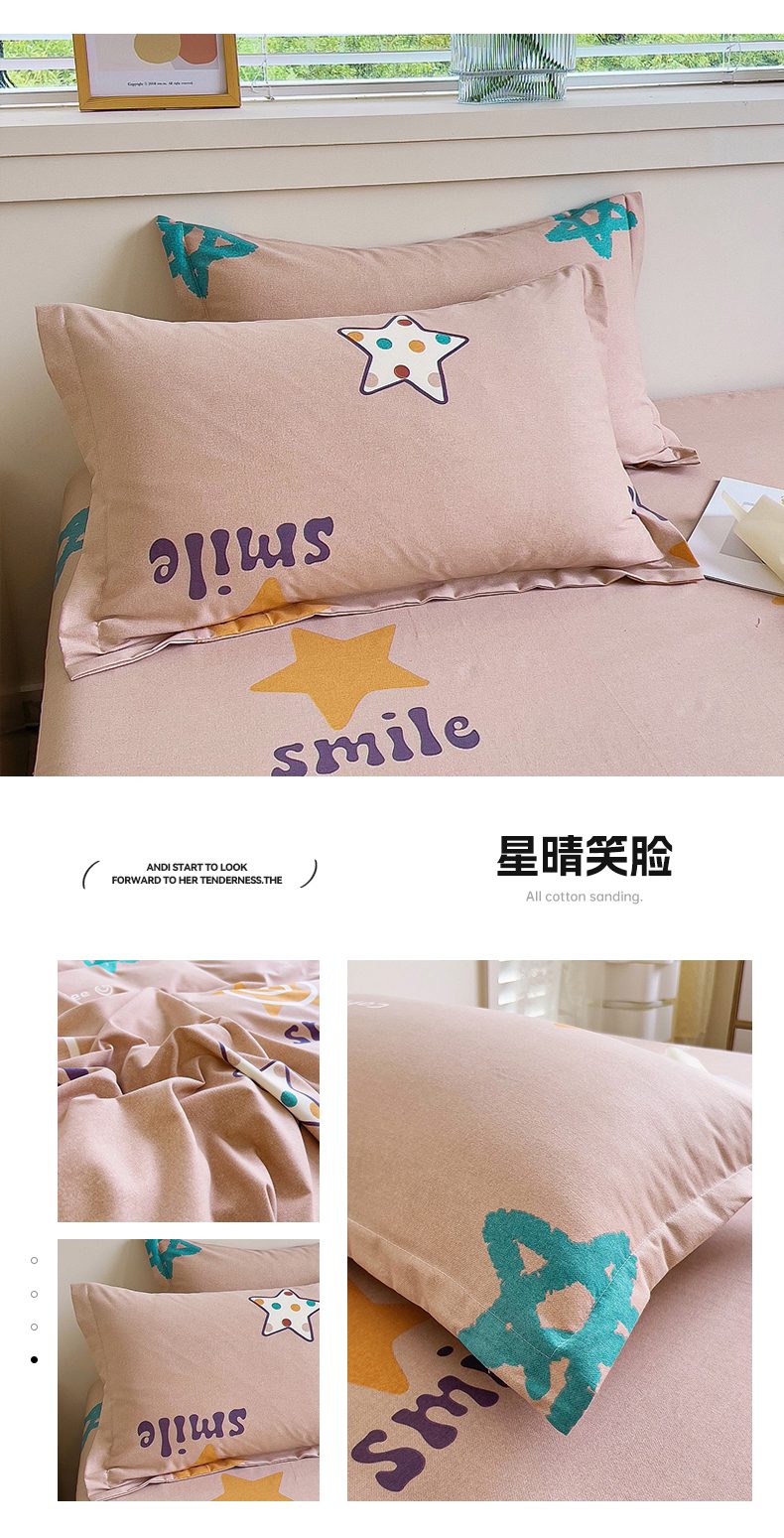 商品名称:优品阁 2024新款全棉磨毛四件套单品系列-单枕套 星晴笑脸