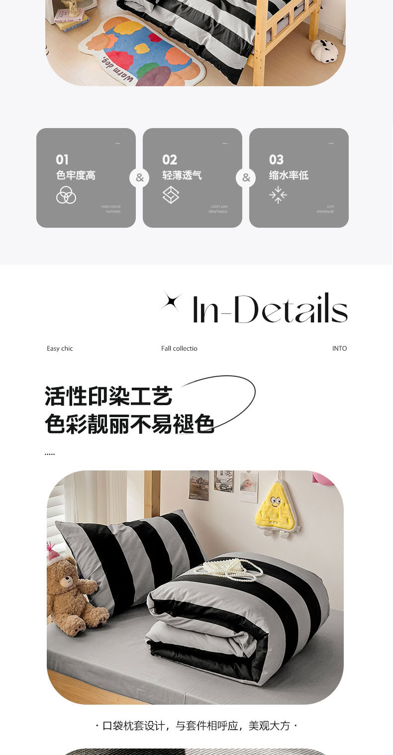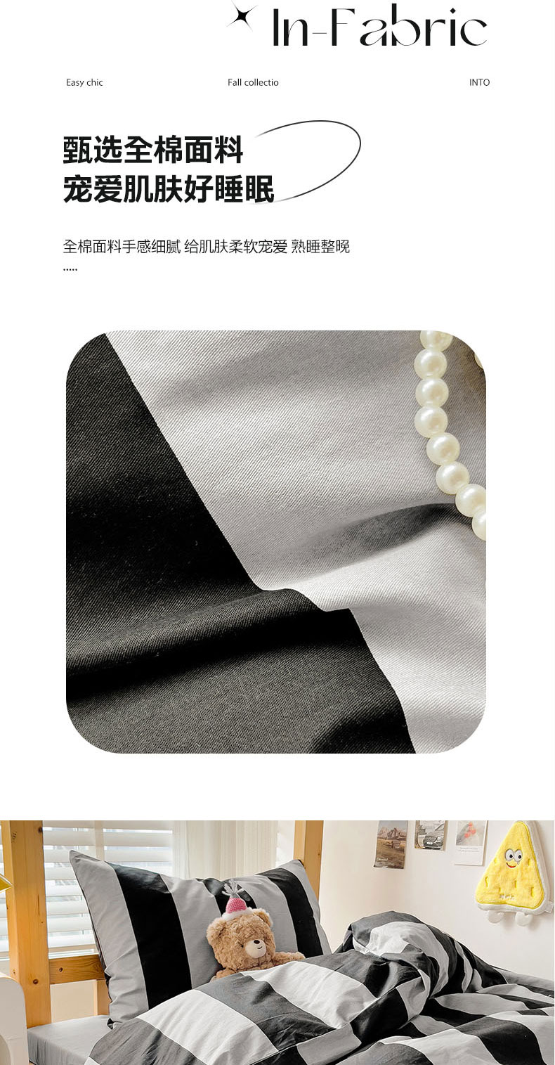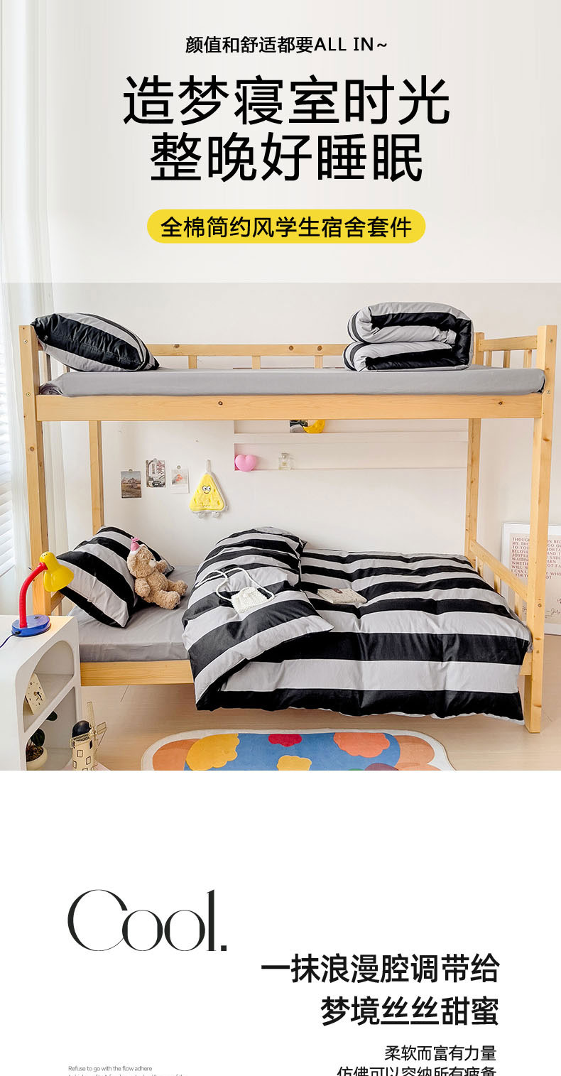 (总)梦家居 2024新款全棉简约风学生宿舍三件套,波点米白,布拉格,彩虹条纹,彩色点点,蝶影,黑白条纹-黑,宽条浅蓝,宽条深灰,梦幻森林,米黑条,摩卡宽条,墨竹-黑色,墨竹-米色,新泽西,星空蓝,旋律黄,自由