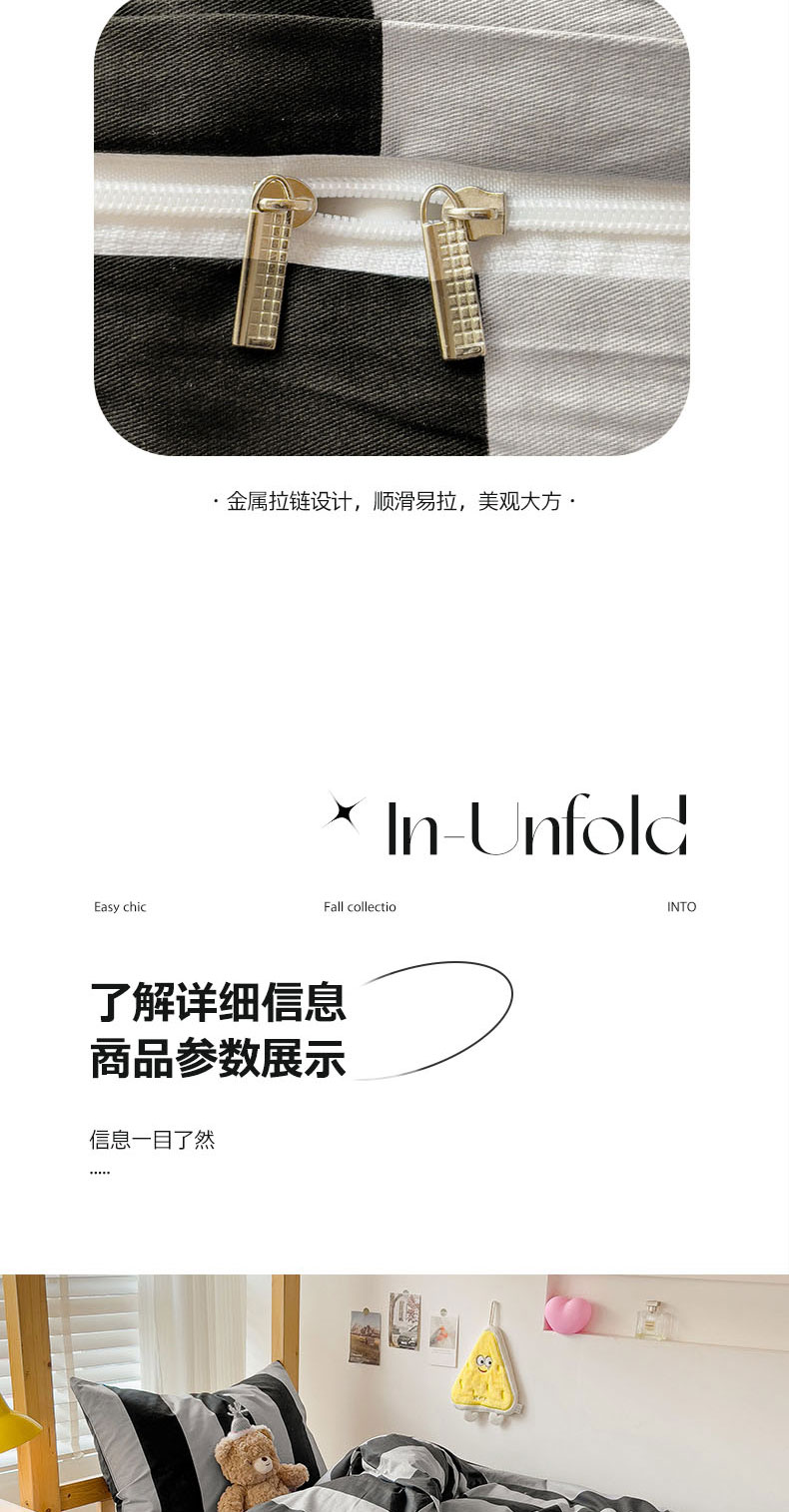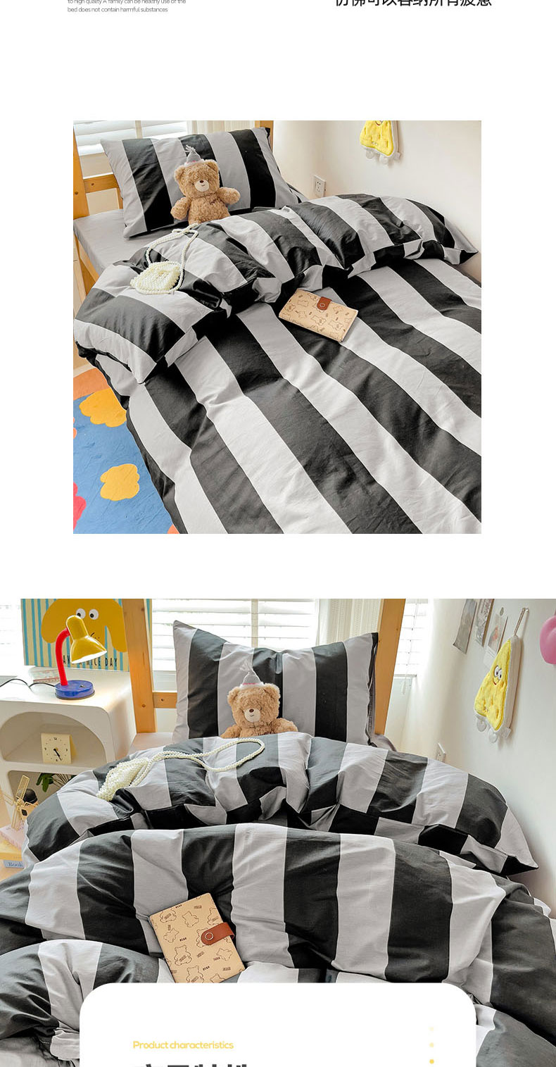 (总)梦家居 2024新款全棉13372简约小清新四件套,彩虹条纹,墨竹—黑色,墨竹—米色