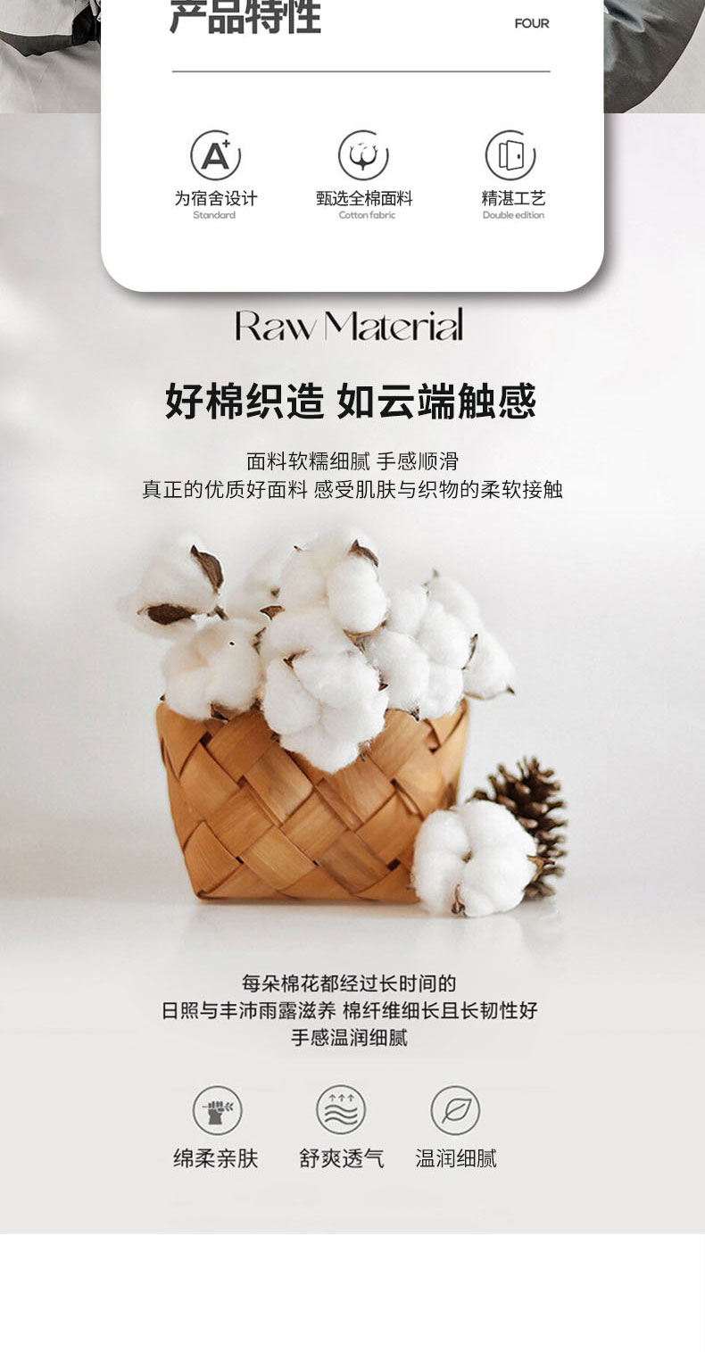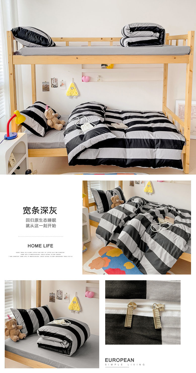商品名称:梦家居 2024新款全棉简约风学生宿舍三件套 宽条深灰