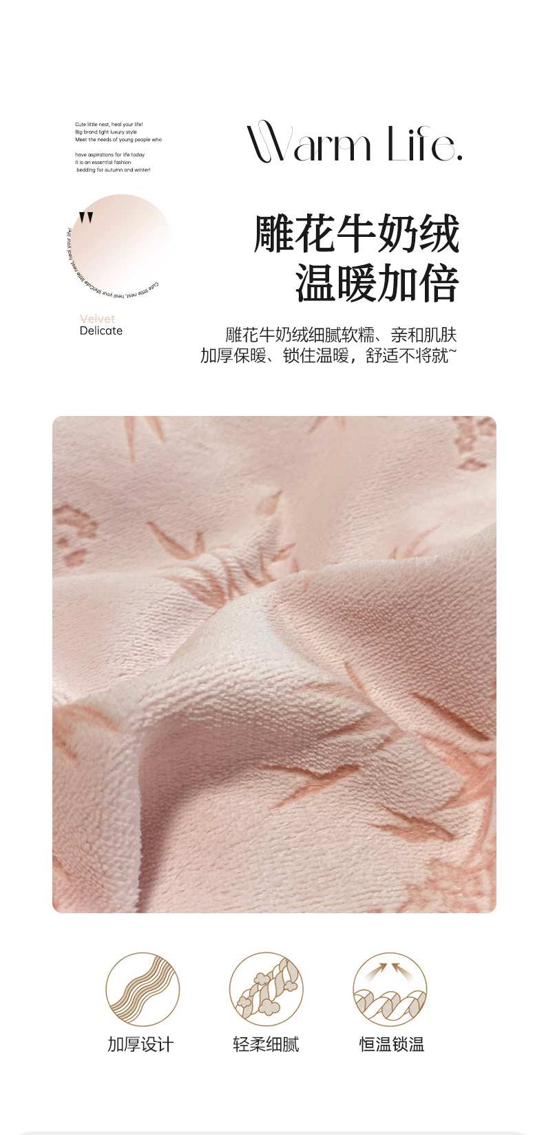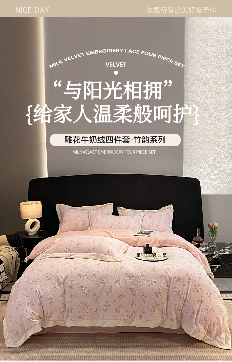 当前位置: 91家纺网 > 商品网购 > 床品套件 > 四件套 > 牛奶绒四件套 > (总)七七家纺 2025新款雕花牛奶绒四件套--竹韵系列