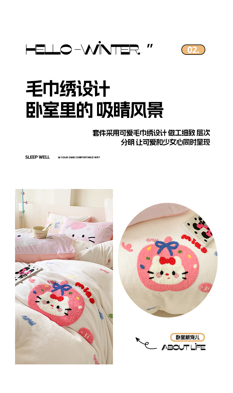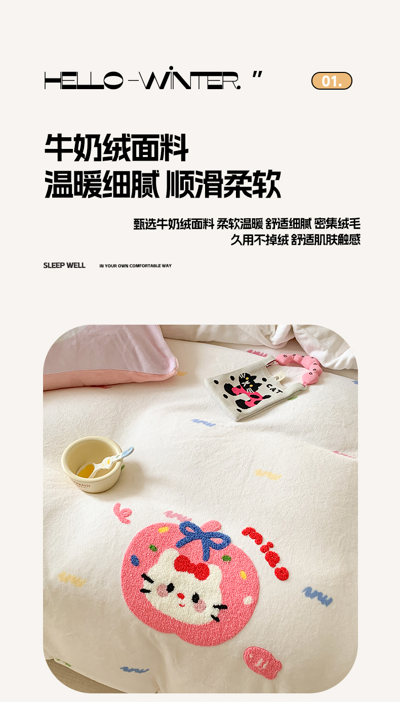 当前位置: 91家纺网 > 商品网购 > 床品套件 > 四件套 > 牛奶绒四件套 > 澳萝拉 2024新款牛奶绒毛巾绣四件套 苹果猫咪