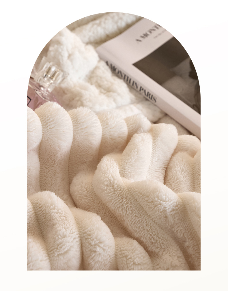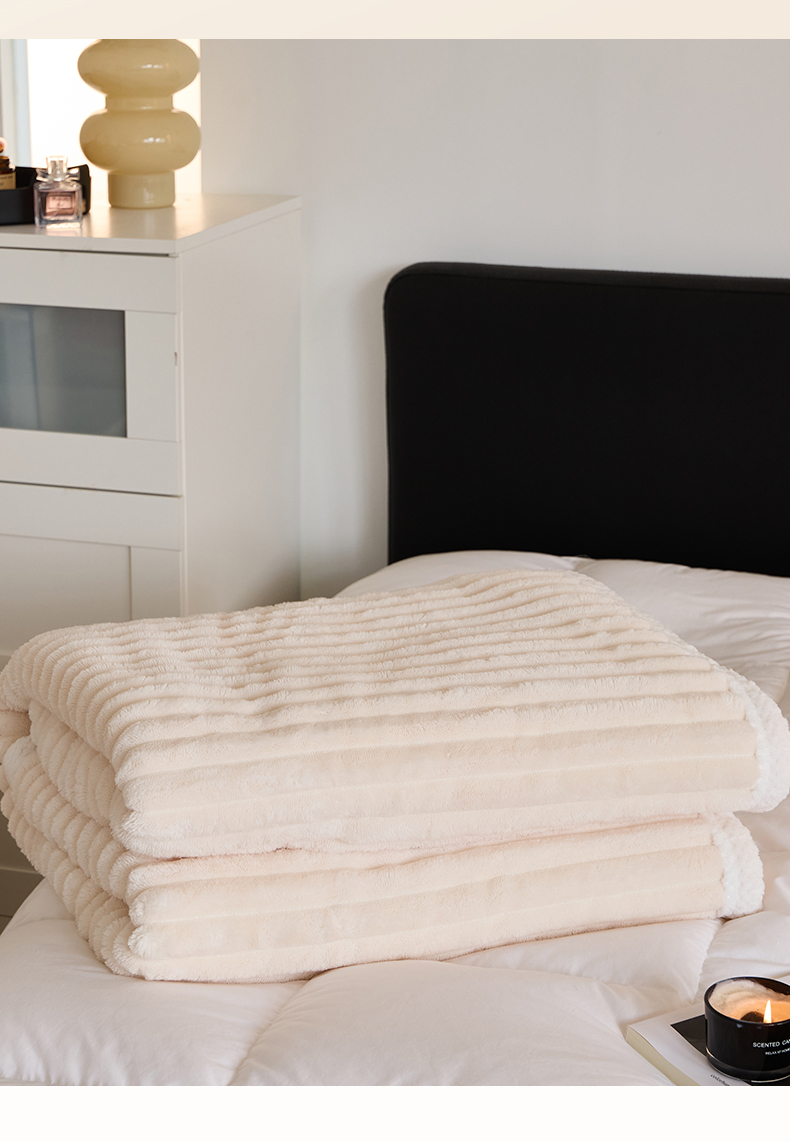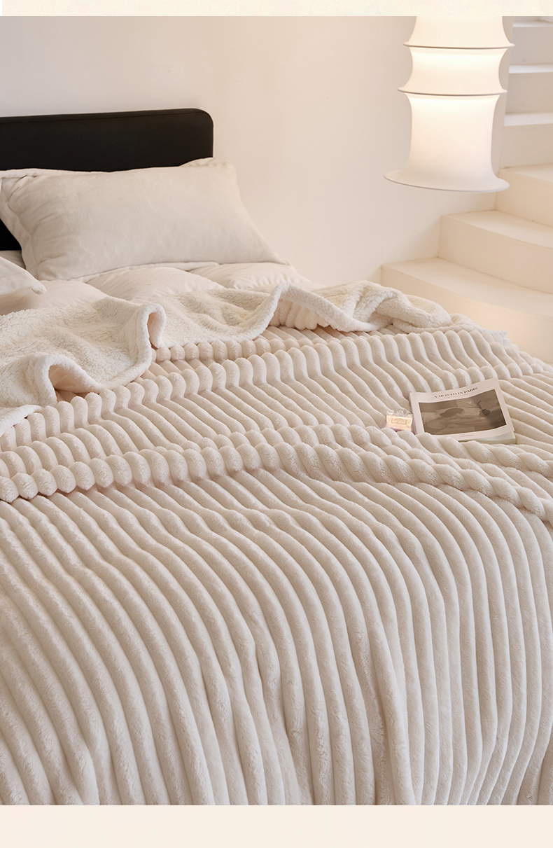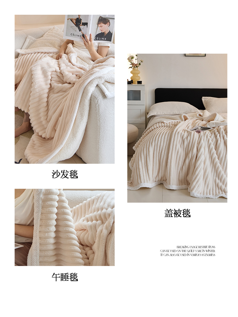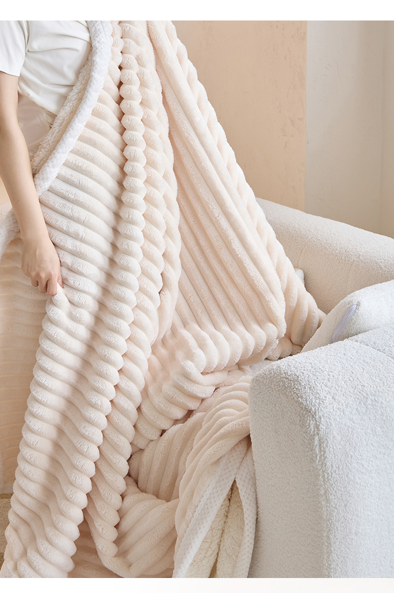 商品名称:金喜 2024新款立体抽条提花双面绒毯多用途毛毯办公室午睡毯家用毛毯被 乳酪白
