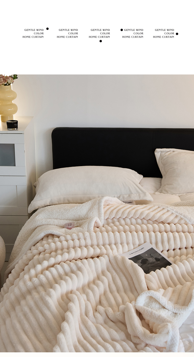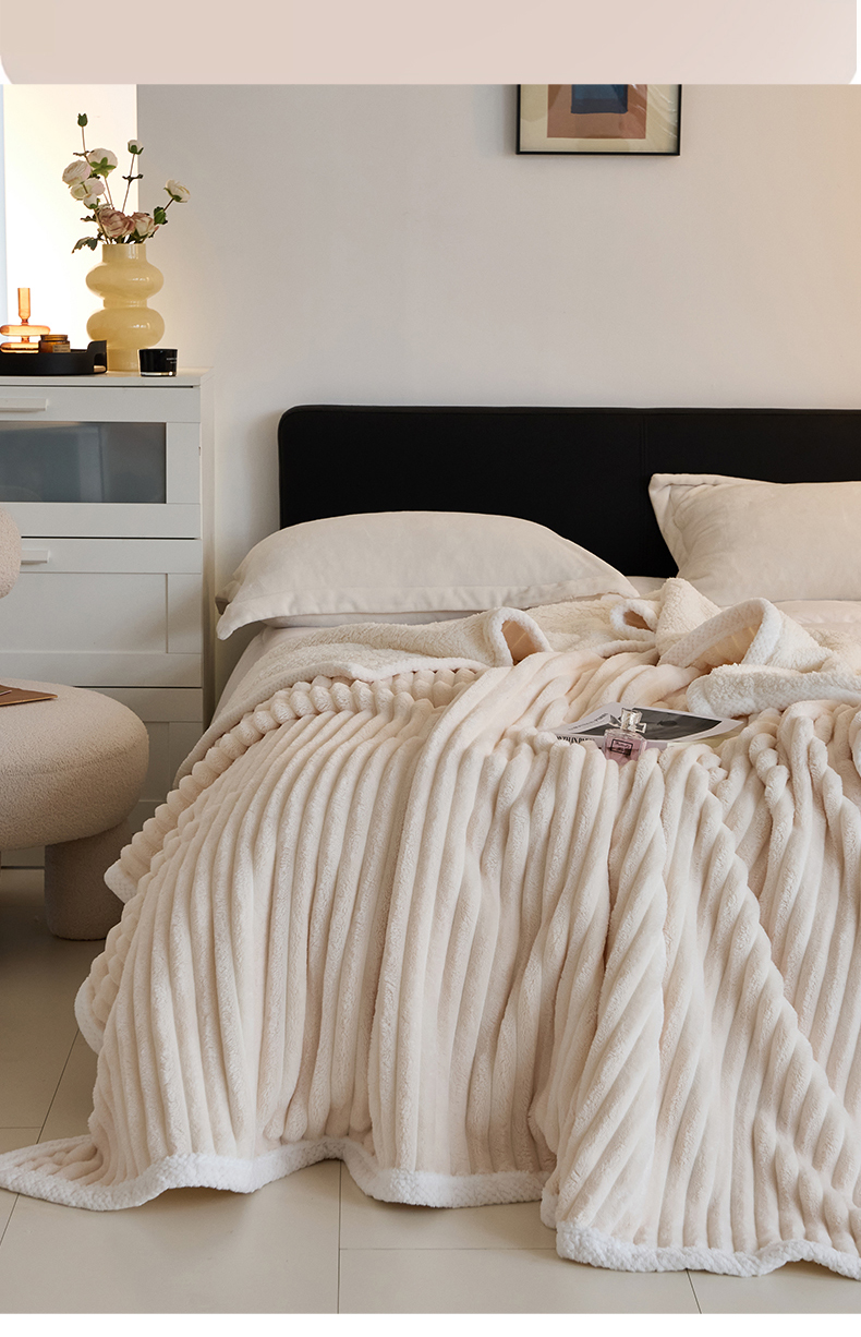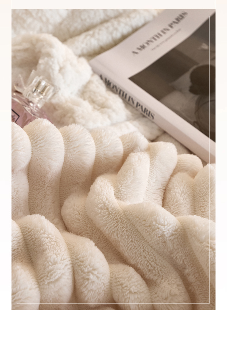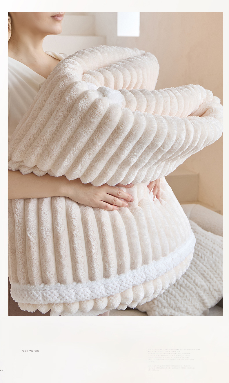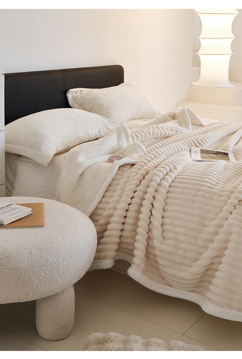 商品名称:金喜 2024新款立体抽条提花双面绒毯多用途毛毯办公室午睡毯家用毛毯被 乳酪白