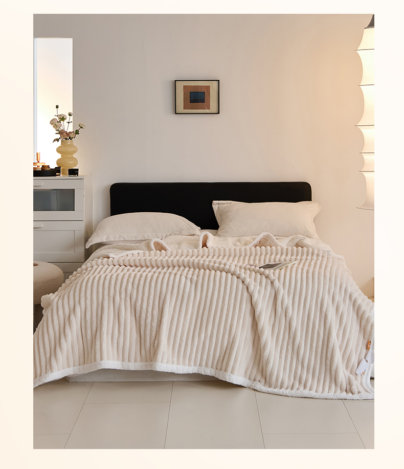 金喜 2024新款立体抽条提花双面绒毯多用途毛毯办公室午睡毯家用毛毯被 乳酪白