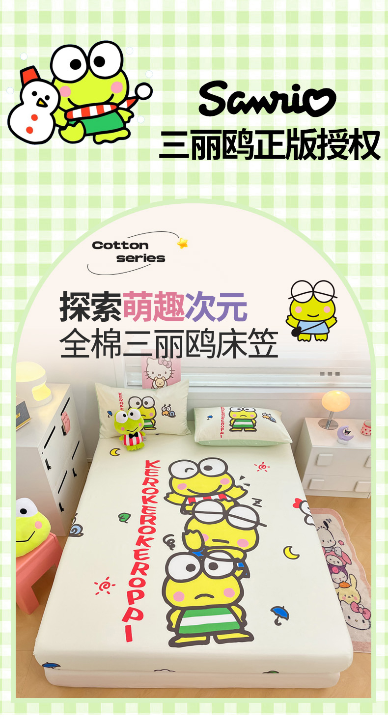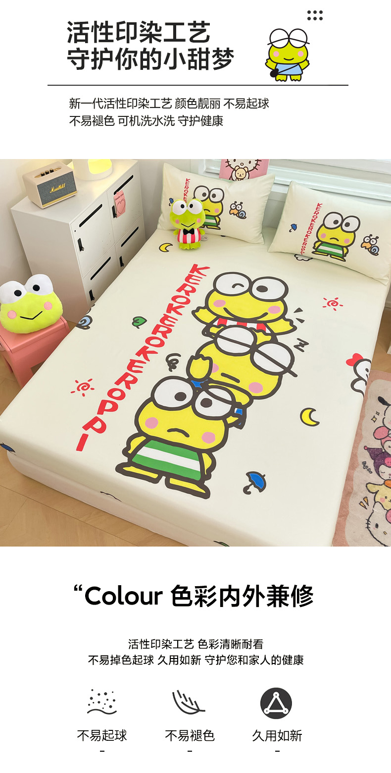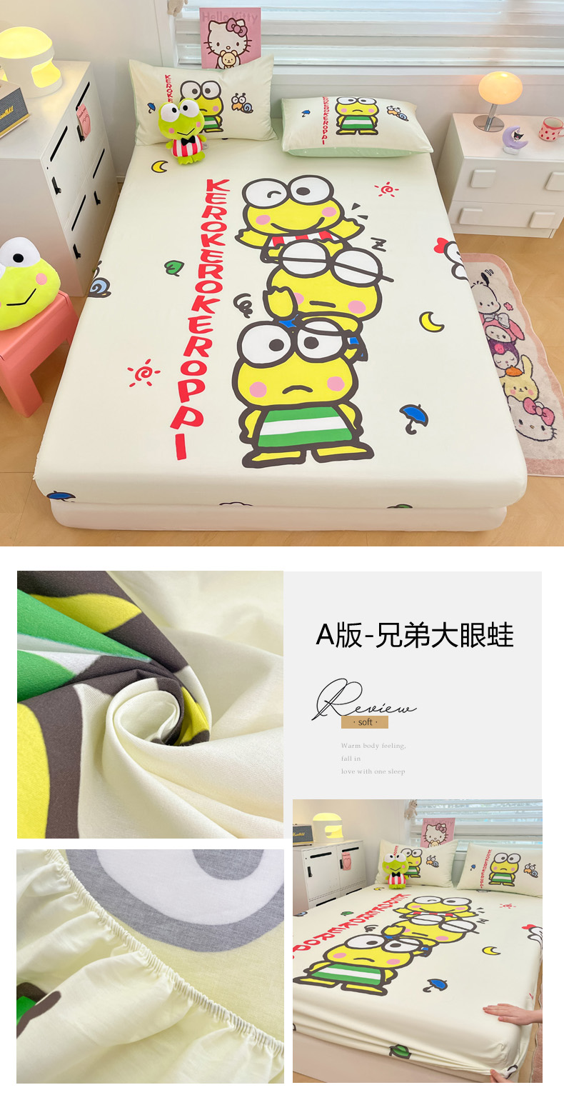 商品名称:暮思家居 2025新款正版授权三丽鸥大阪全棉数码印花纯棉单品床笠(第二批) A版-兄弟大眼蛙