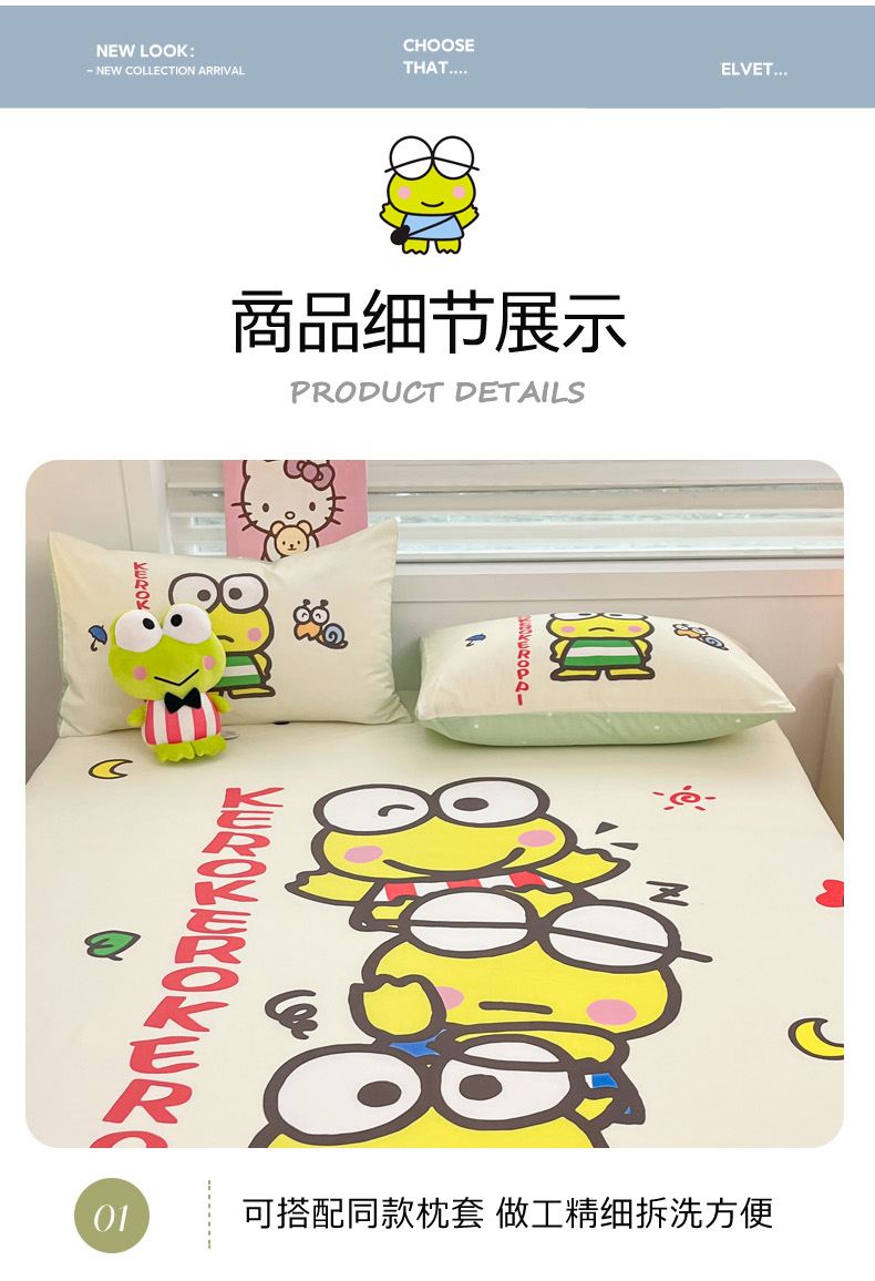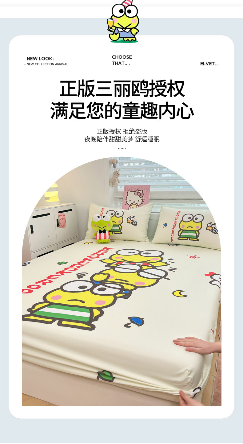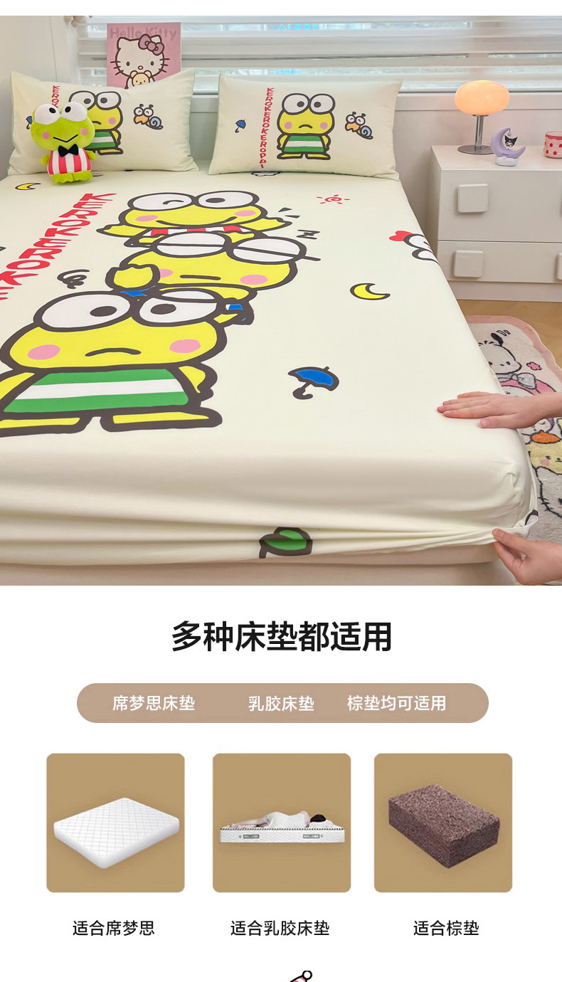 商品名称:暮思家居 2025新款正版授权三丽鸥大阪全棉数码印花纯棉单品床笠(第二批) A版-兄弟大眼蛙