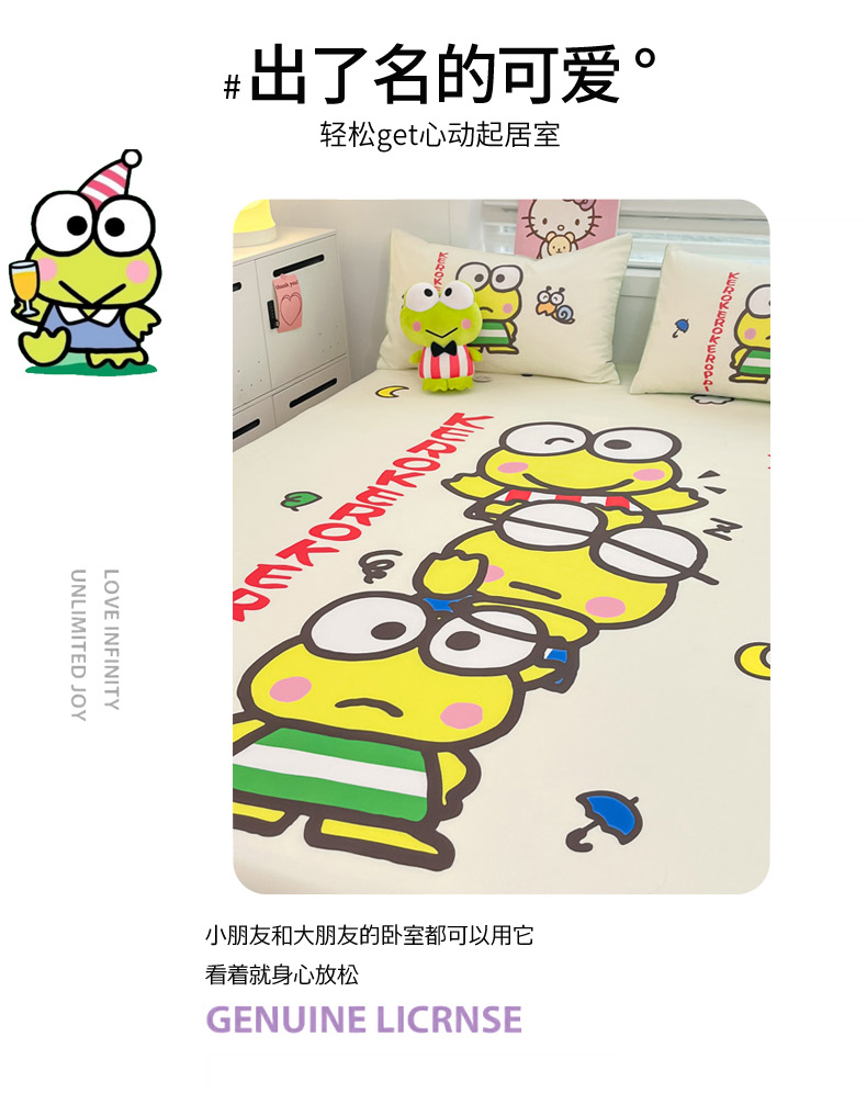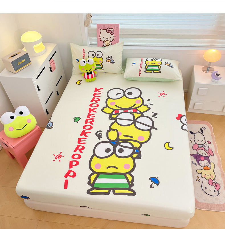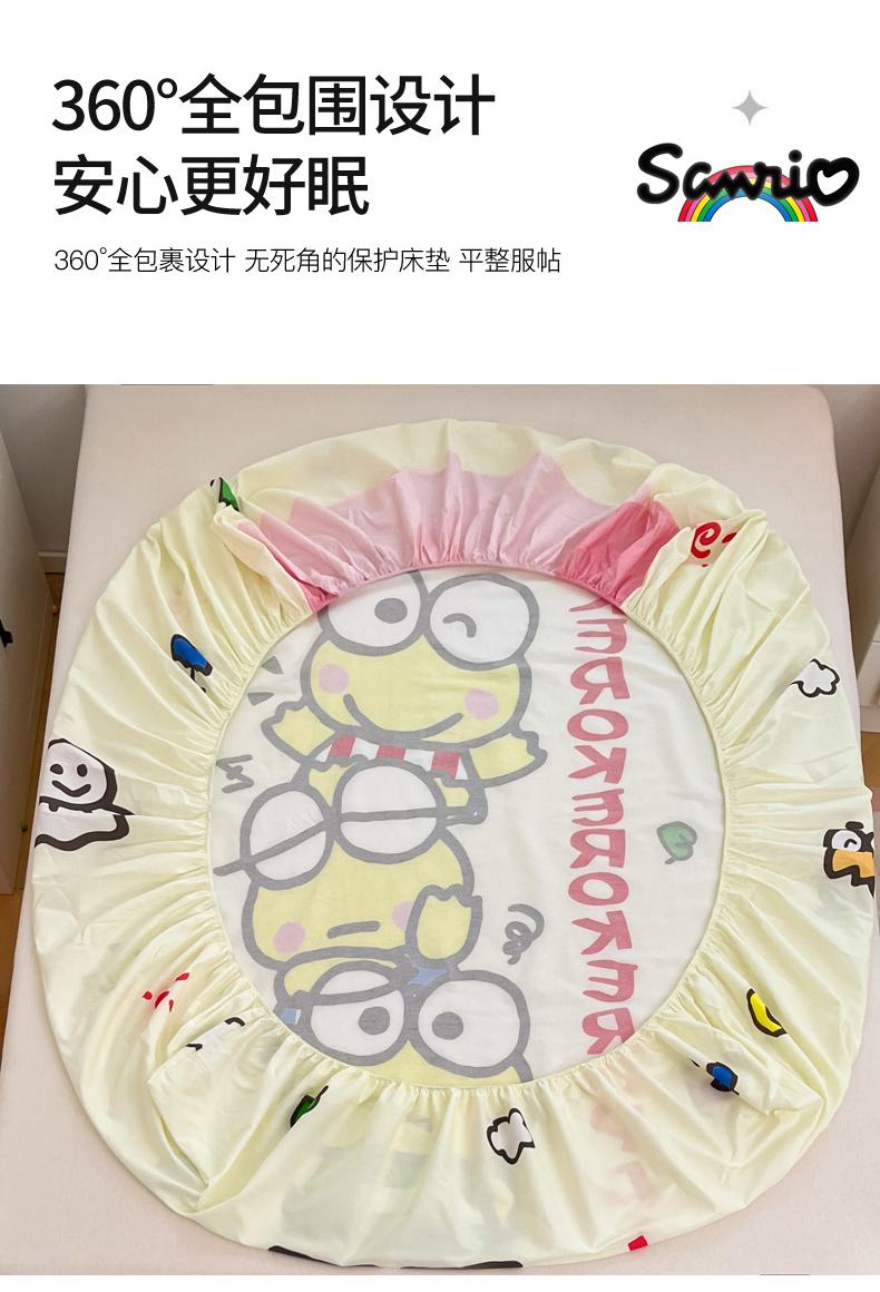 暮思家居 2025新款正版授权三丽鸥大阪全棉数码印花纯棉单品床笠(第二批) A版-兄弟大眼蛙
