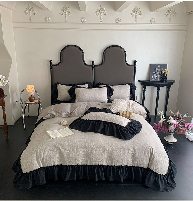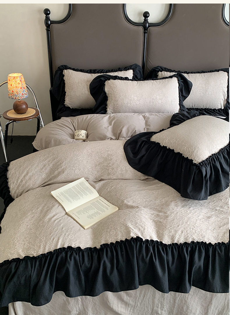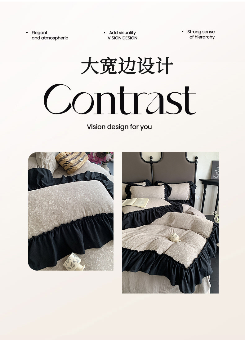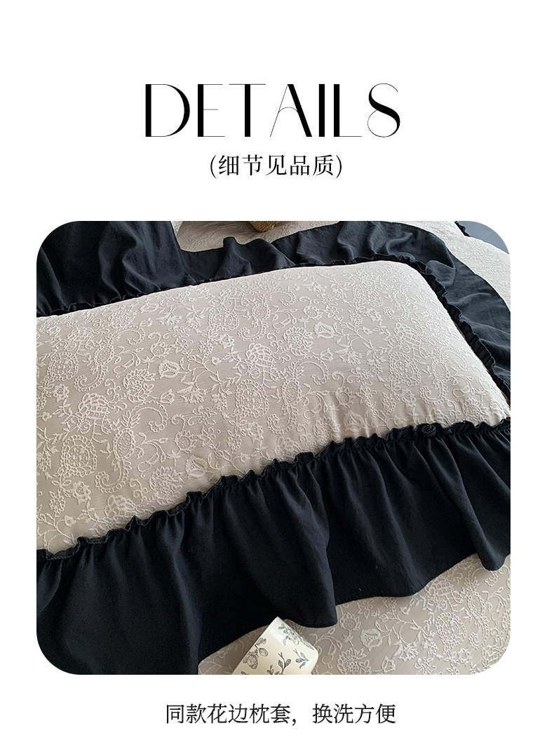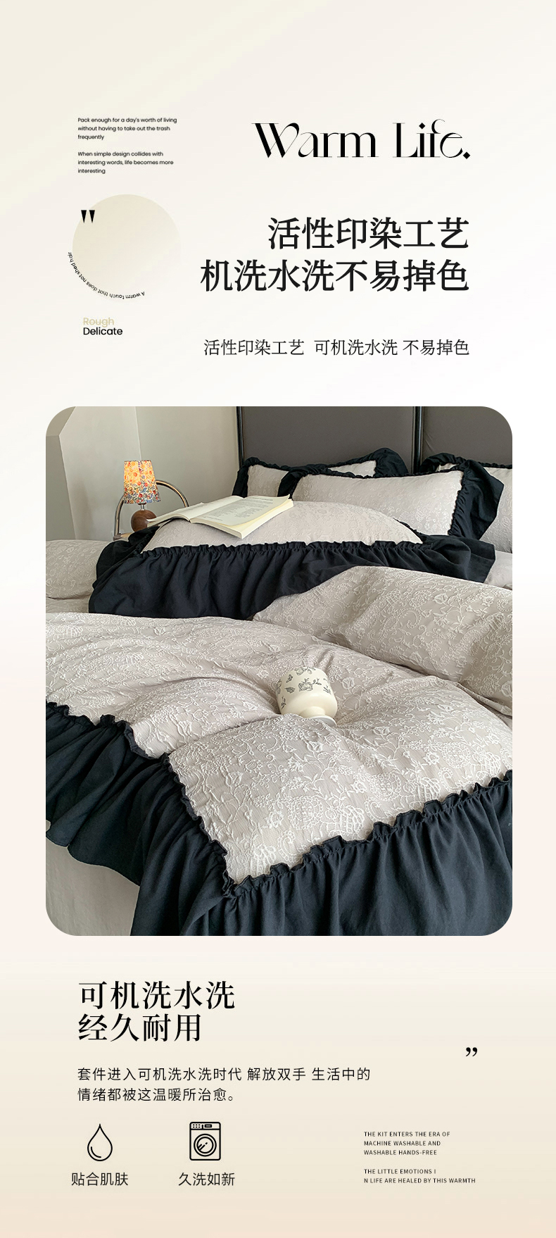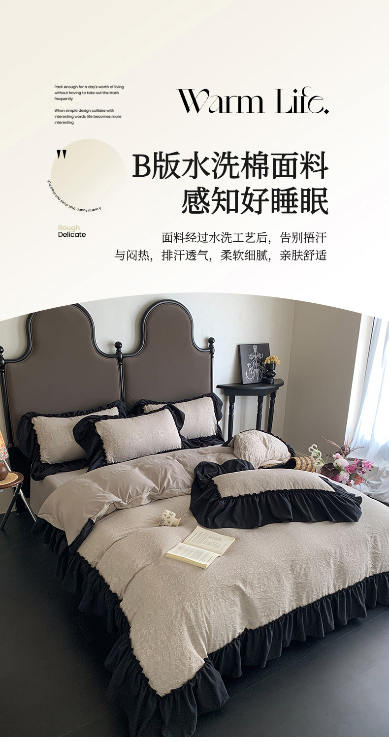 当前位置: 91家纺网 > 商品网购 > 床品套件 > 四件套 > 水洗棉四件套 > 你好美丽 2025新款莫奈水洗磨毛双层纱立体提花大花边工艺款四件套 莫奈浅咖