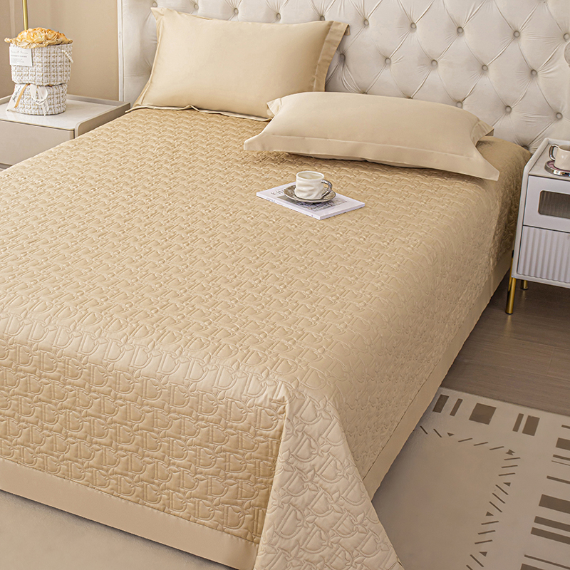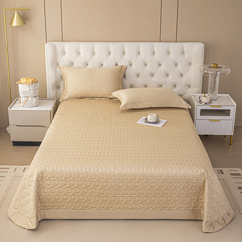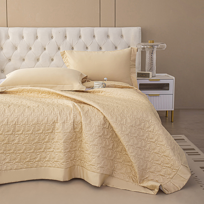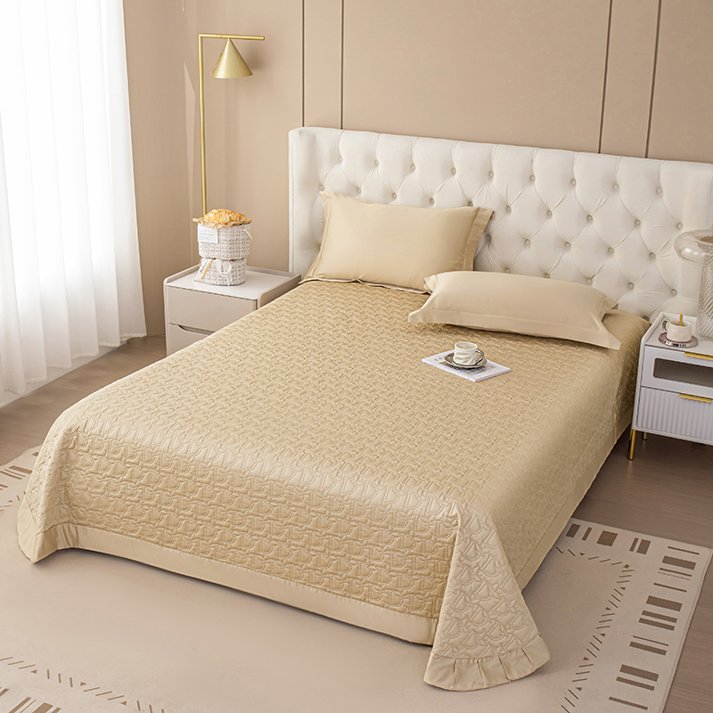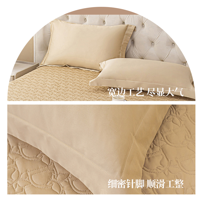 (总)金喜 2024新款100支全棉床盖蚕丝床盖三件套D型绗缝系列,白桃粉,繁花橙,粉雅灰,迷雾金,木槿绿