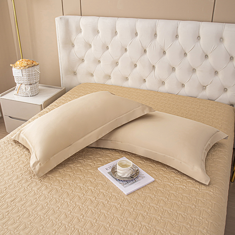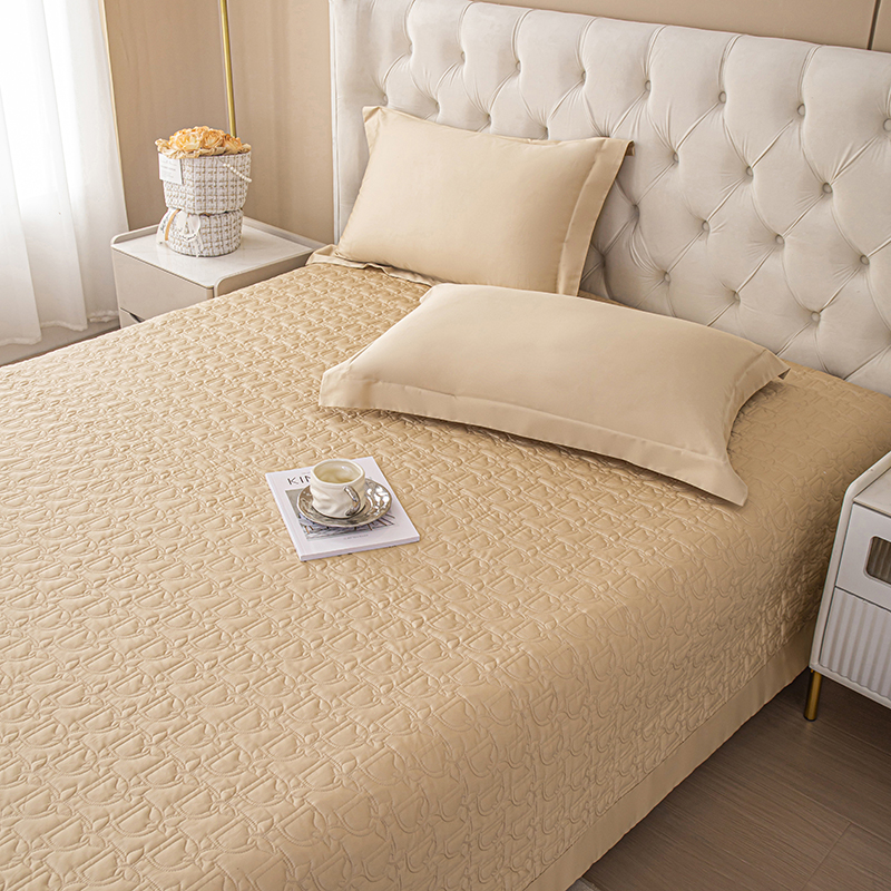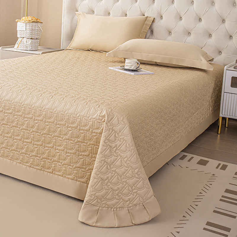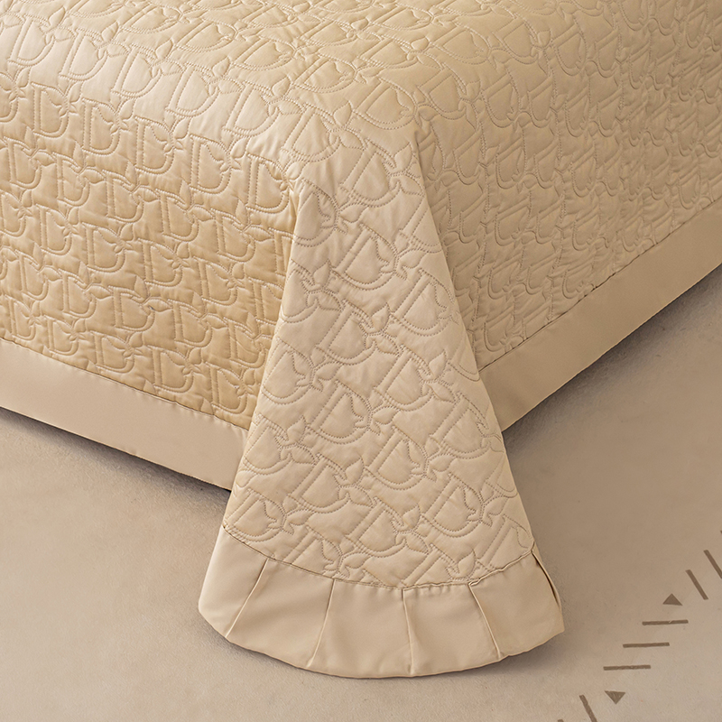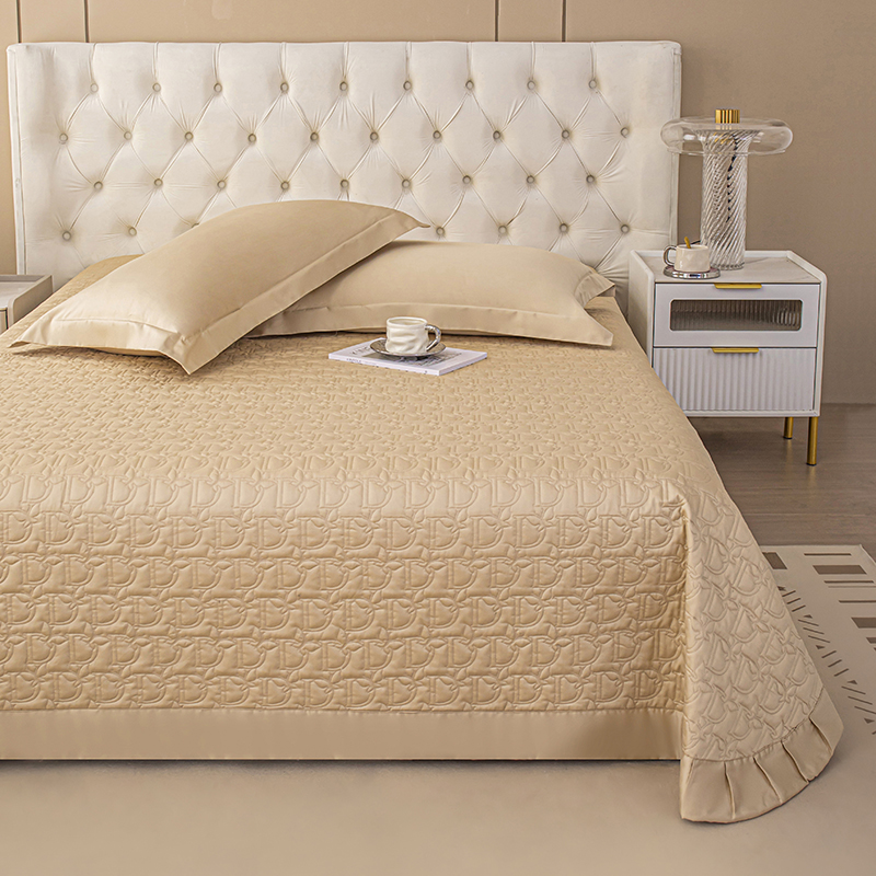 (总)金喜 2024新款100支全棉床盖蚕丝床盖三件套D型绗缝系列,白桃粉,繁花橙,粉雅灰,迷雾金,木槿绿
