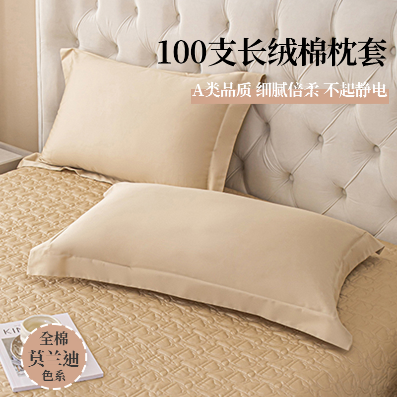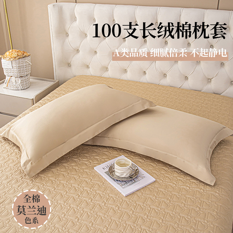 商品名称:金喜2025新款100支全棉枕套宽边工艺100S长绒棉枕头套-莫兰迪色系 迷雾金