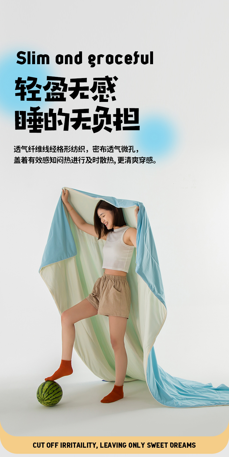 金喜 2025新款锦氨冰川凉感被裸机面料夏凉被凉感薄被子-冰菓夏被 组合图仅供展示