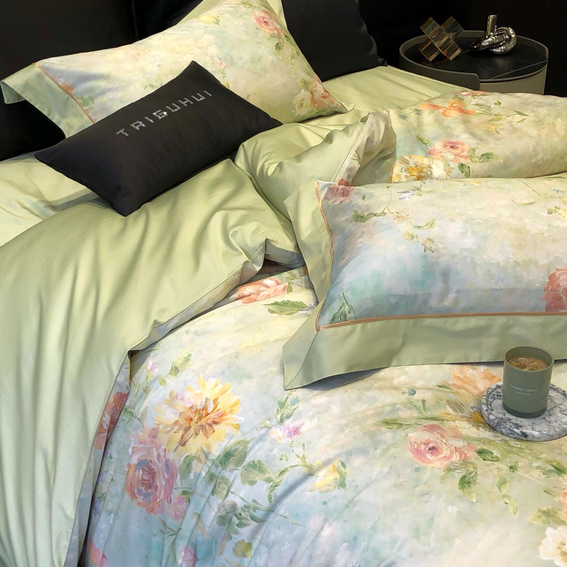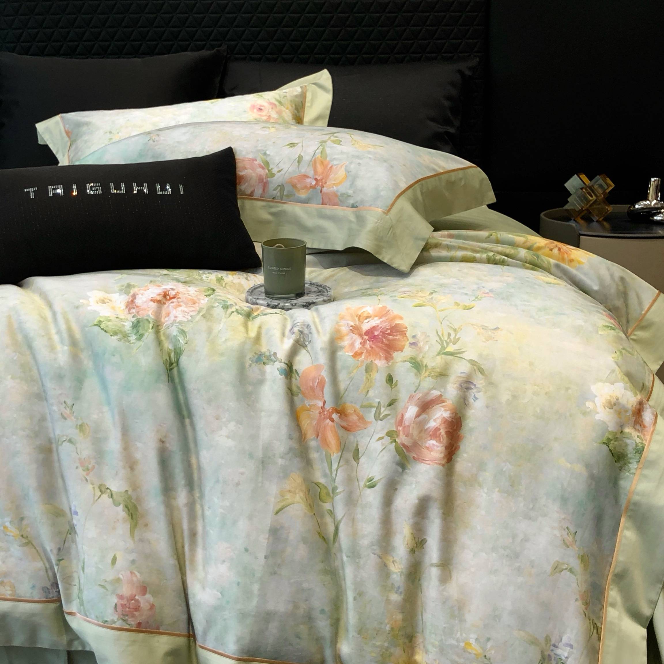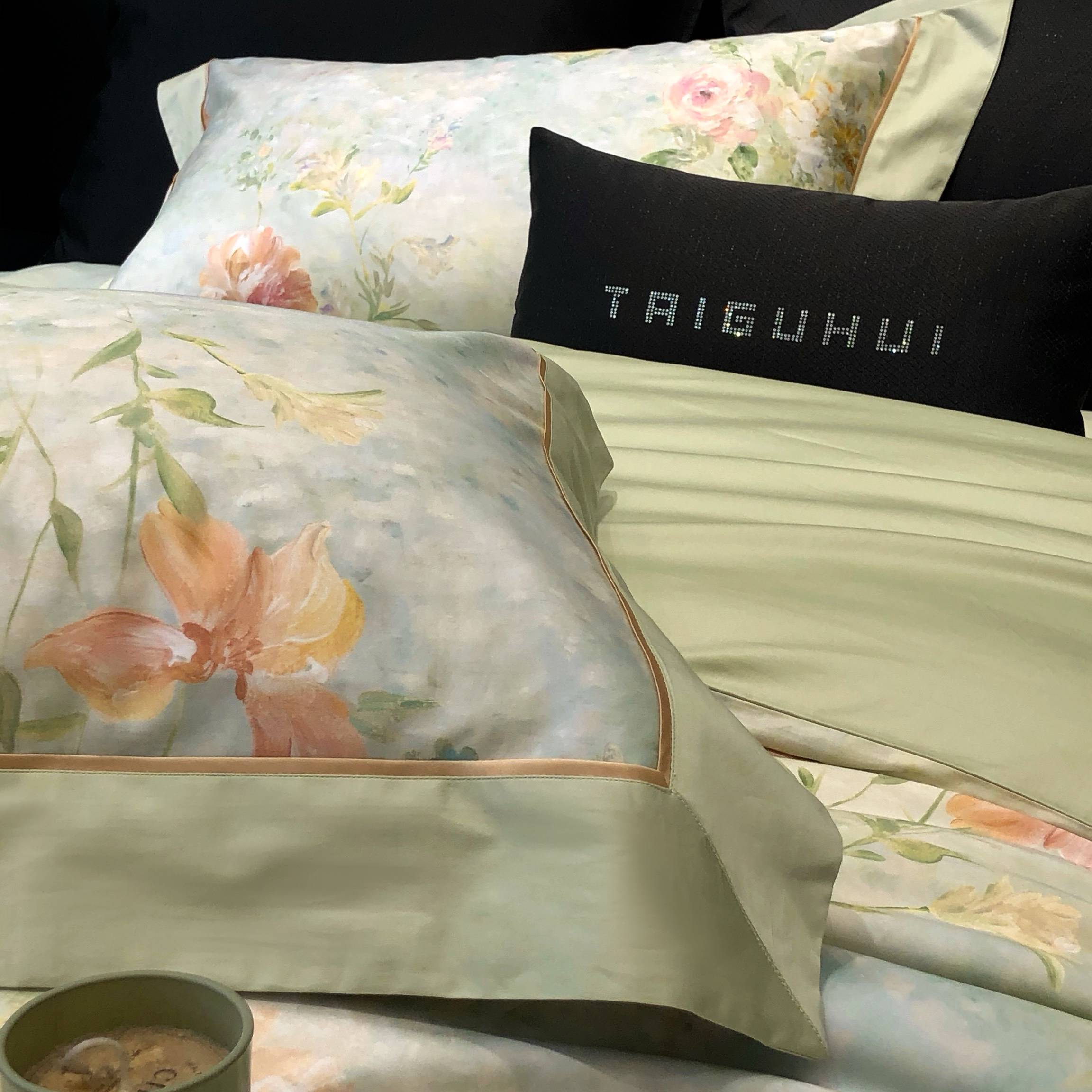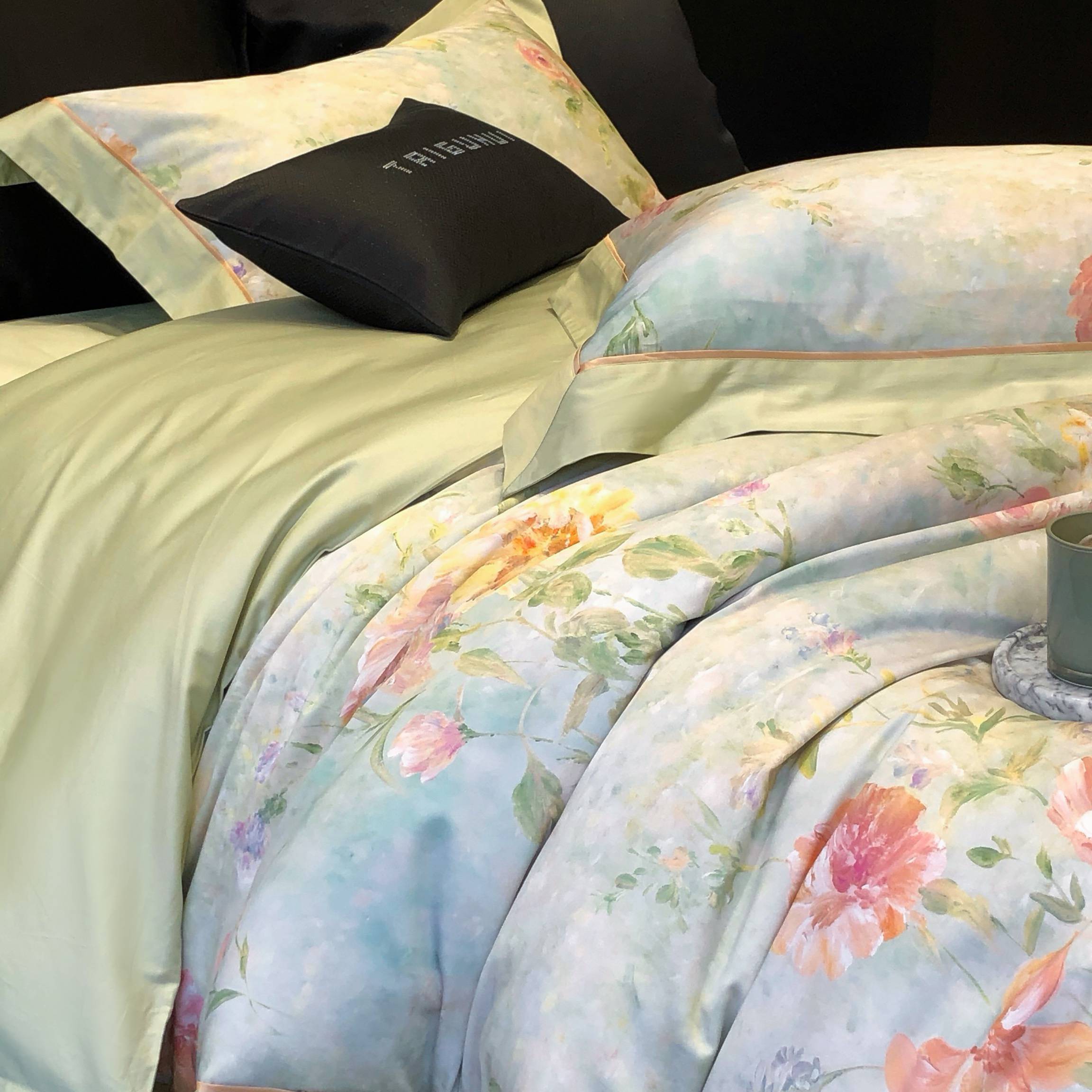 太古汇家居 2025新款高支高密长绒棉专版数码印花双拼四件套系列-都市新贵【券后不低于378】 都市新贵-本草绿