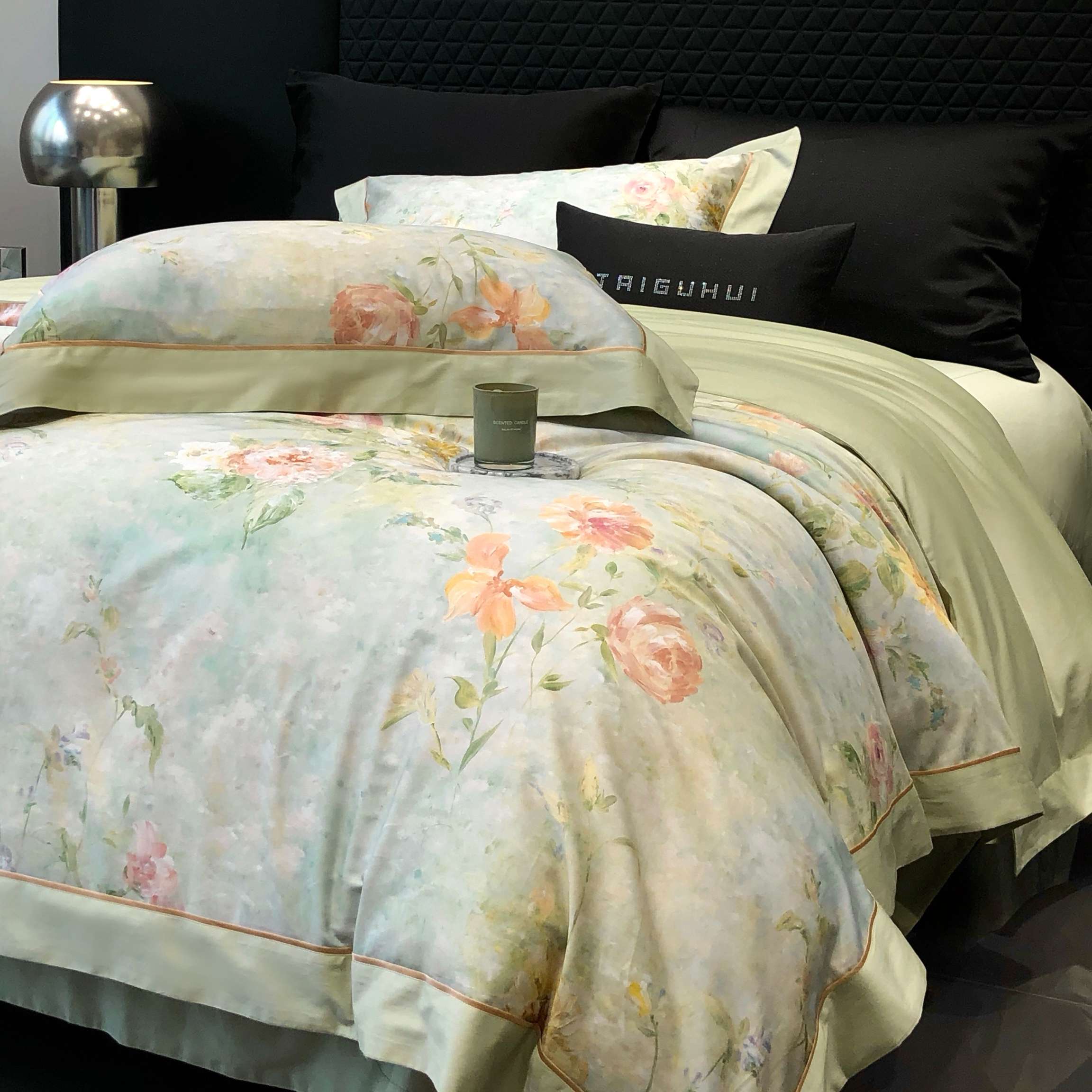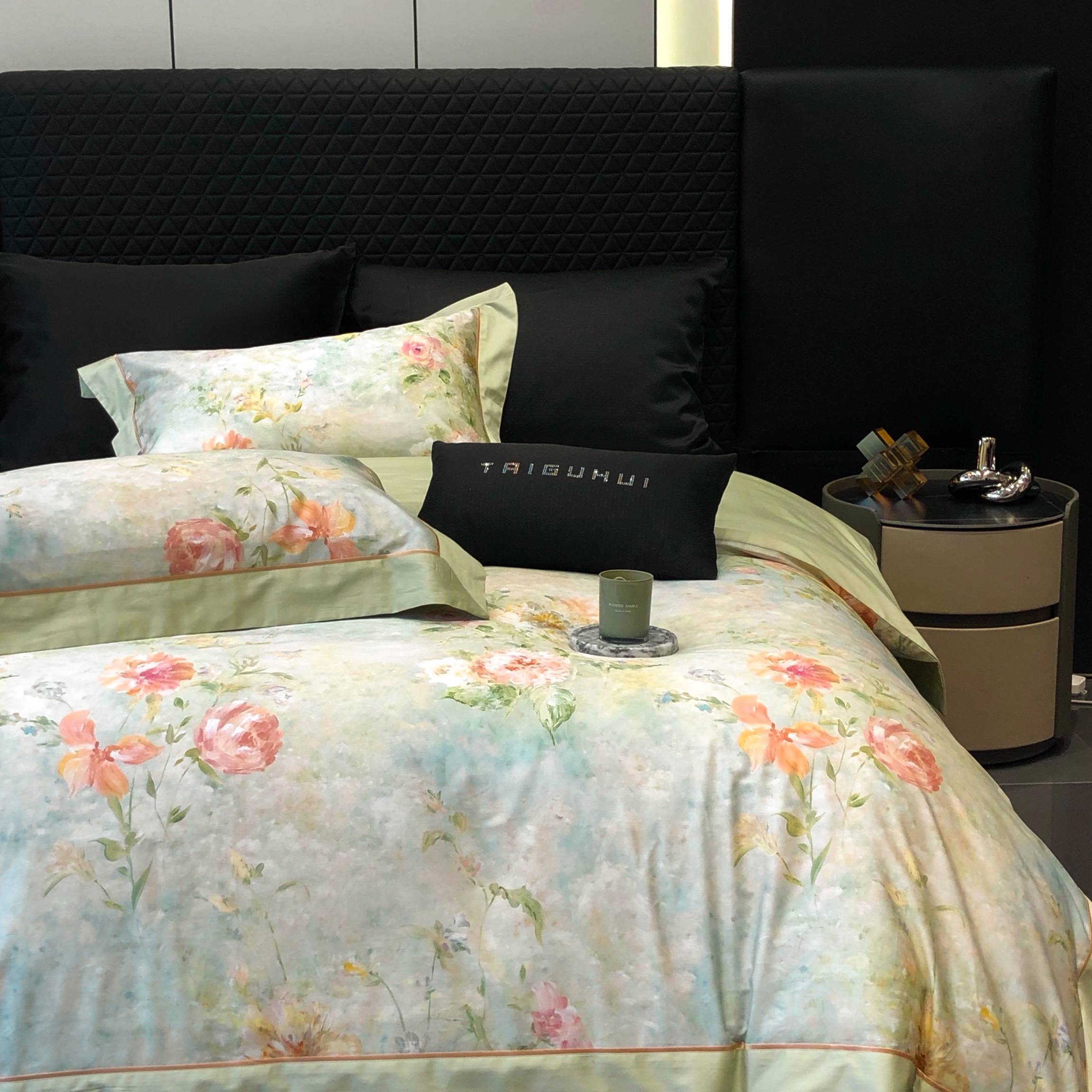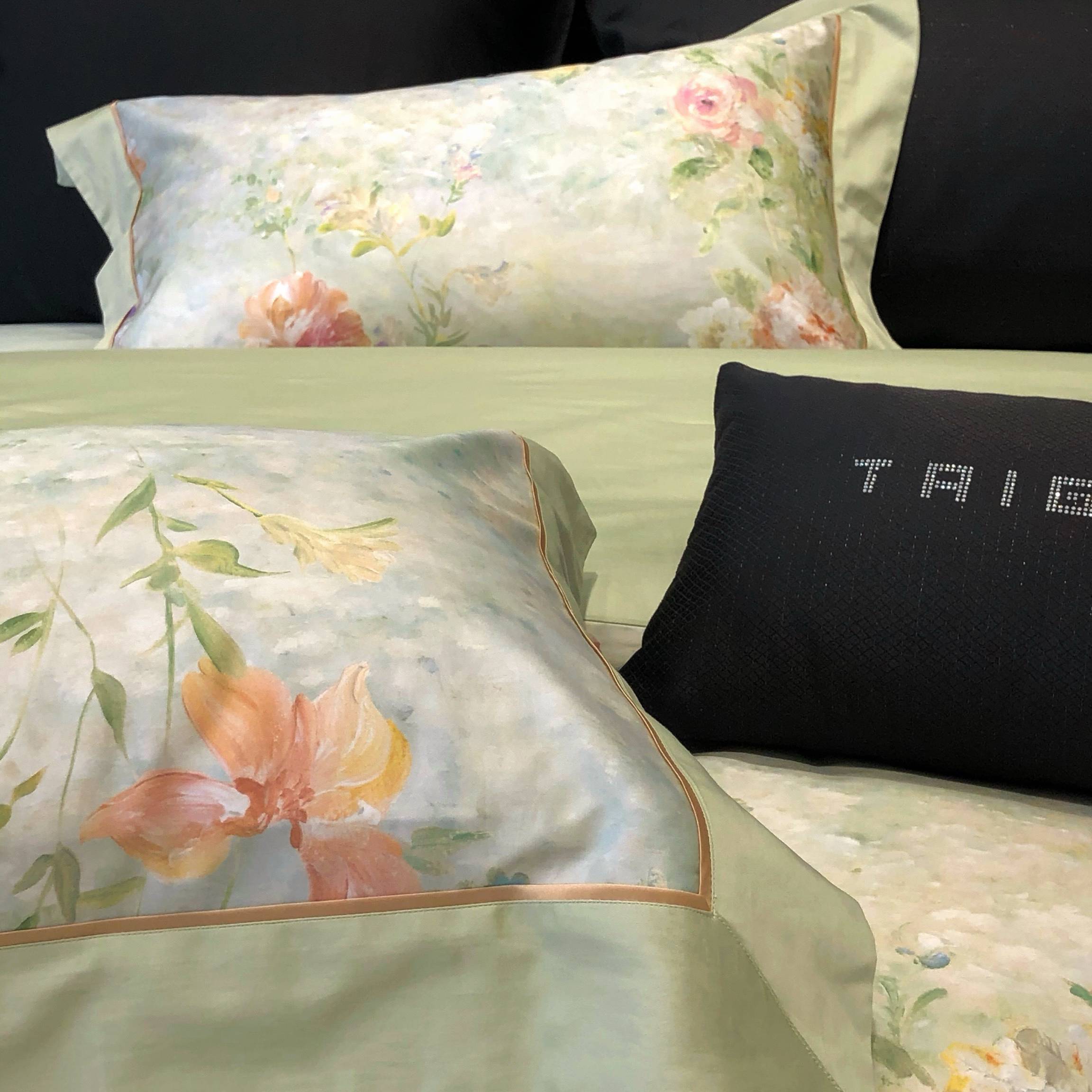 太古汇家居 2025新款高支高密长绒棉专版数码印花双拼四件套系列-都市新贵【券后不低于378】 都市新贵-本草绿