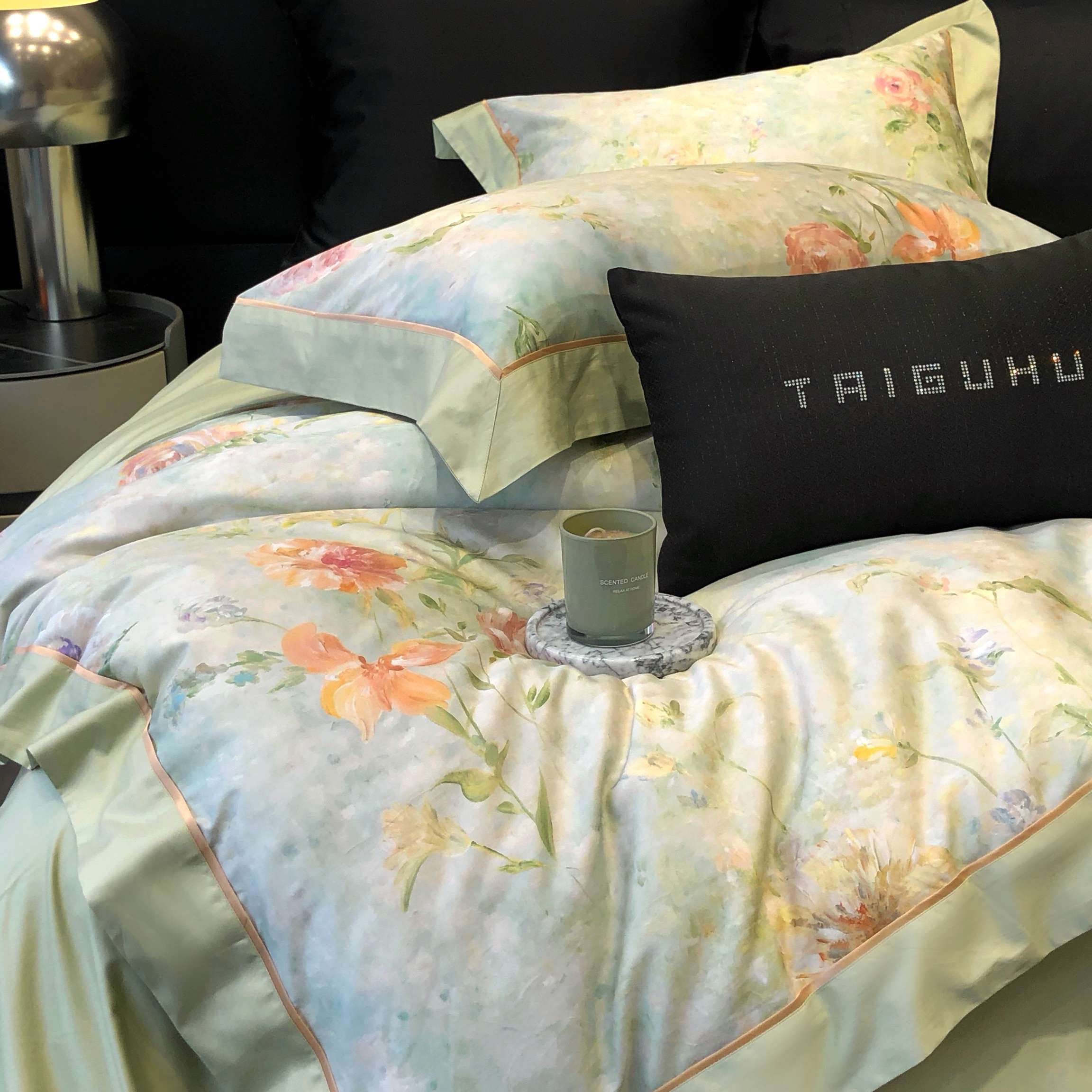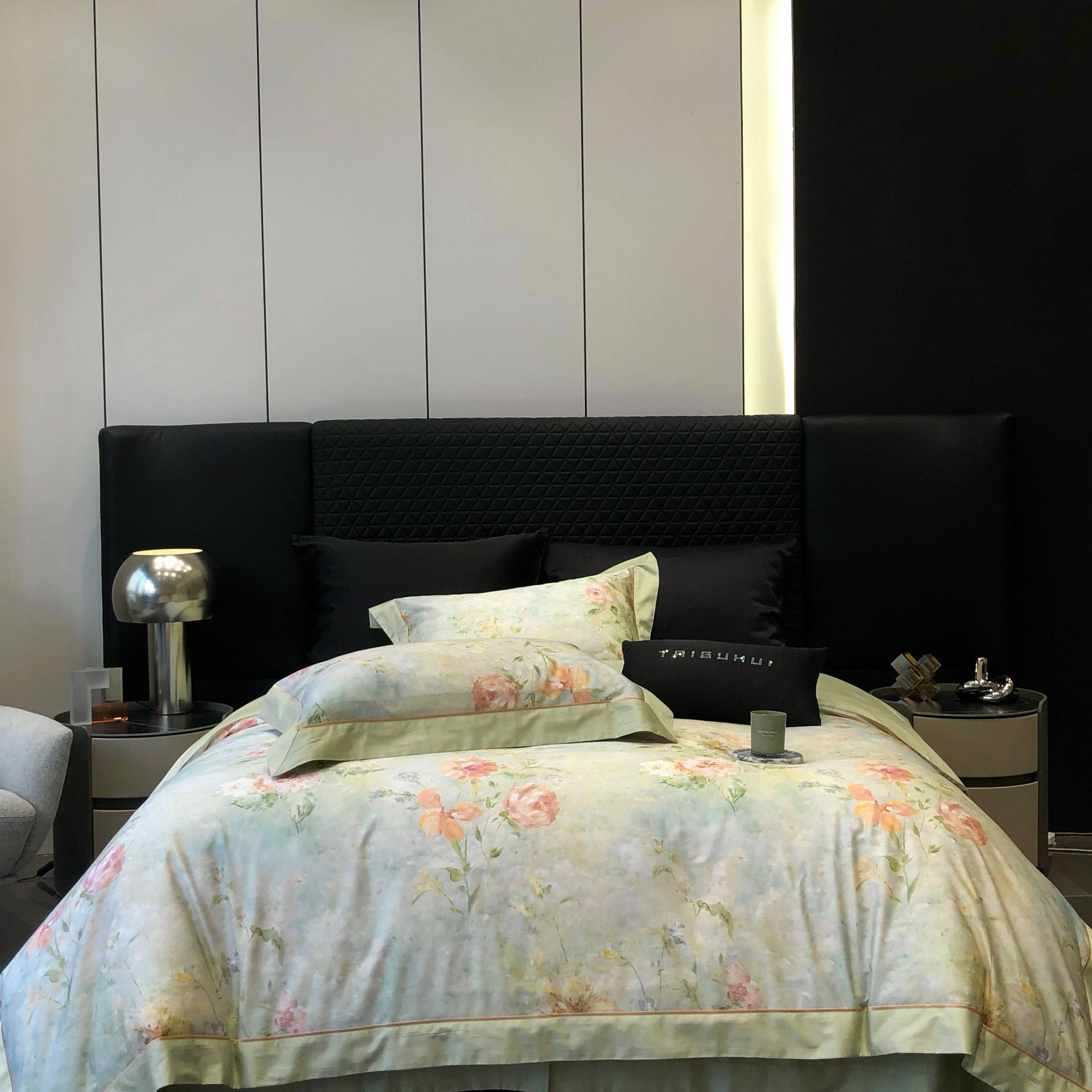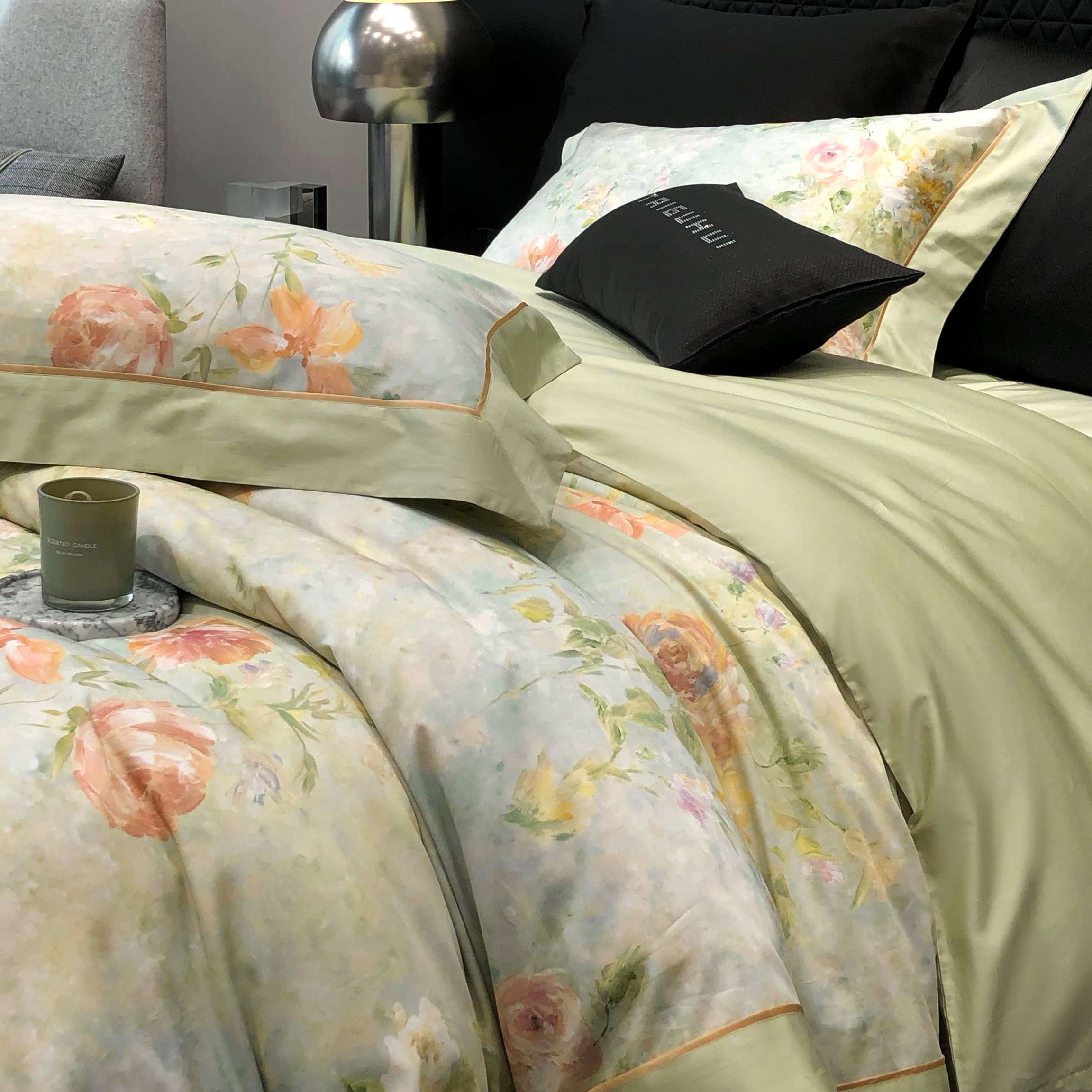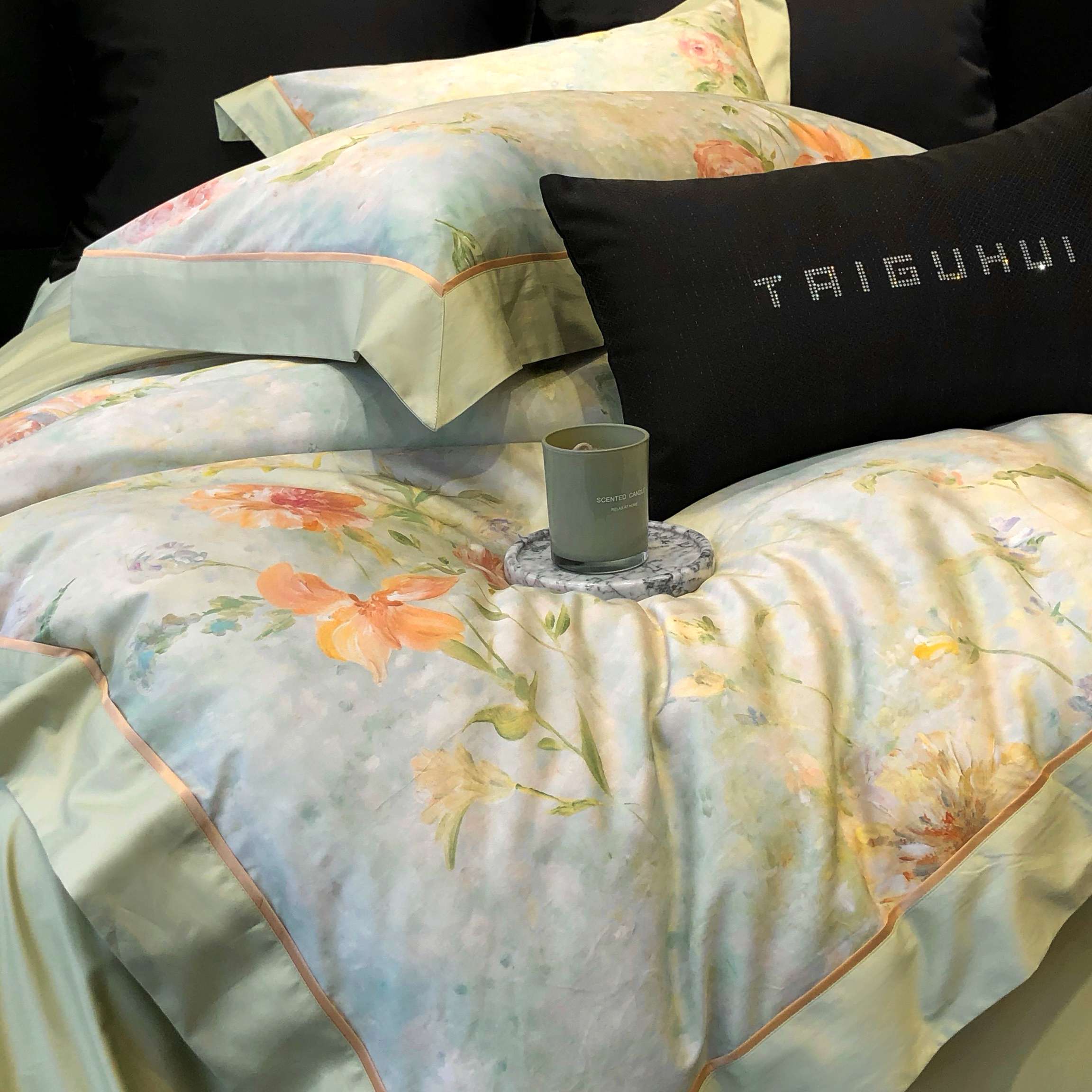 太古汇家居 2025新款高支高密长绒棉专版数码印花双拼四件套系列-都市新贵【券后不低于378】 都市新贵-本草绿