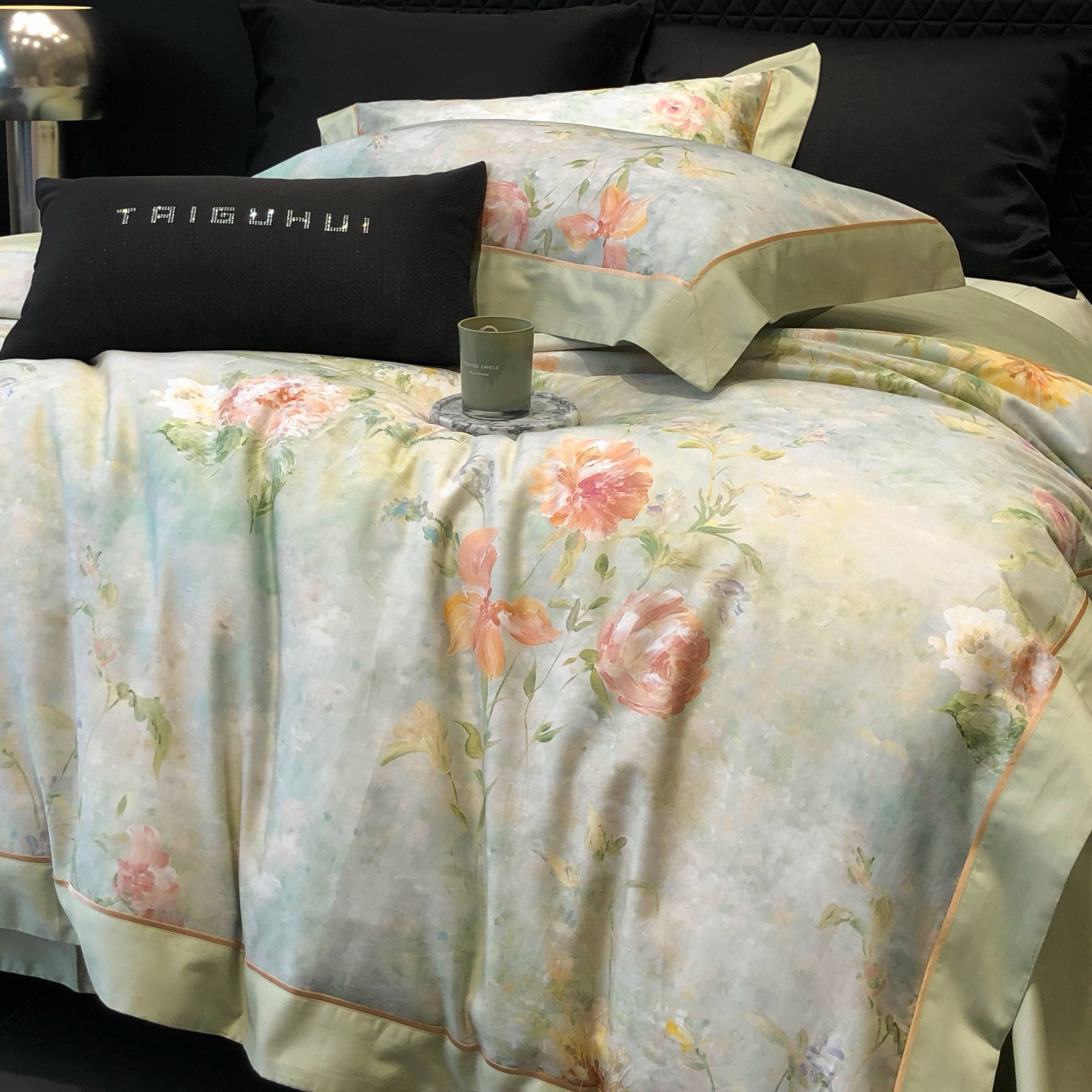 (总)太古汇家居 2025新款活性数码印花四件套,丽奥娜-松石绿,丽奥娜-杏子灰,丽奥娜-樱落紫,莉安娜-粉,莉安娜-卡其,莉安娜-绿,西莉娅-淡紫,西莉娅-粉色