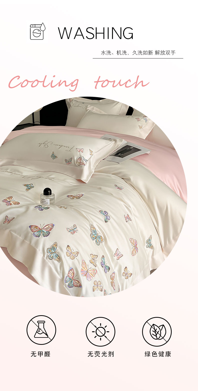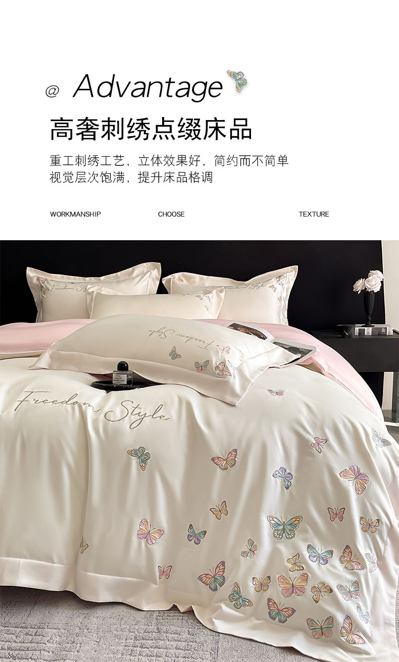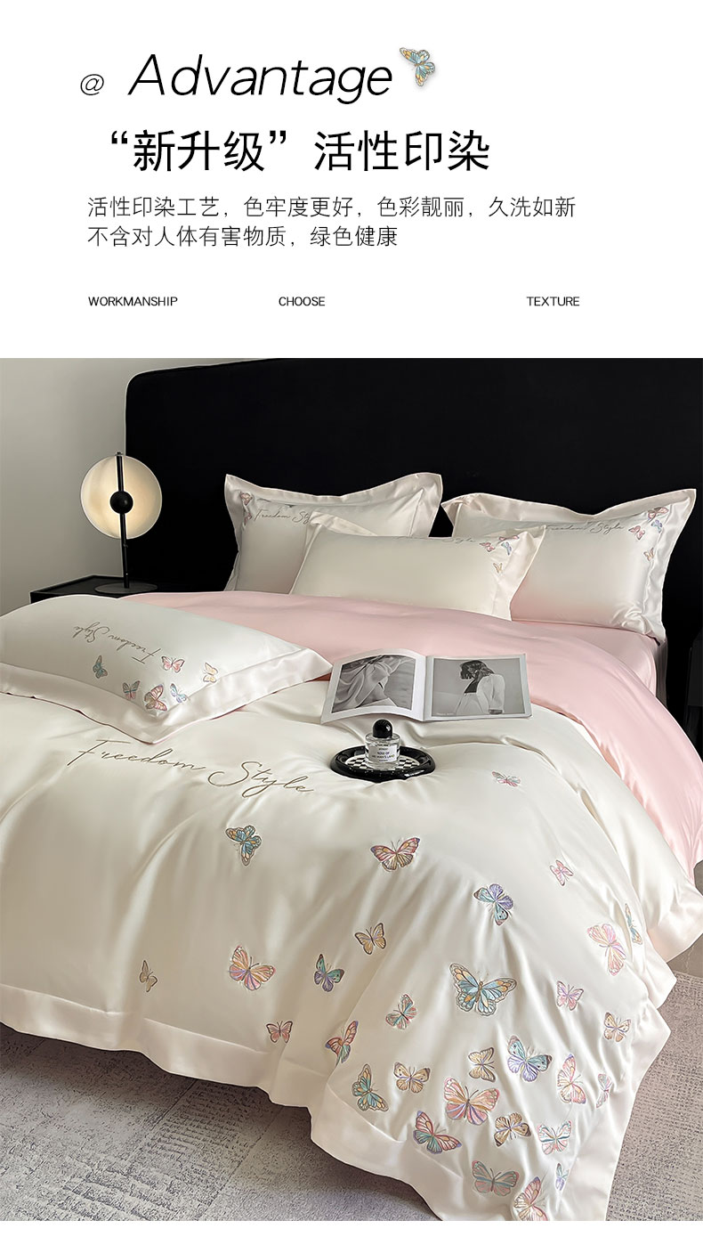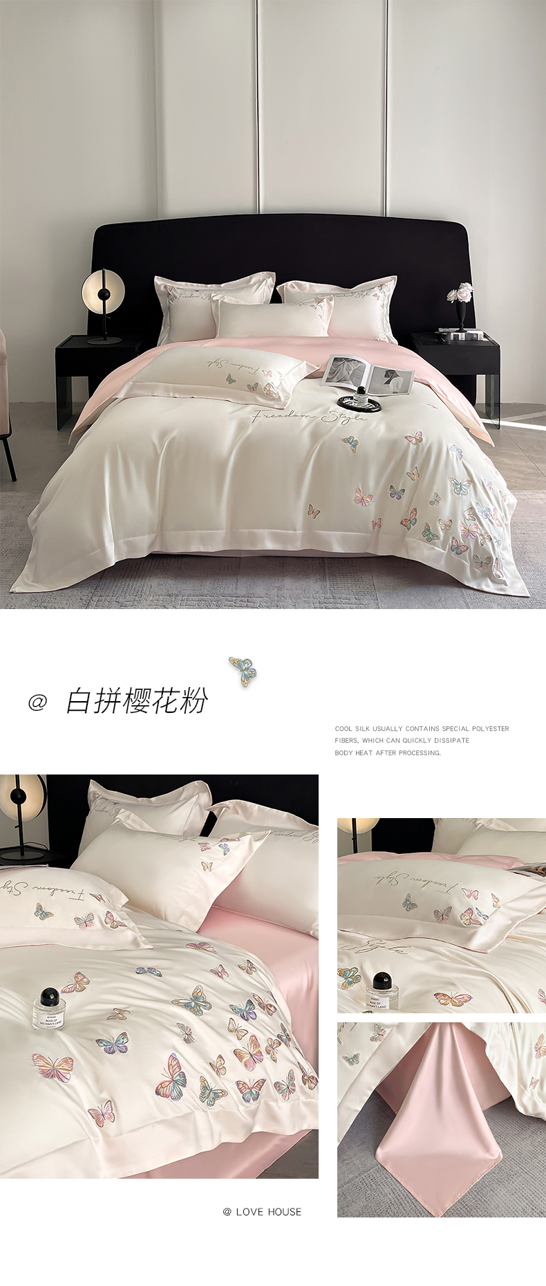 (总)安妮2025珠光蝶影3M天丝四件套,白拼粉,冰蓝,湖蓝,樱花粉