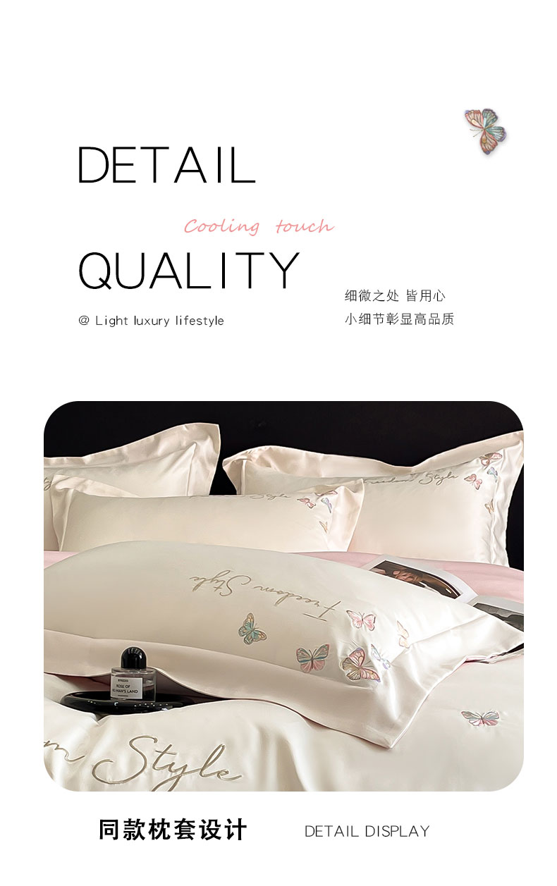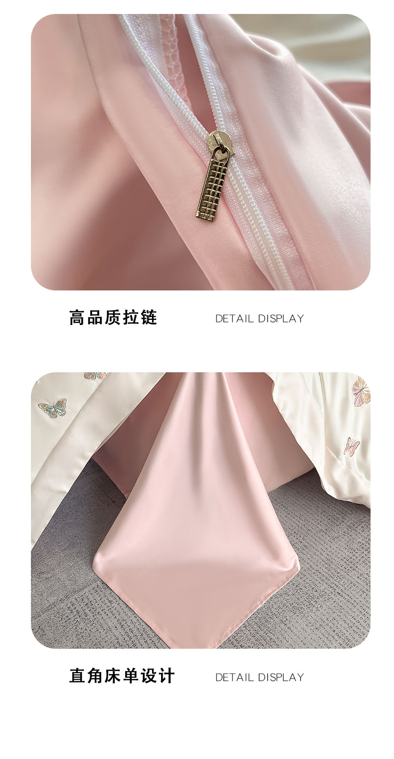 商品名称:安妮2025珠光蝶影3M天丝四件套 白拼粉