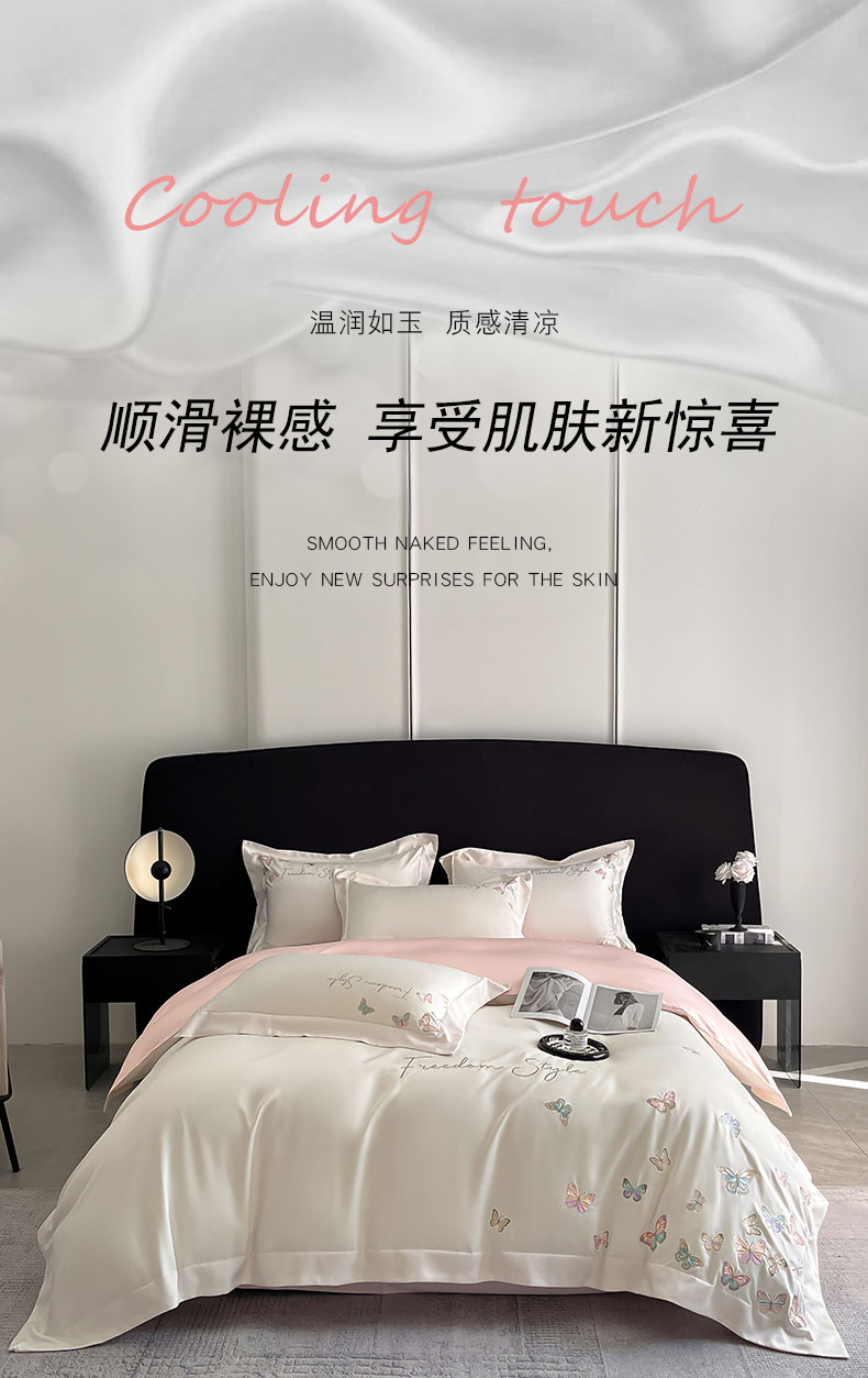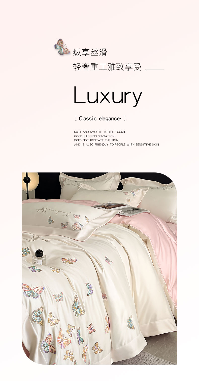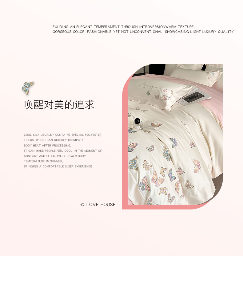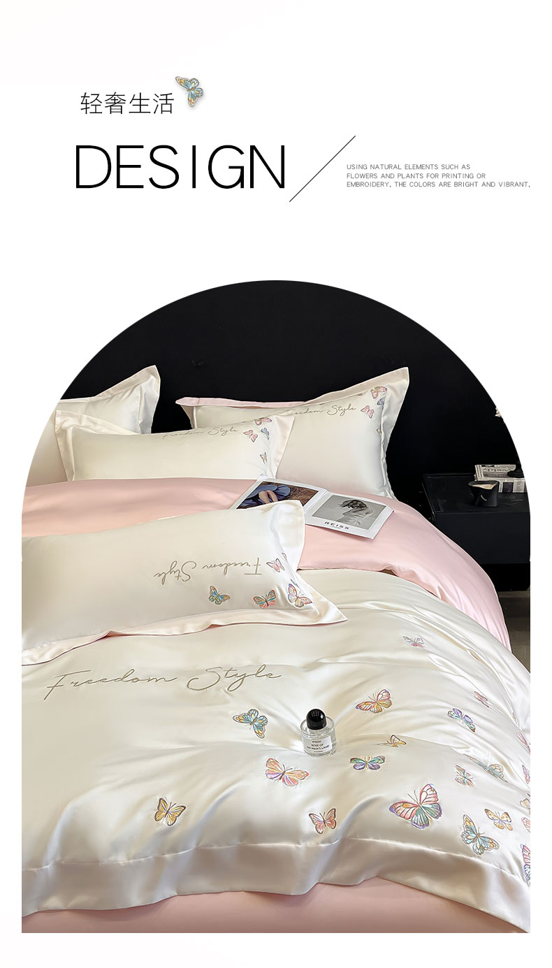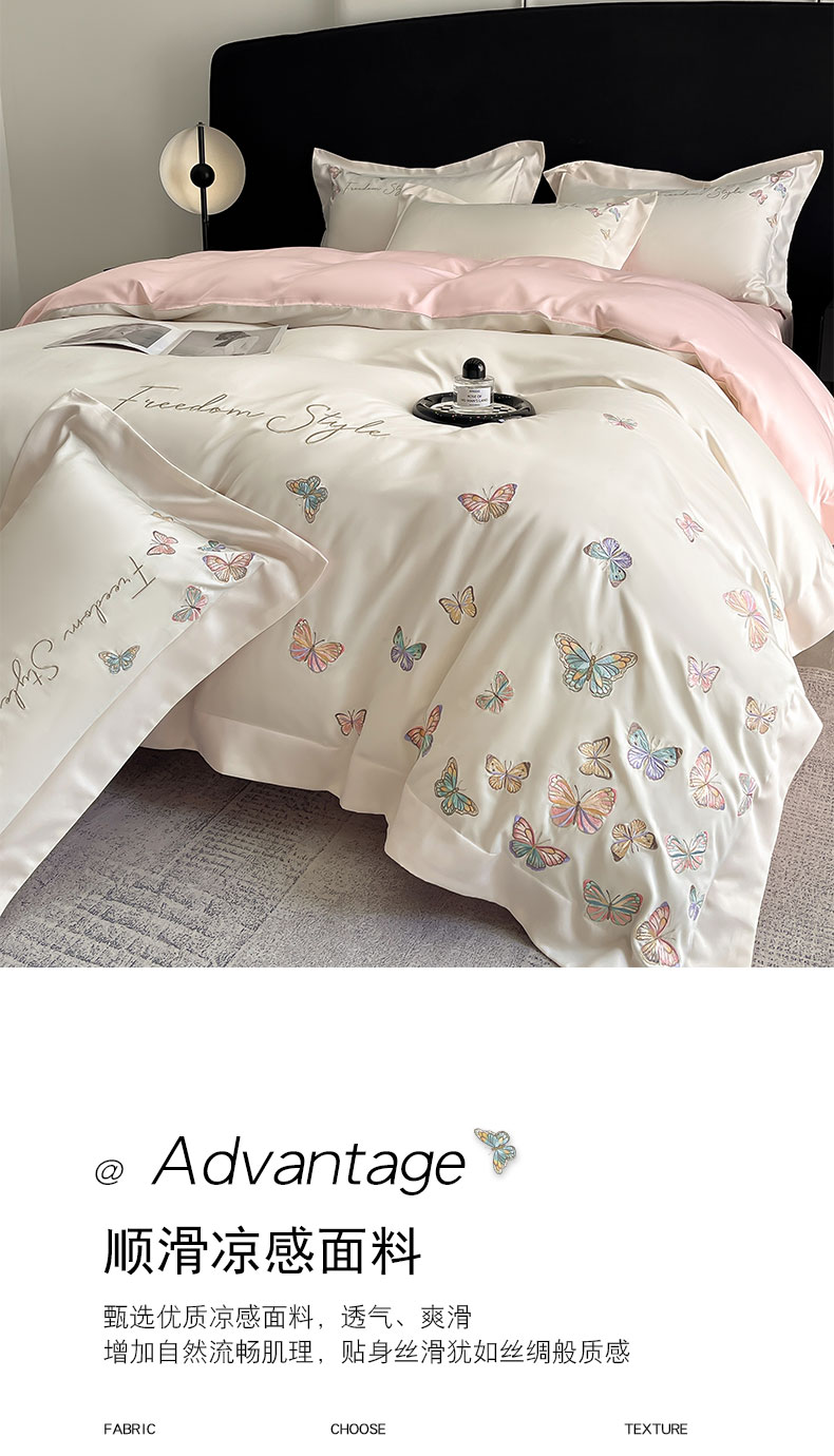 安妮2025珠光蝶影3M天丝四件套 白拼粉