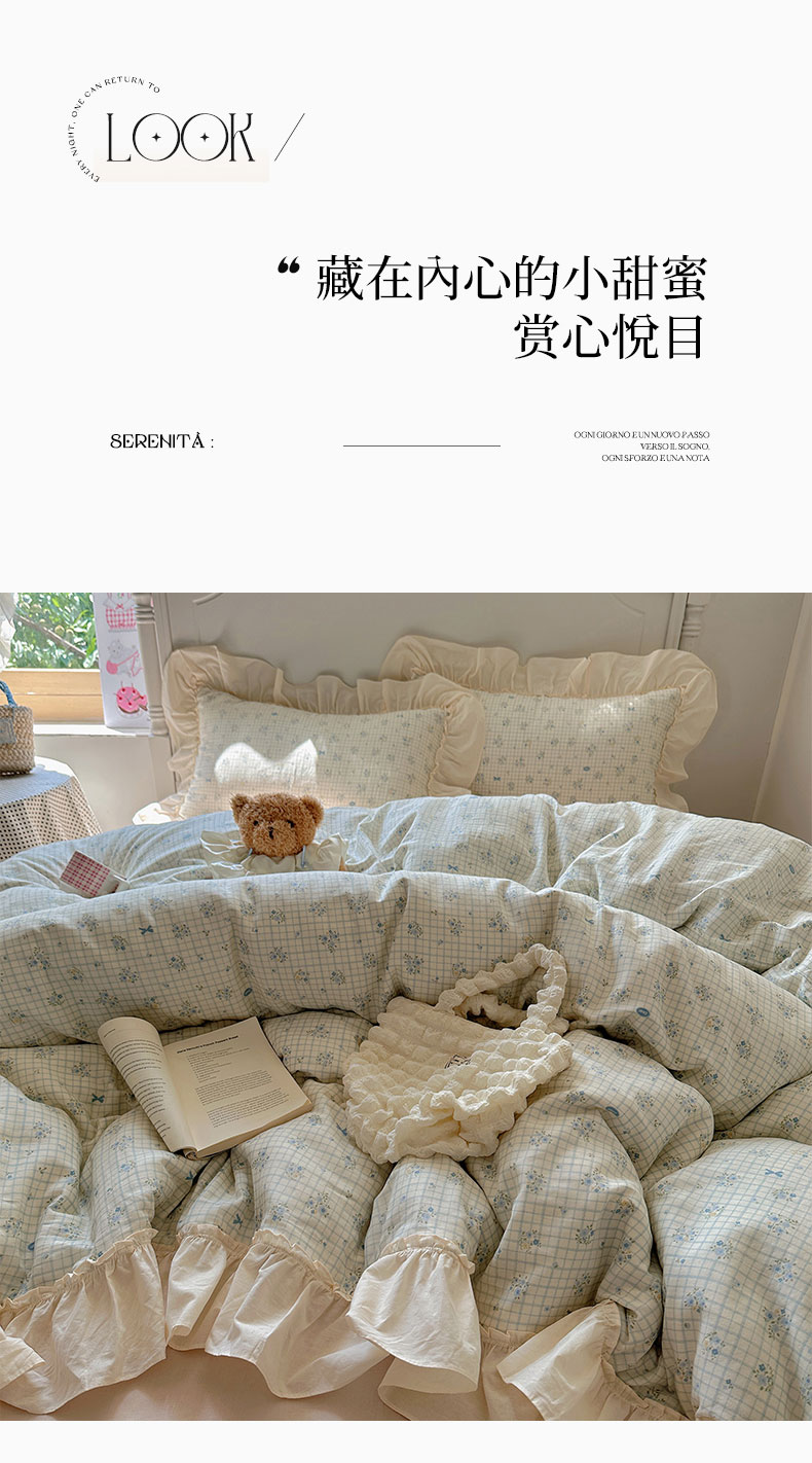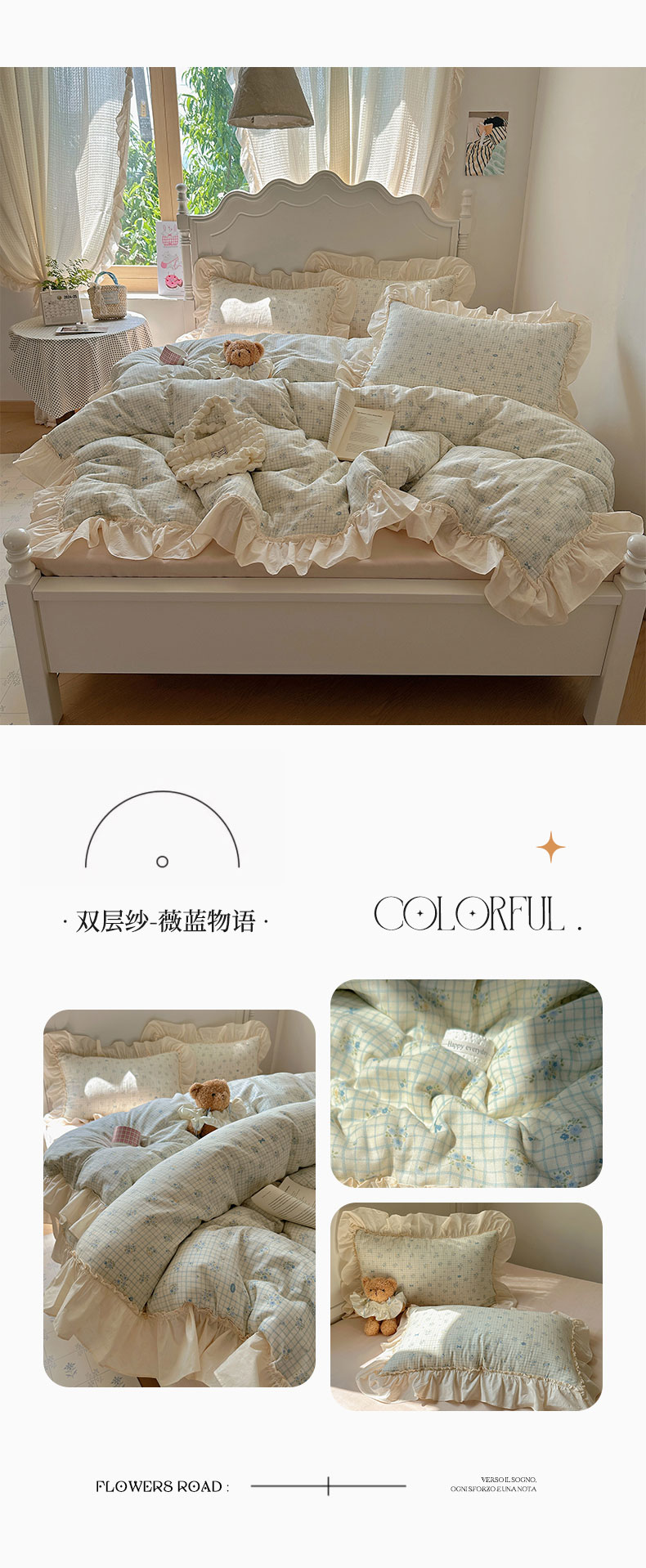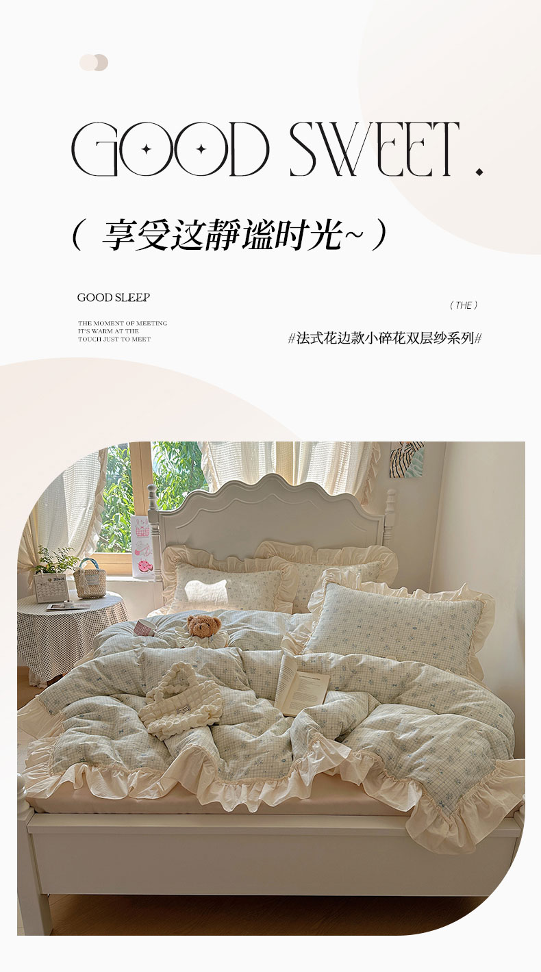 当前位置: 91家纺网 > 商品网购 > 床品套件 > 四件套 > 双层纱四件套 > 六巷胡同2025新款法式小碎花a类全棉双层纱花边款四件套 双层纱-薇蓝物语