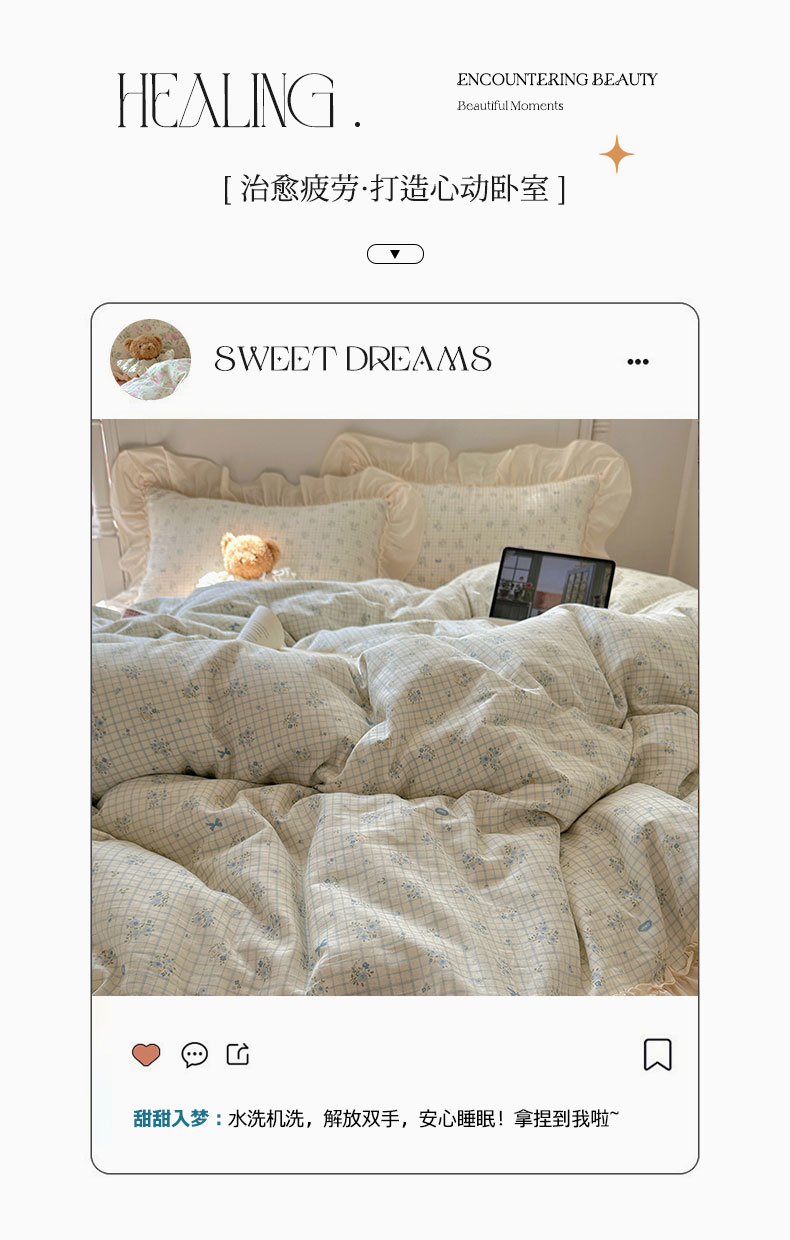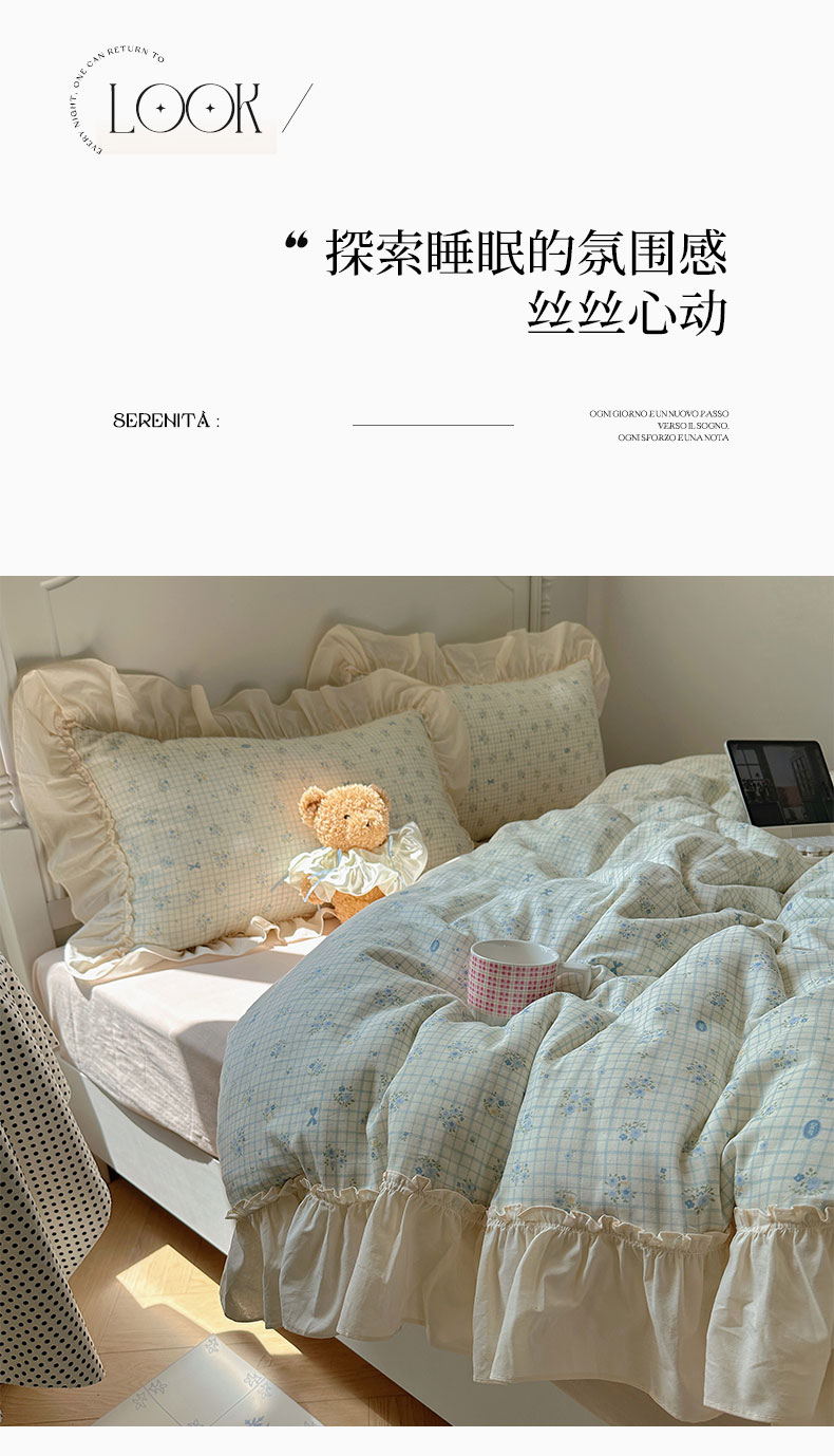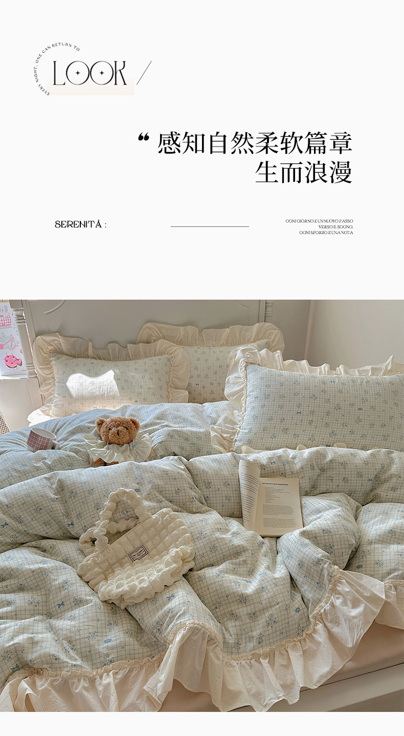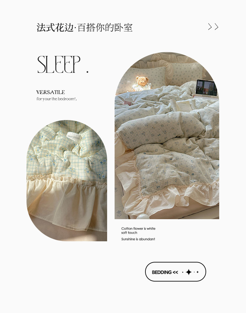 当前位置: 91家纺网 > 商品网购 > 床品套件 > 四件套 > 双层纱四件套 > 六巷胡同2025新款法式小碎花a类全棉双层纱花边款四件套 双层纱-薇蓝物语
