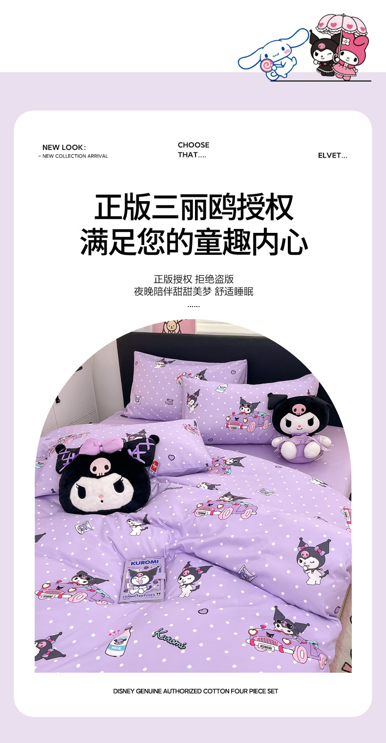 当前位置: 91家纺网 > 商品网购 > 床品套件 > 四件套 > 全棉普通四件套 > 暮思家居 2025新款正版授权三丽鸥全棉纯棉四件套系列-第三批 汽车库洛米
