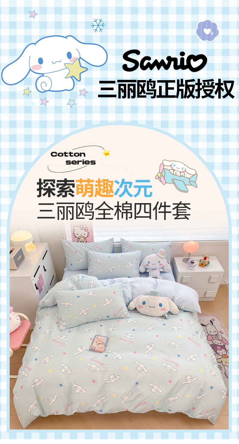 当前位置: 91家纺网 > 商品网购 > 床品套件 > 四件套 > 全棉普通四件套 > 暮思家居 2025新款正版授权三丽鸥全棉纯棉四件套系列-第三批 星星玉桂狗