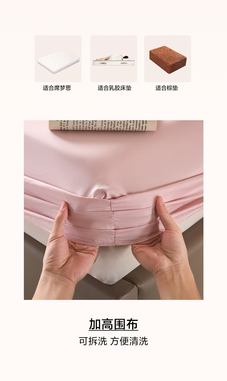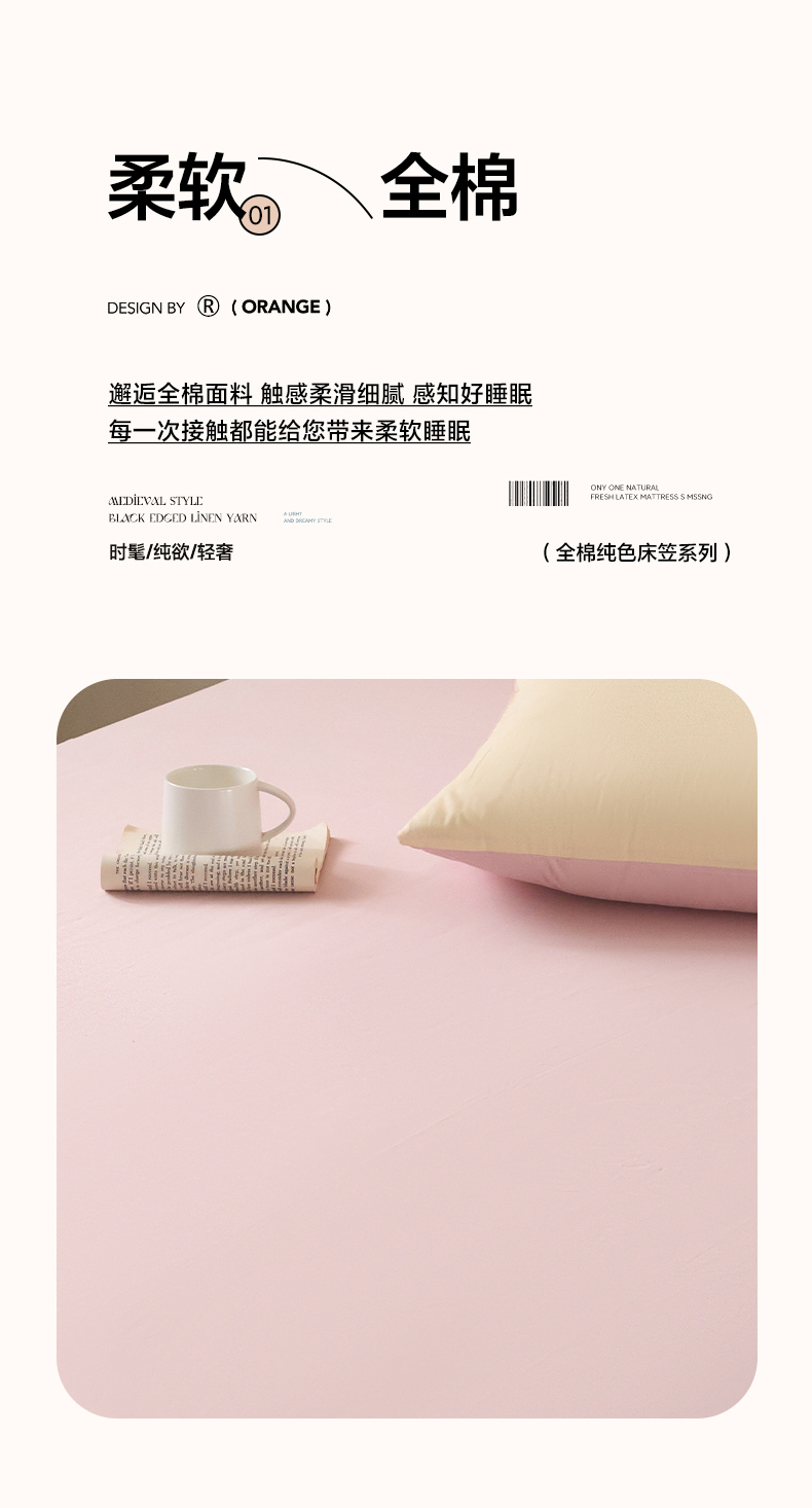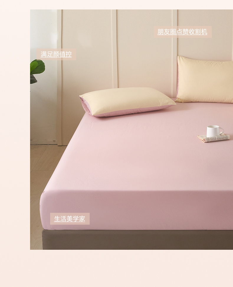 乐美家纺 2025新款全棉纯棉纯色床笠床笠笠件单床笠 芍药粉1