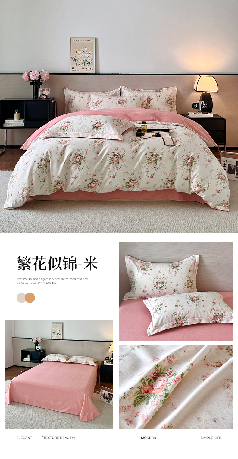 当前位置: 91家纺网 > 商品网购 > 床品套件 > 四件套 > 全棉普通四件套 > 帛美家纺 2025年新款加厚纯棉全棉磨毛印花四件套 遇春雪-粉