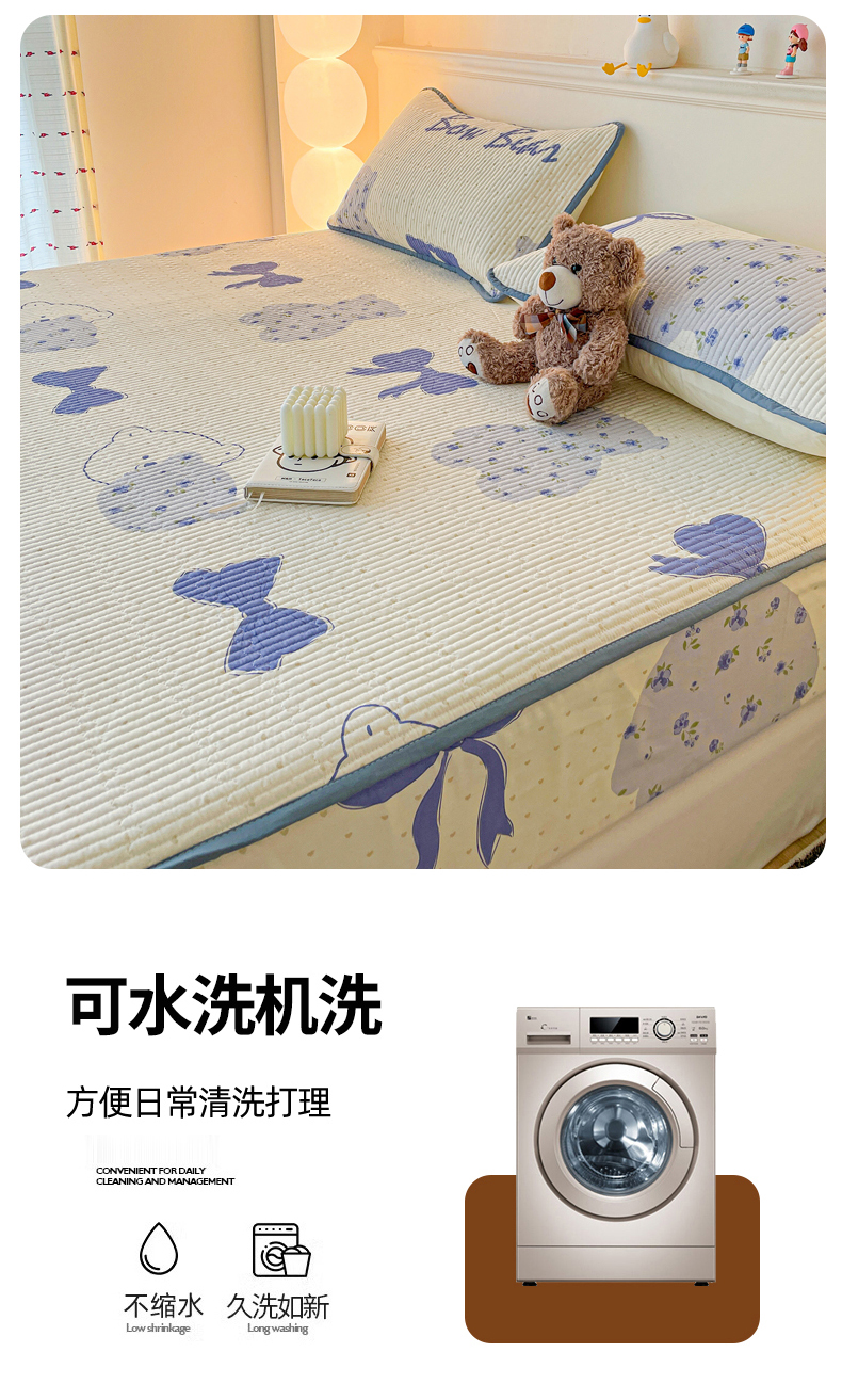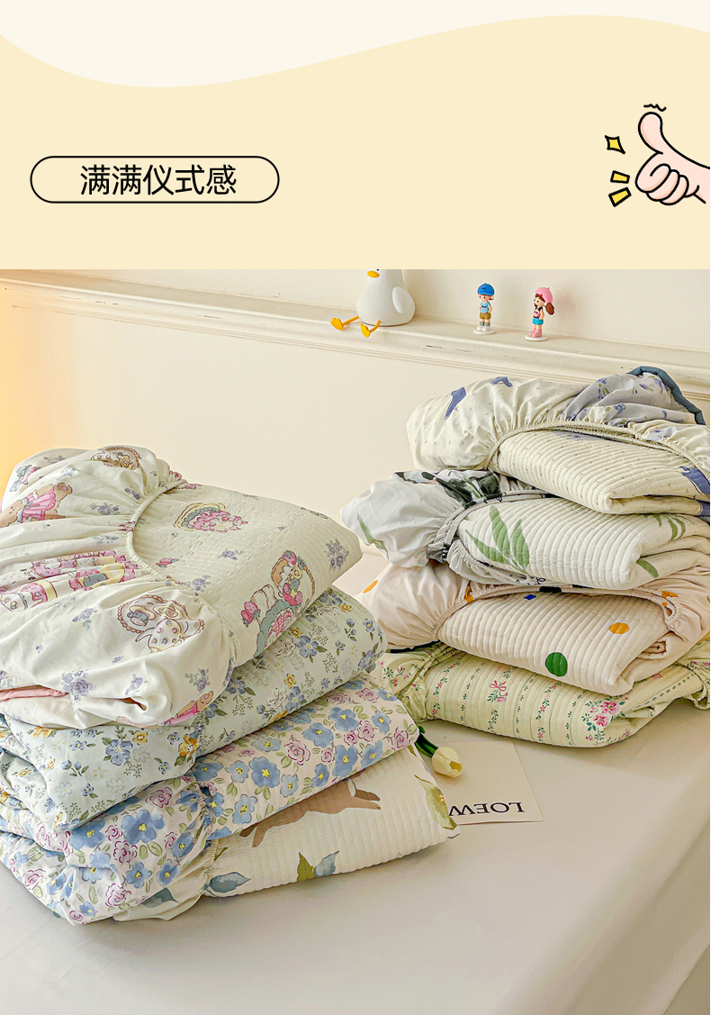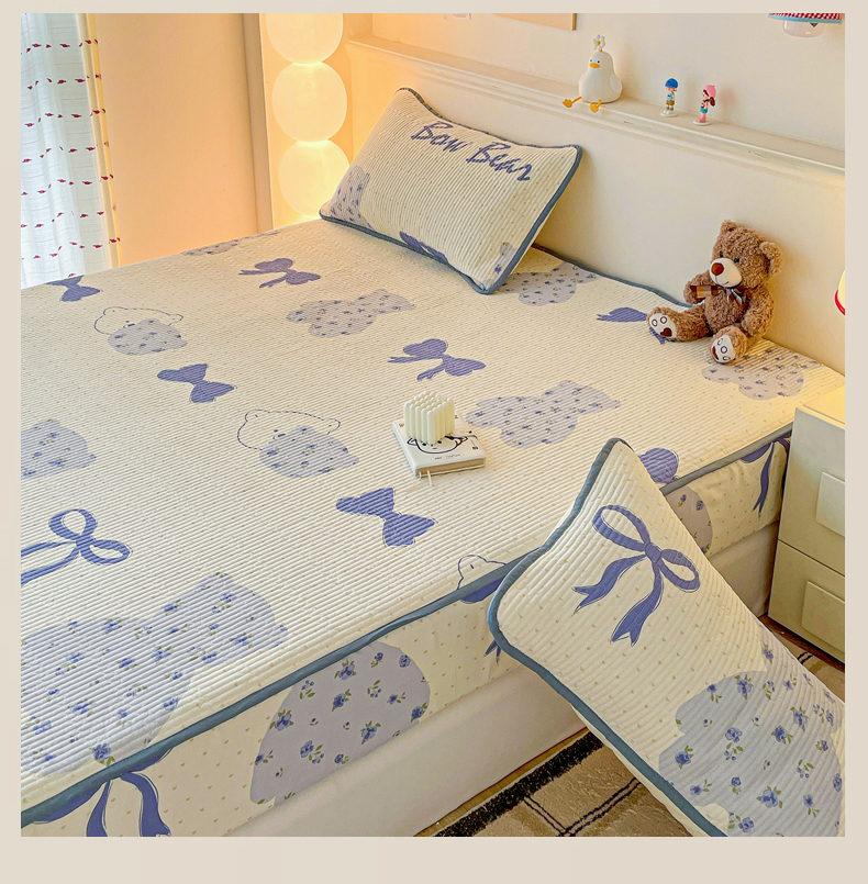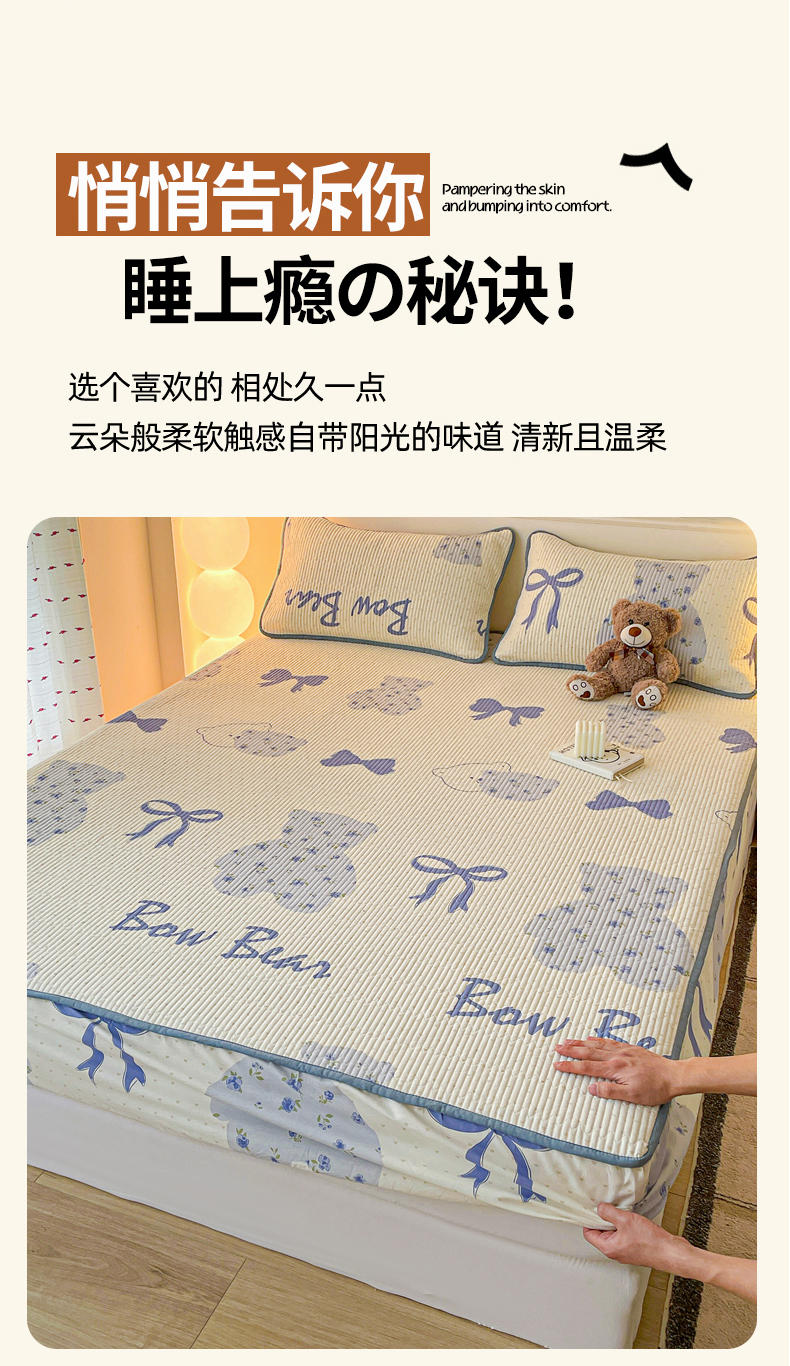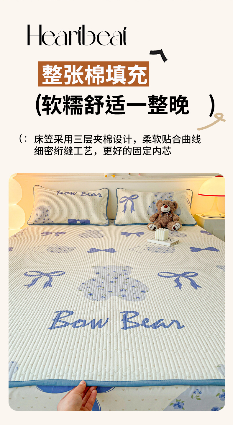 • 91家纺网 家纺一手货源 找家纺 富馨莱 2025新款纯棉夹棉单件床笠 蝴蝶结小熊