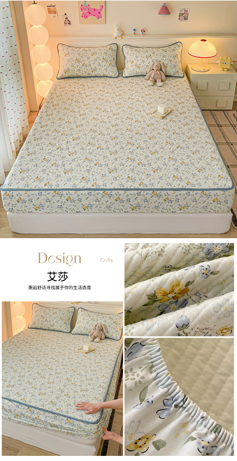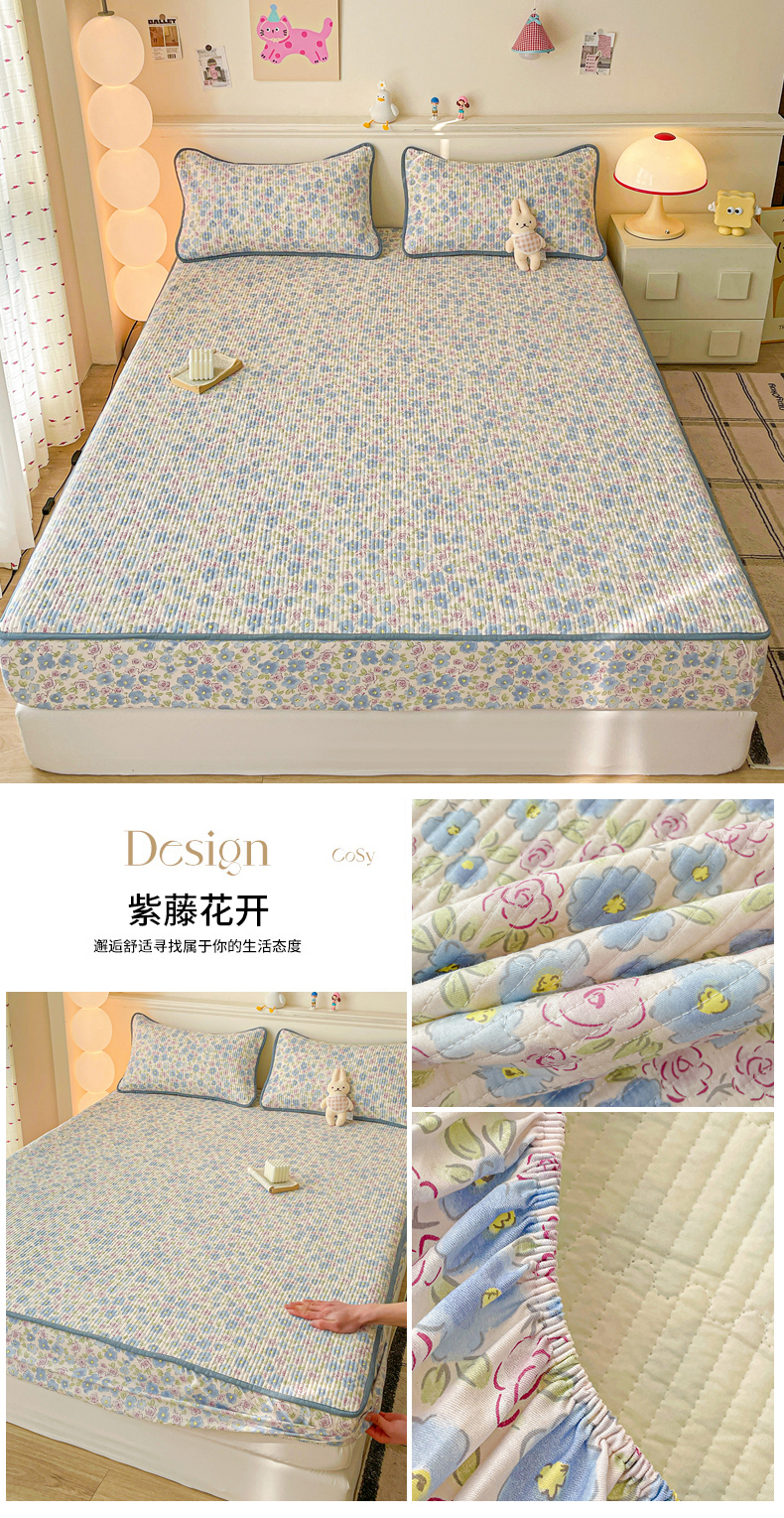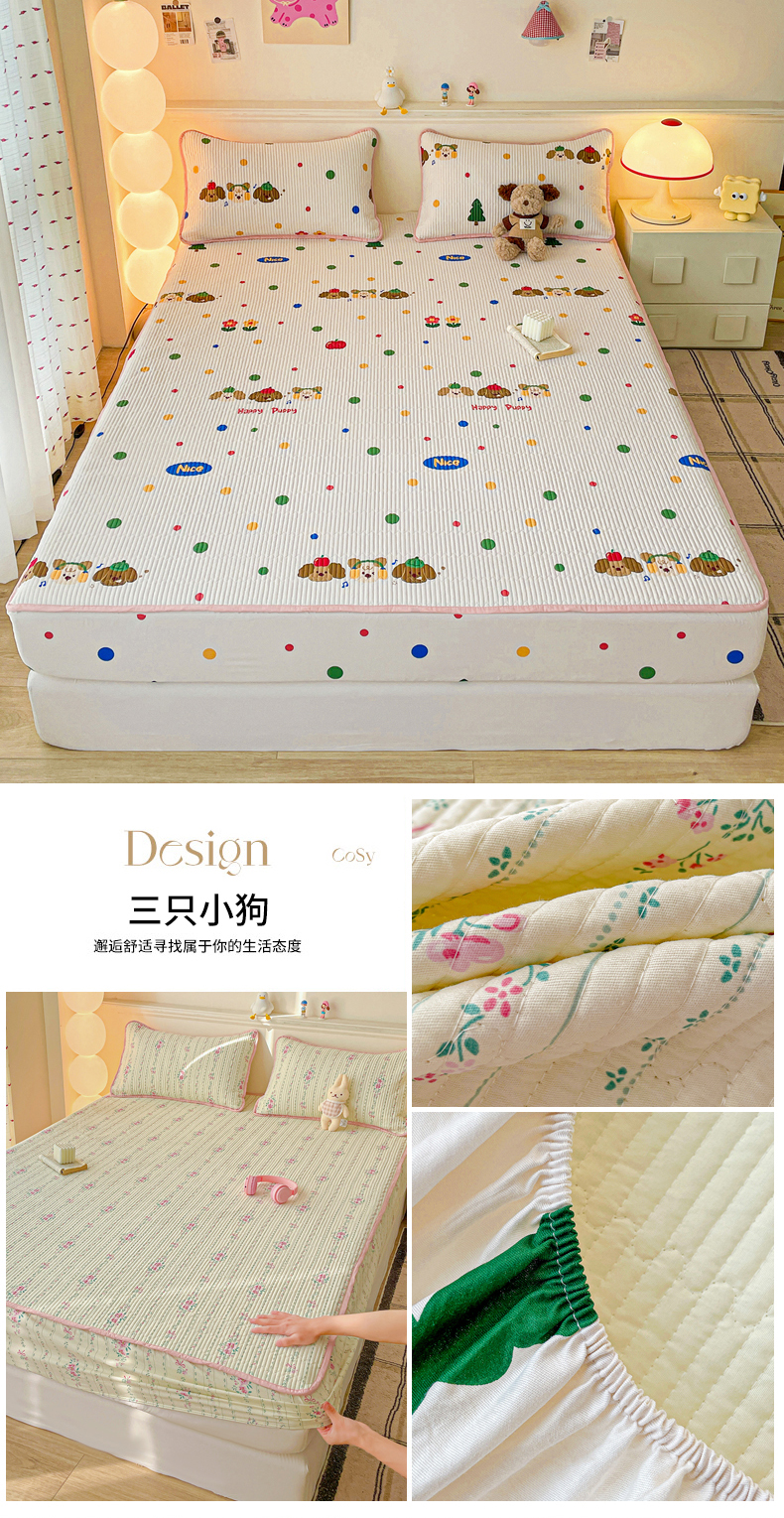 • 91家纺网 家纺一手货源 找家纺 富馨莱 2025新款纯棉夹棉单件床笠 蝴蝶结小熊