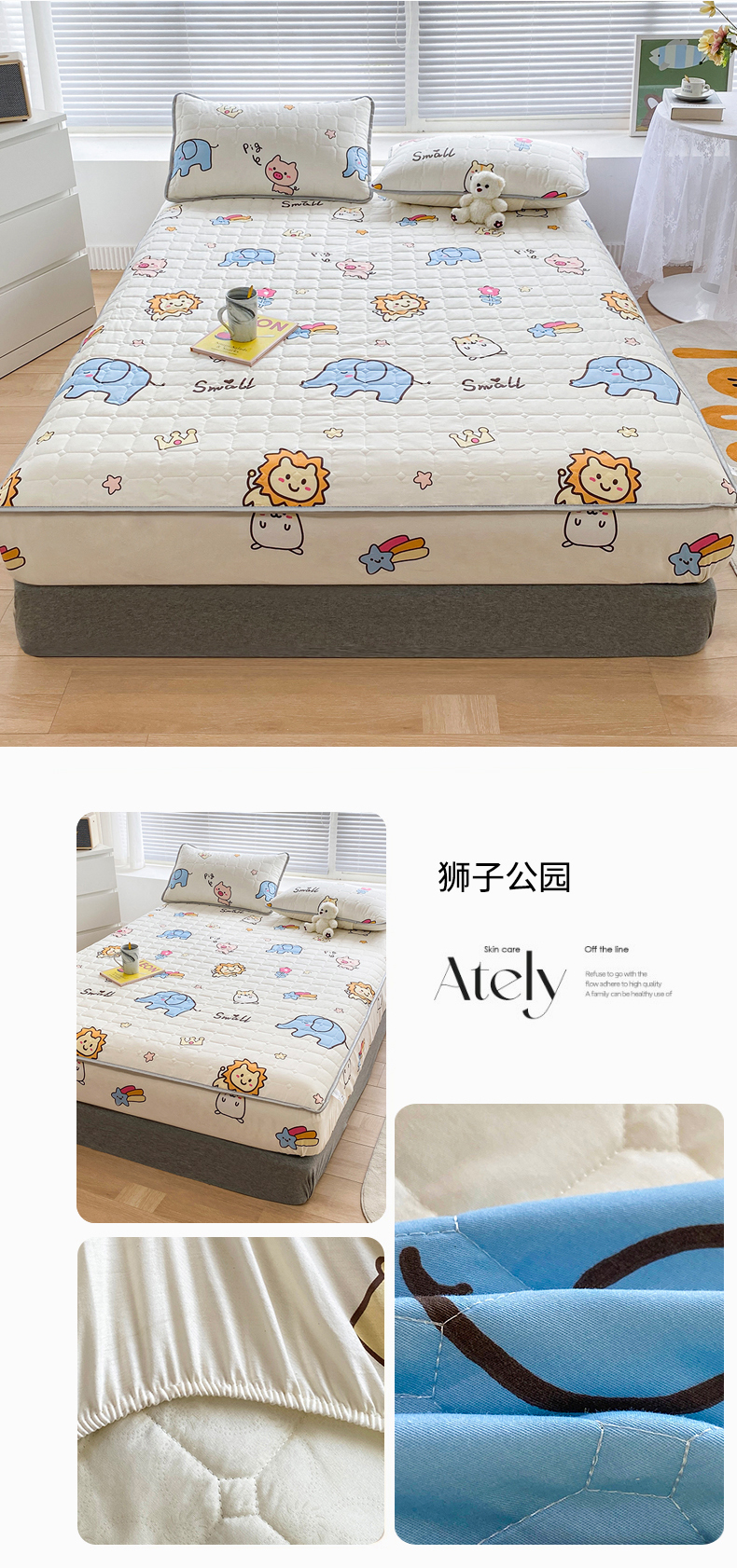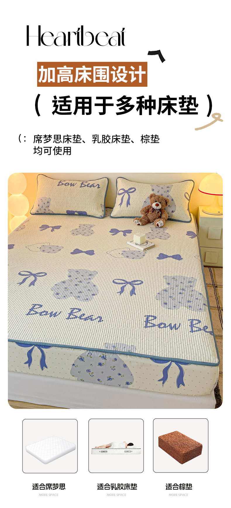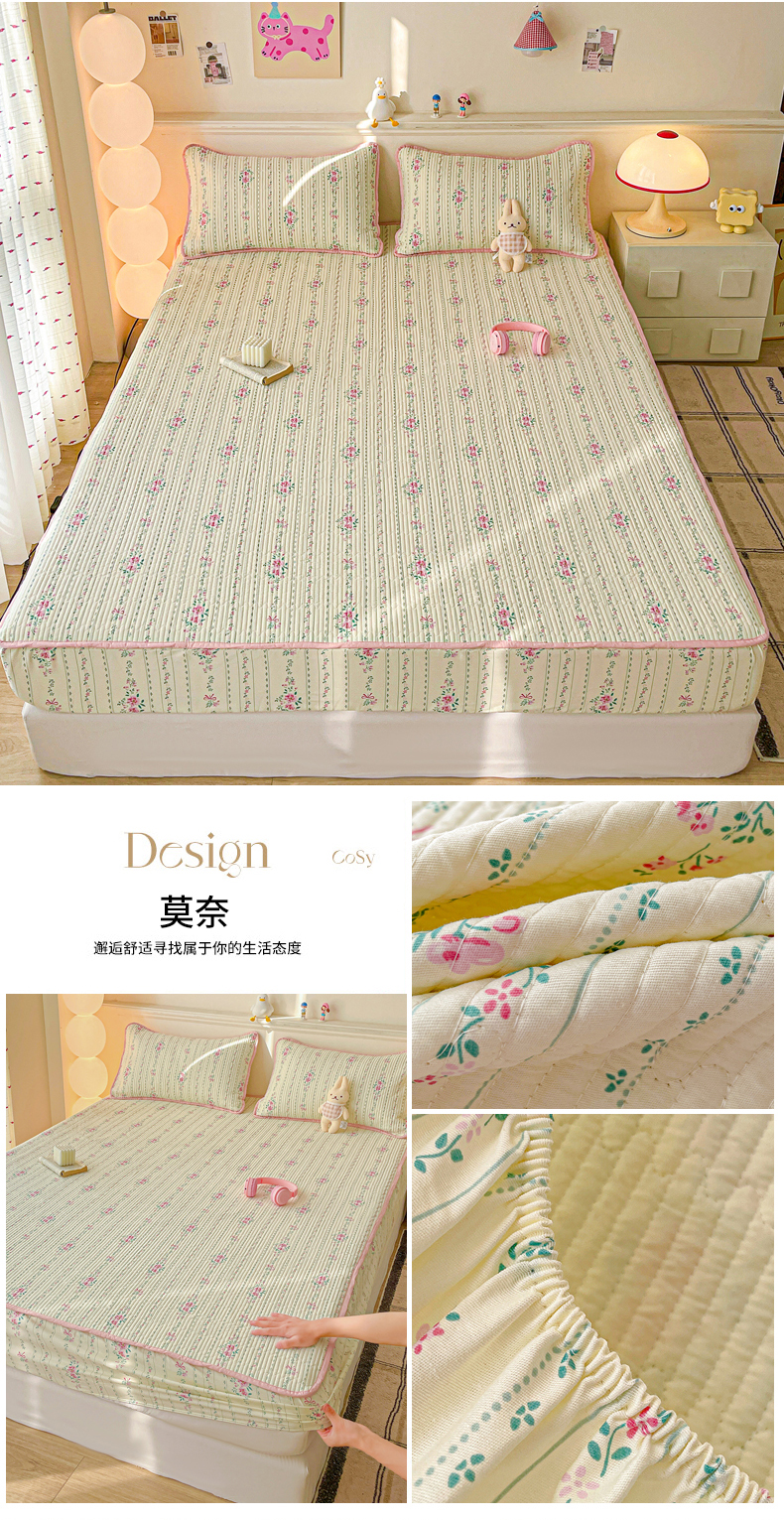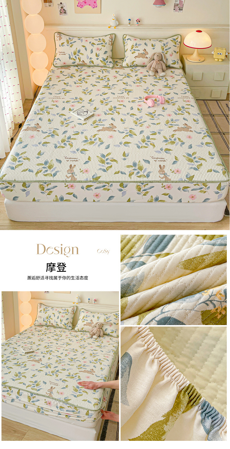 • 91家纺网 家纺一手货源 找家纺 富馨莱 2025新款纯棉夹棉单件床笠 蝴蝶结小熊