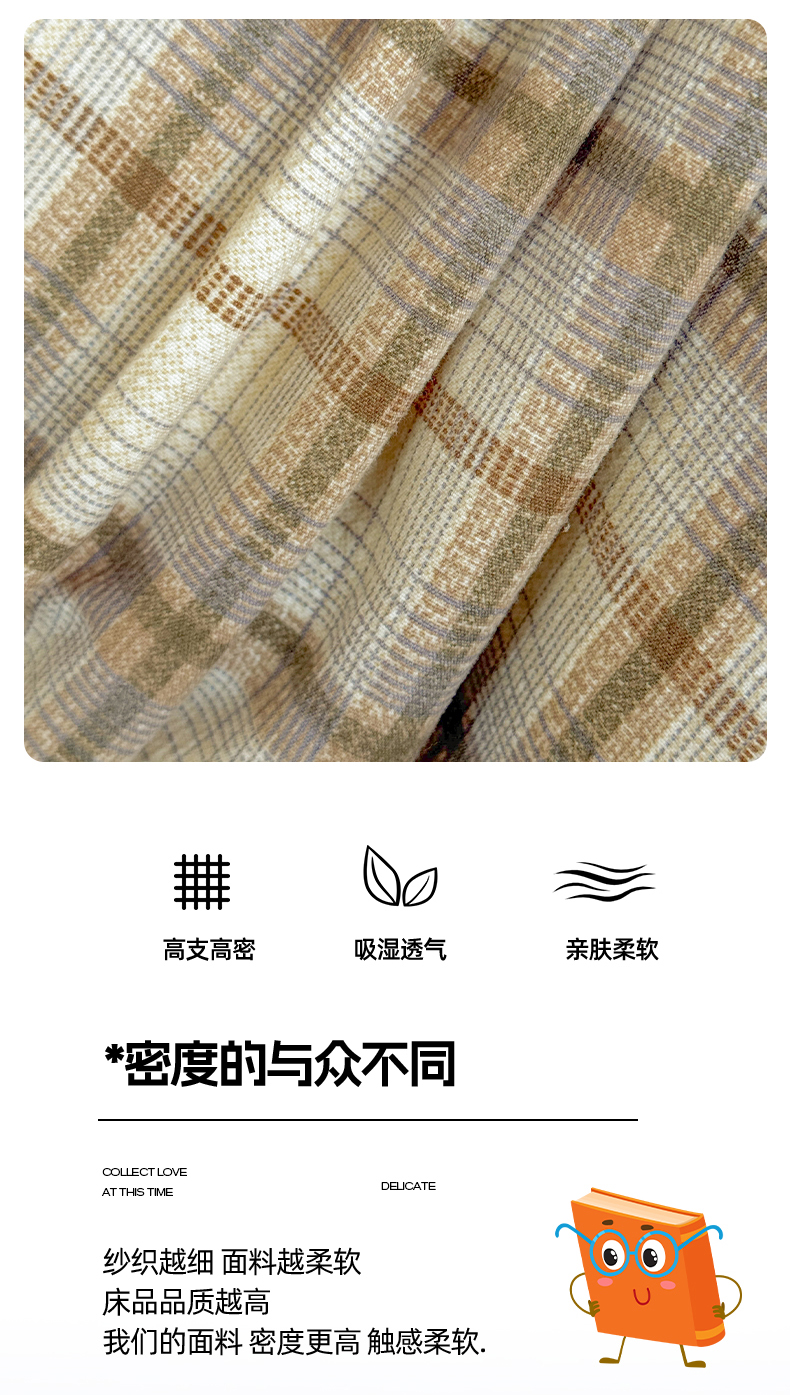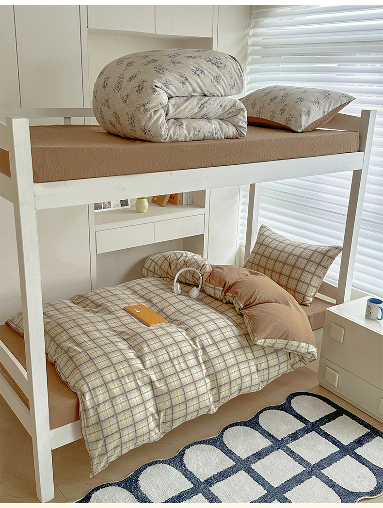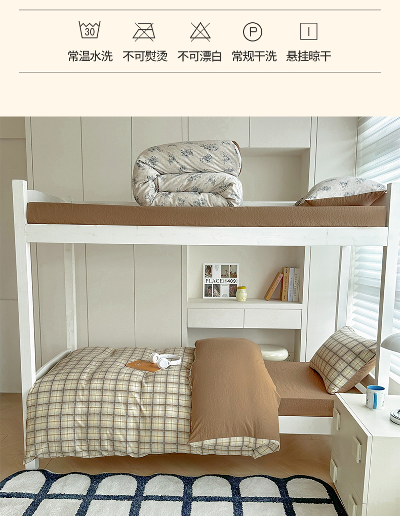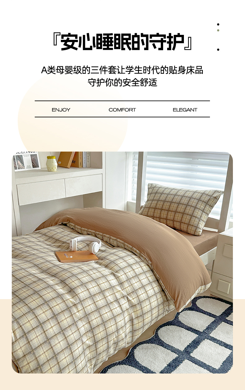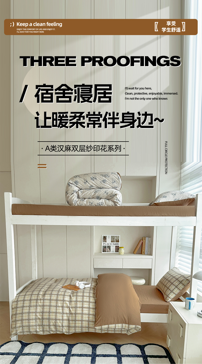 (总)雨田家纺 2025新款A类汉麻双层纱学生宿舍三件套上下铺三件套,初春,格韵-咖,快乐时光,紫韵