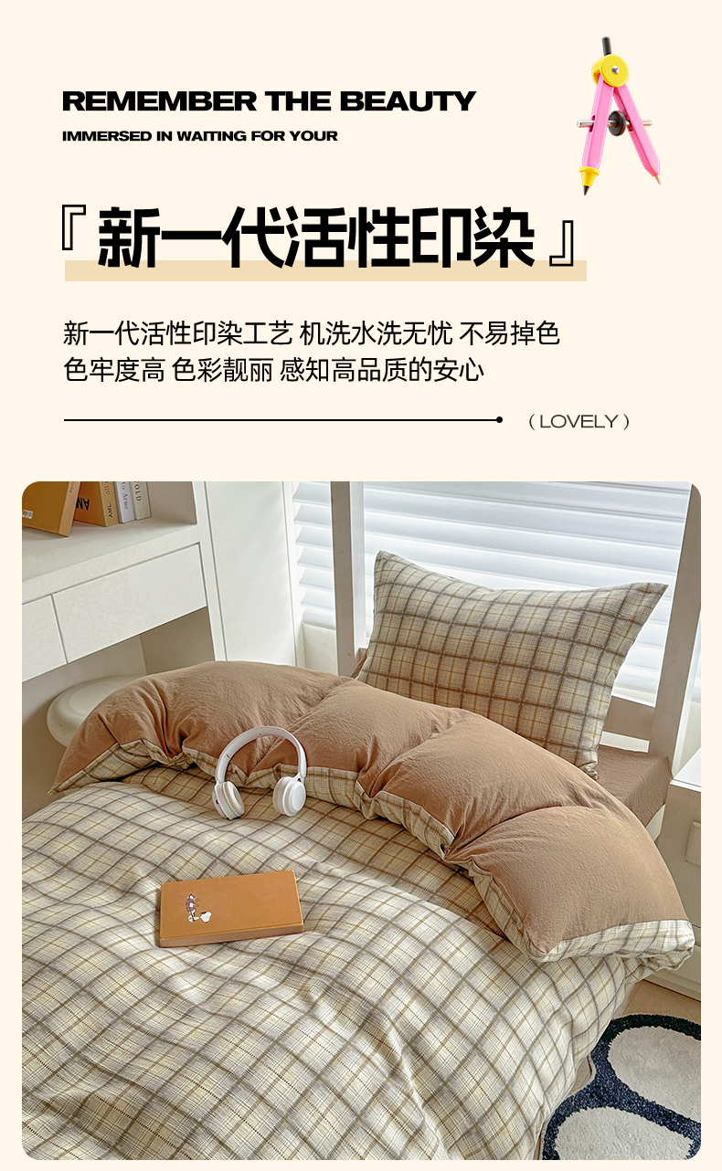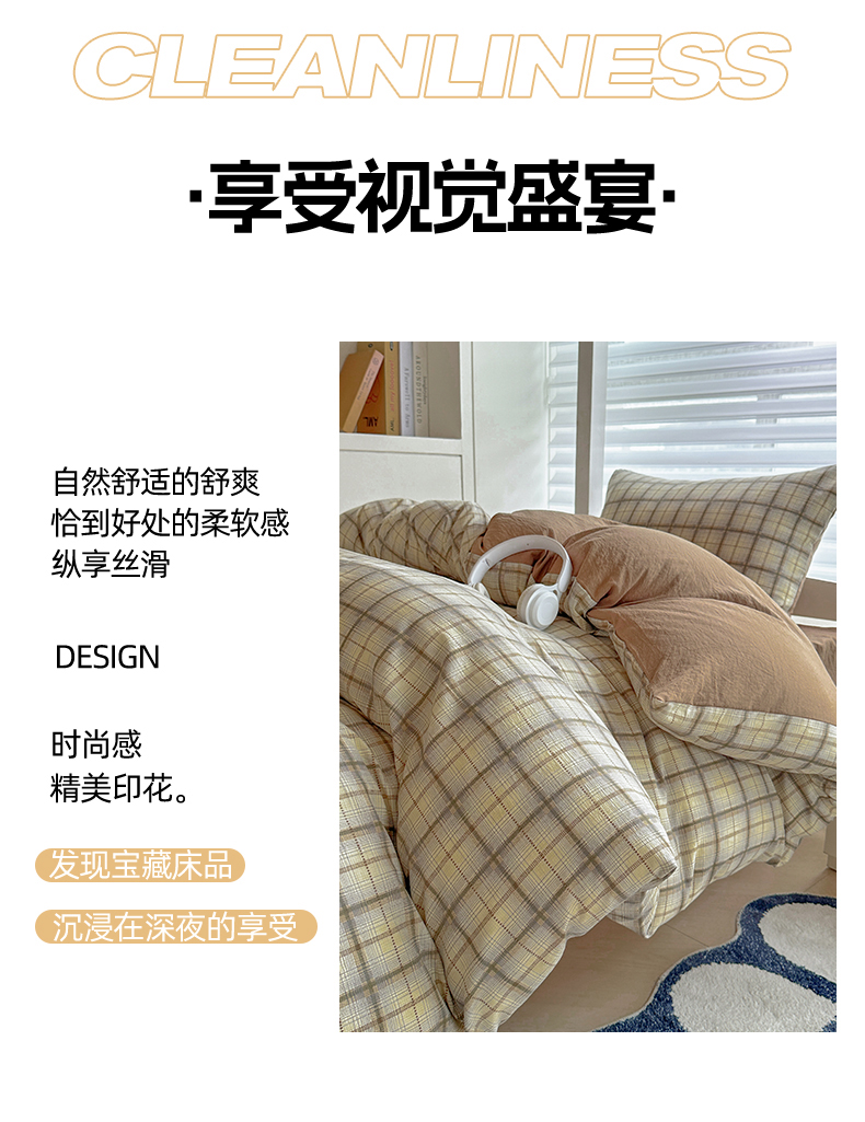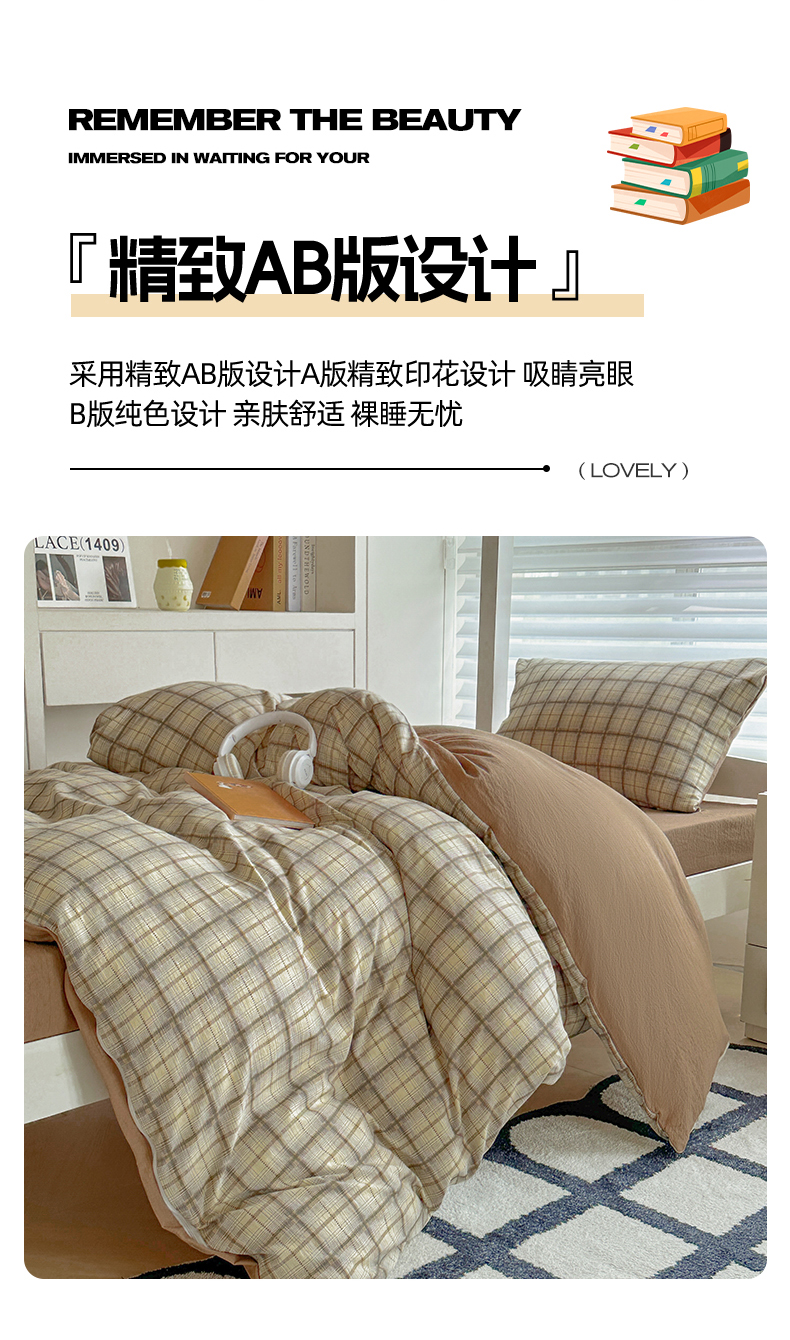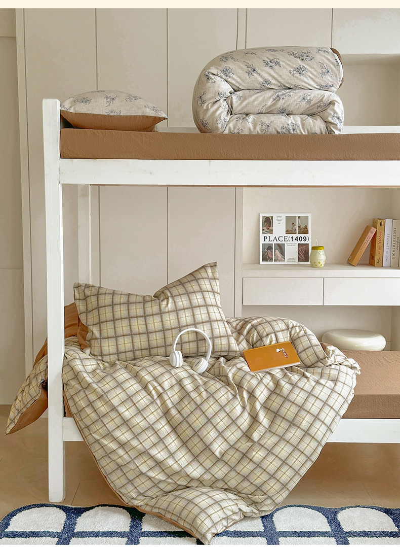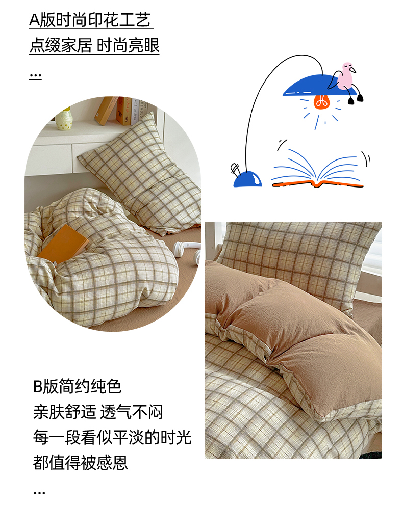 (总)雨田家纺 2025新款A类汉麻双层纱学生宿舍三件套上下铺三件套,初春,格韵-咖,快乐时光,紫韵