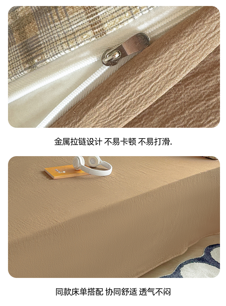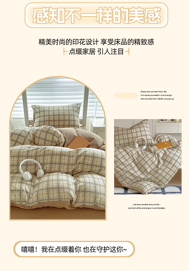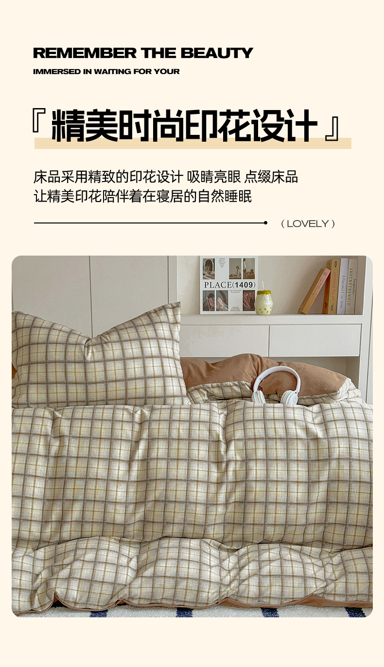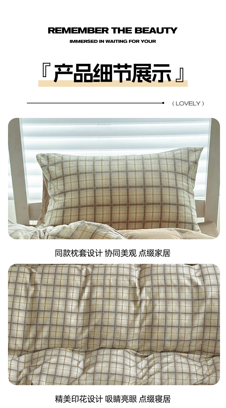商品名称:雨田家纺 2025新款A类汉麻双层纱学生宿舍三件套上下铺三件套 格韵-咖