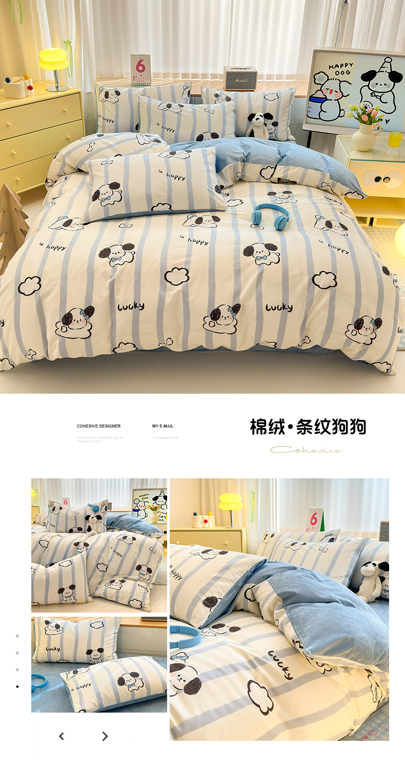 (总)清雅福 2026春夏新款INS小清新40支全棉13372四件套第一批,棒棒糖女孩,春之约定,点点小狗,动物聚会,豆丁小熊,粉心狗,富贵狗,果子象,含羞草,假日小狗