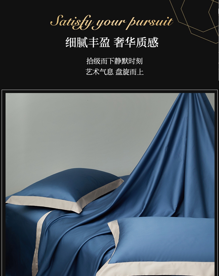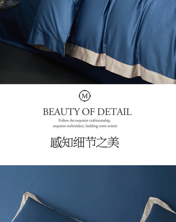 柔觉家纺 天丝刺绣贡缎提花全棉四件套,柔梦-海蓝