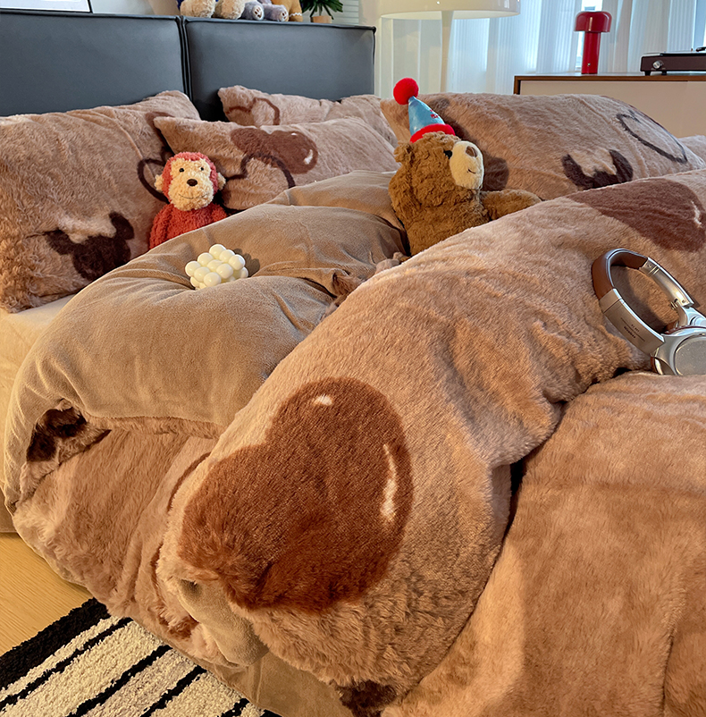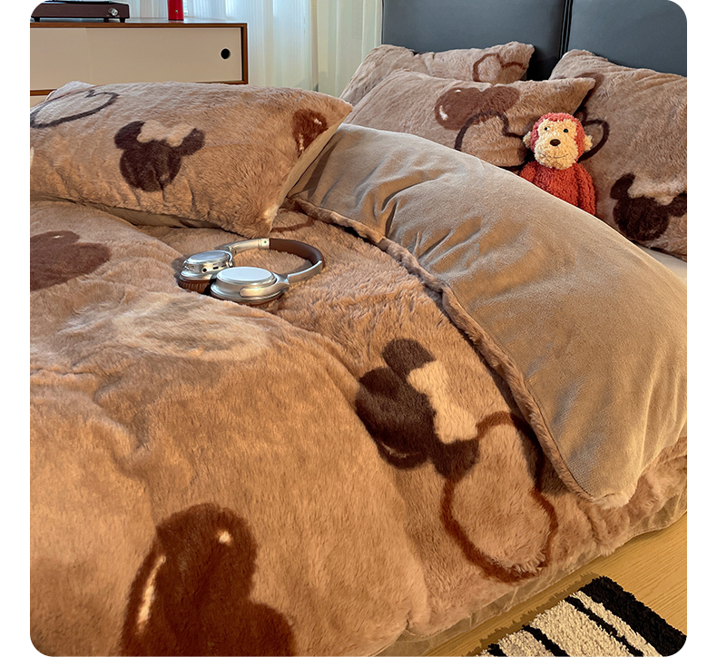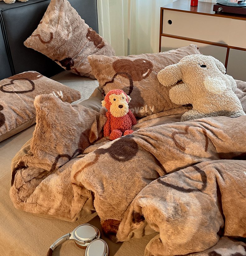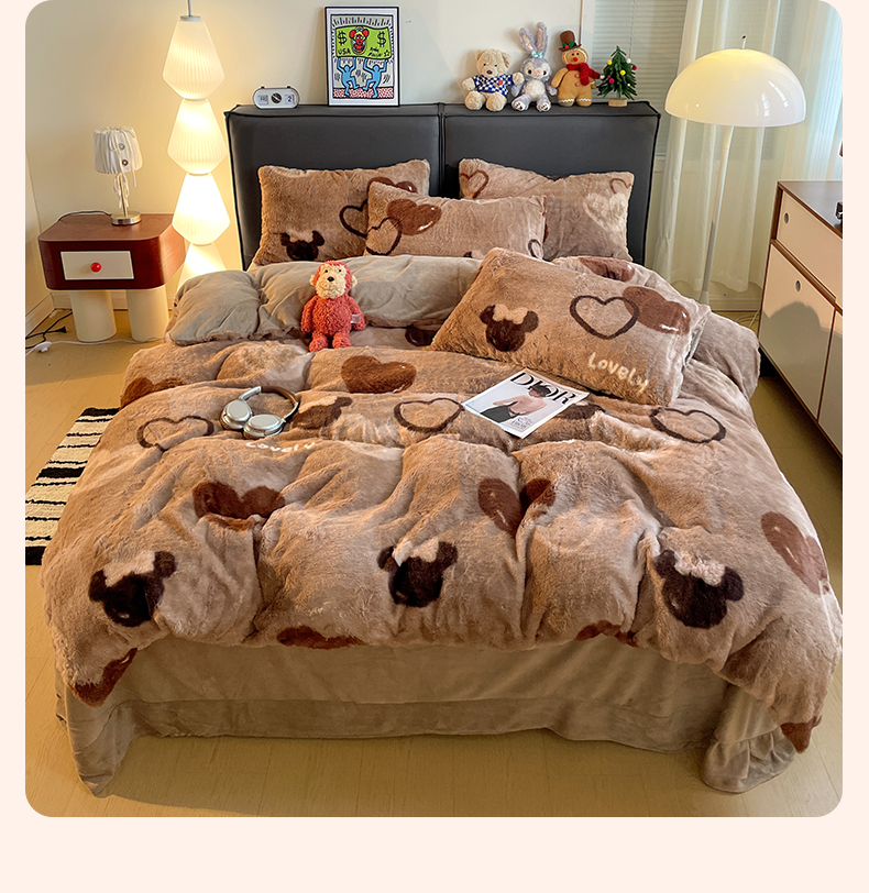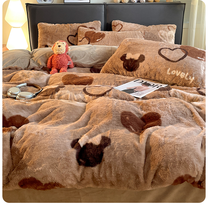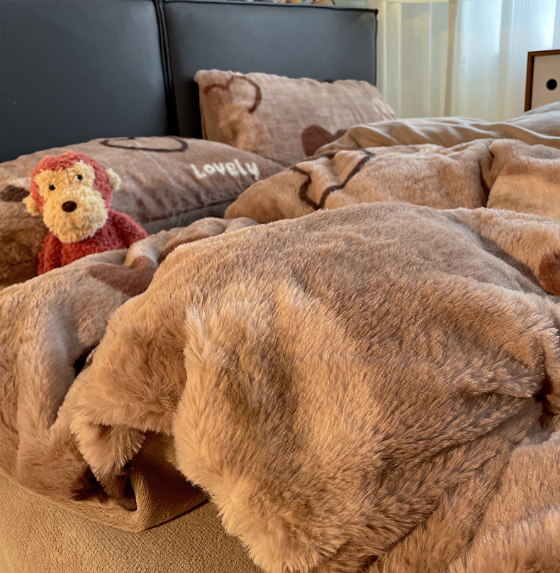 金梦拉 2025直播爆款A类加厚兔绒印花系列四件套 可可爱心