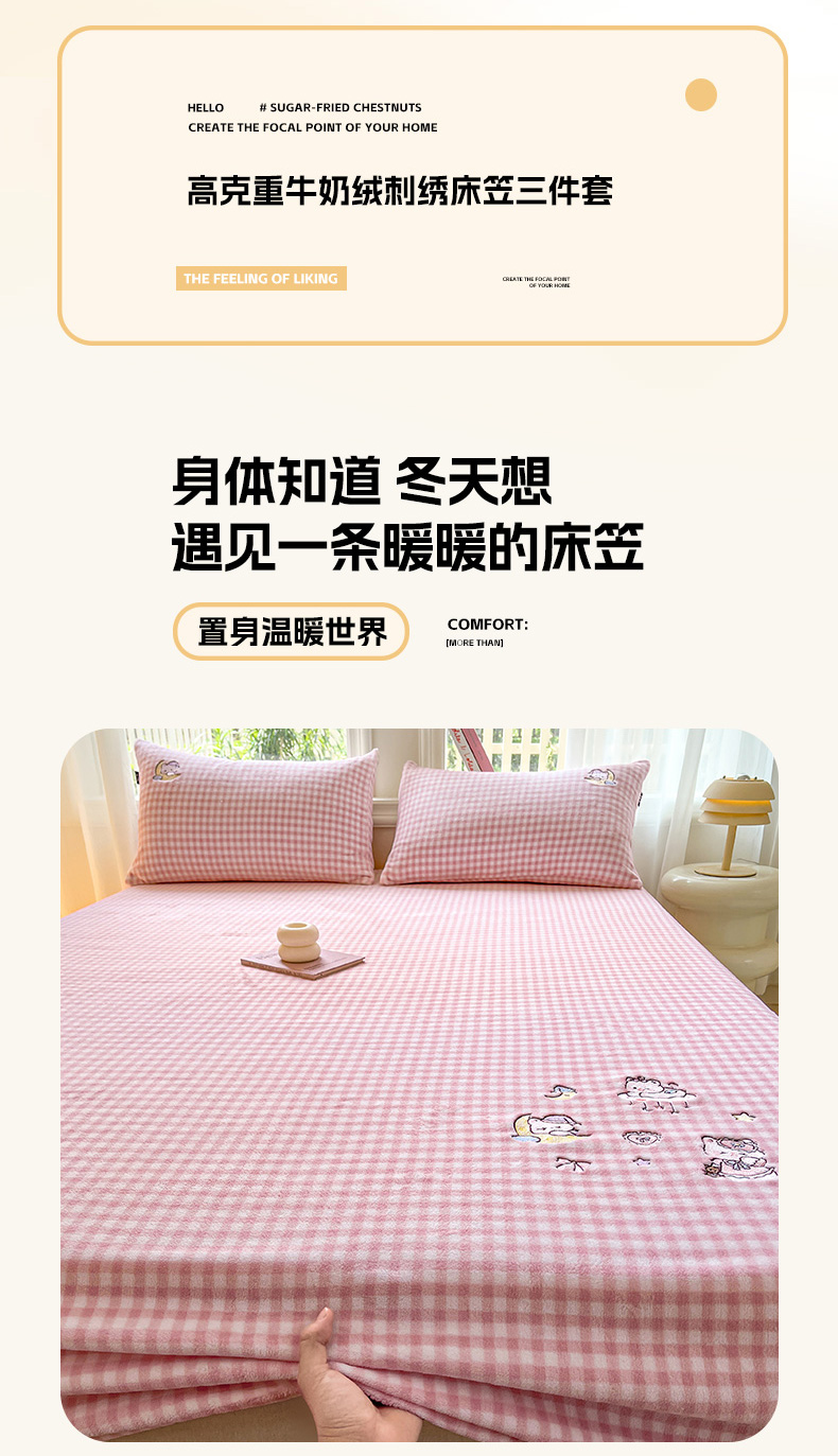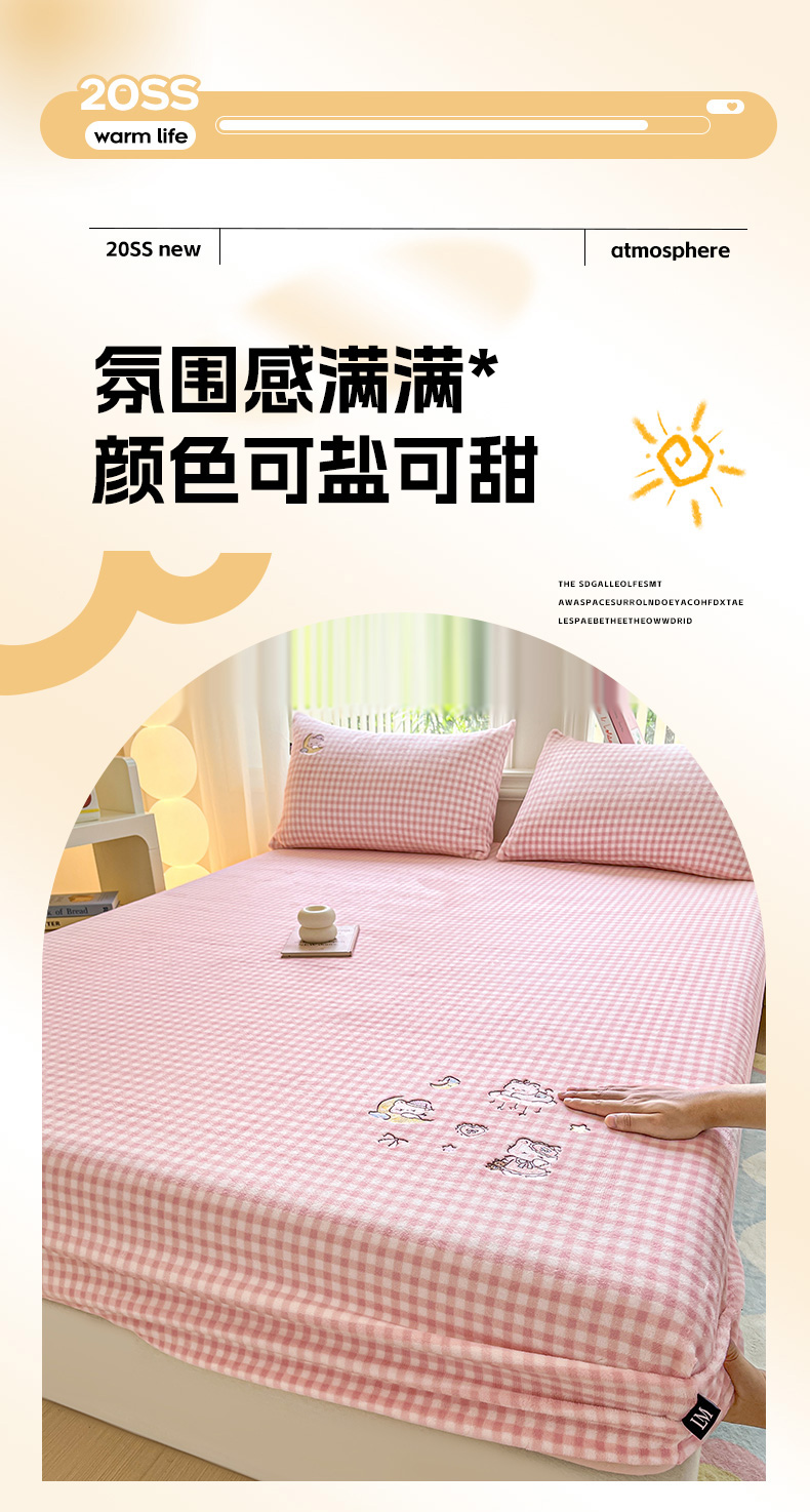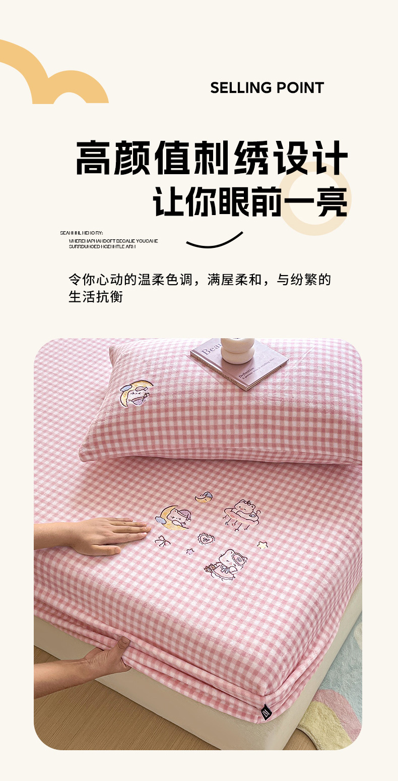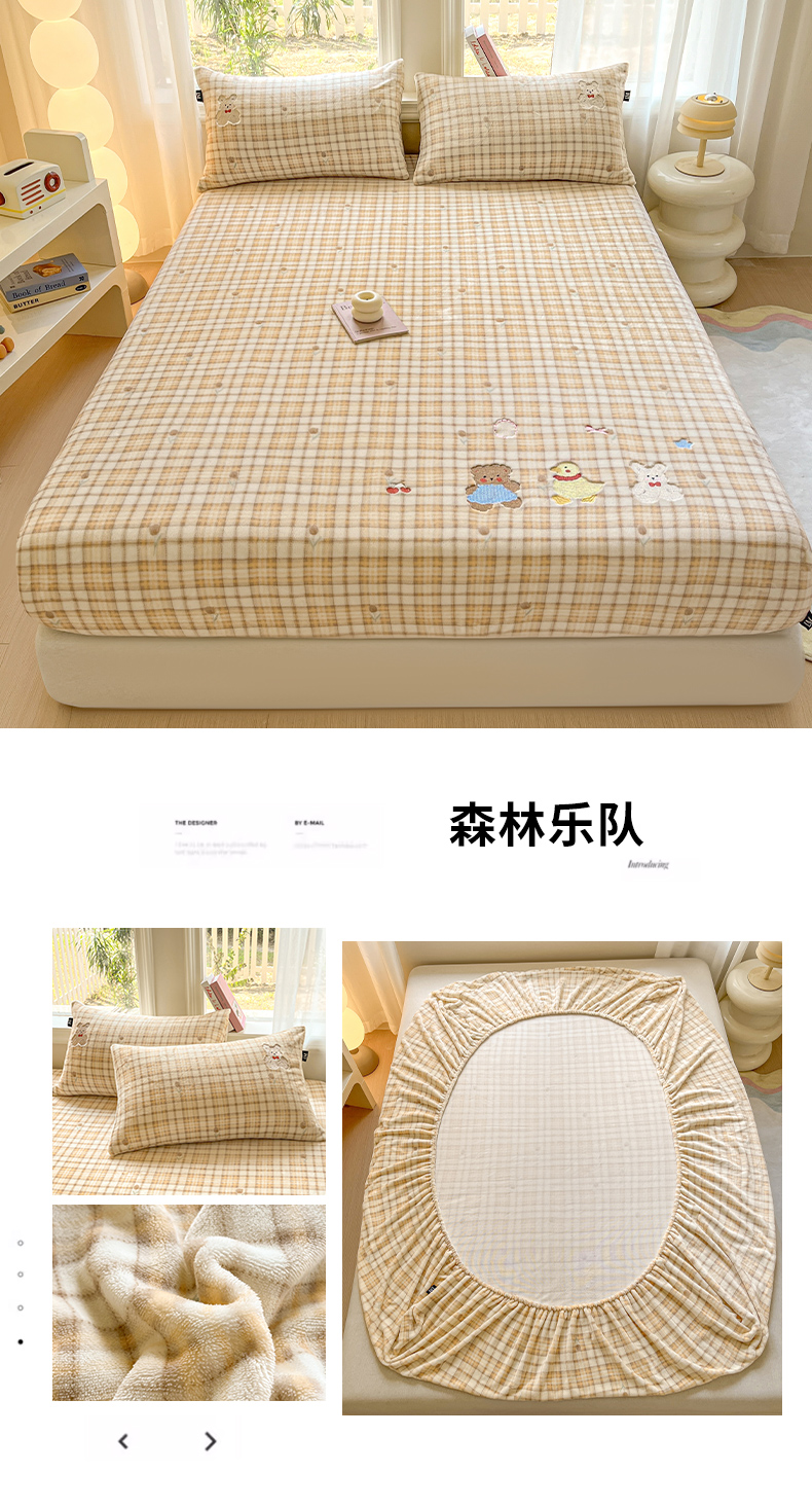 (总)乐美家纺 2025新款A类高克重刺绣牛奶绒床笠三件套,好朋狗,森林乐队,熊熊派对,小熊奶盖,萌宠派对,萝莉猫