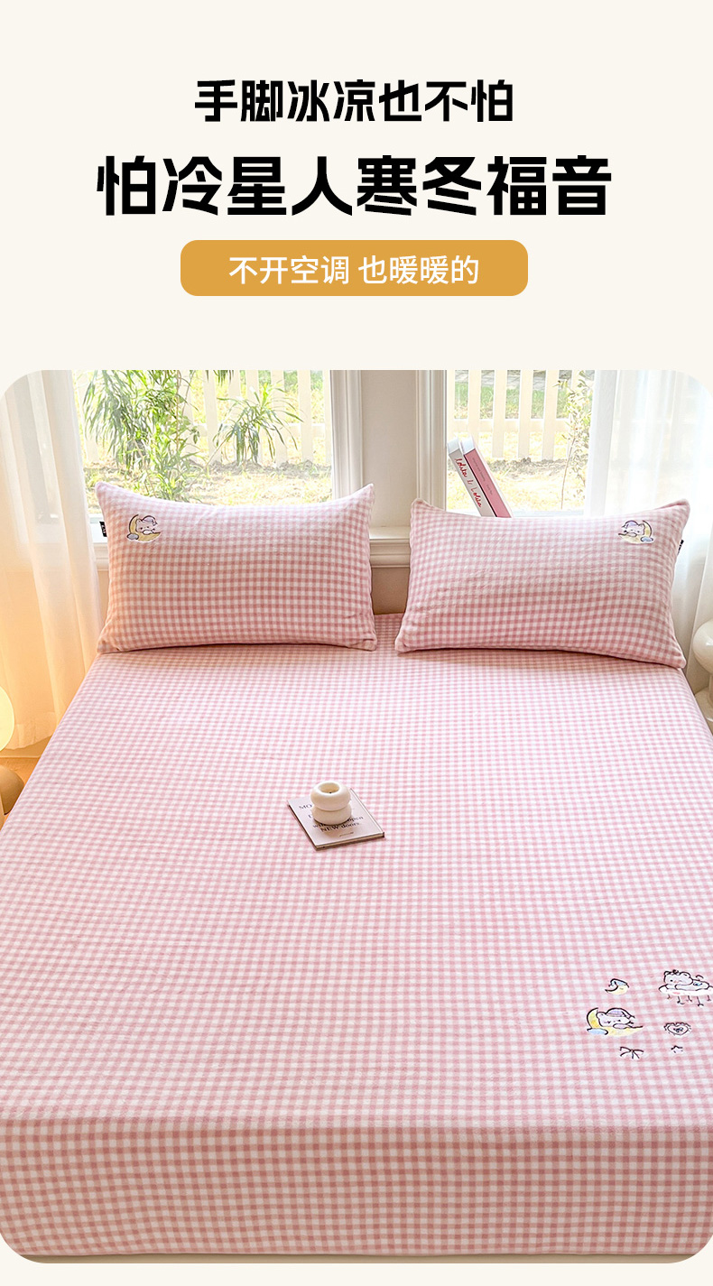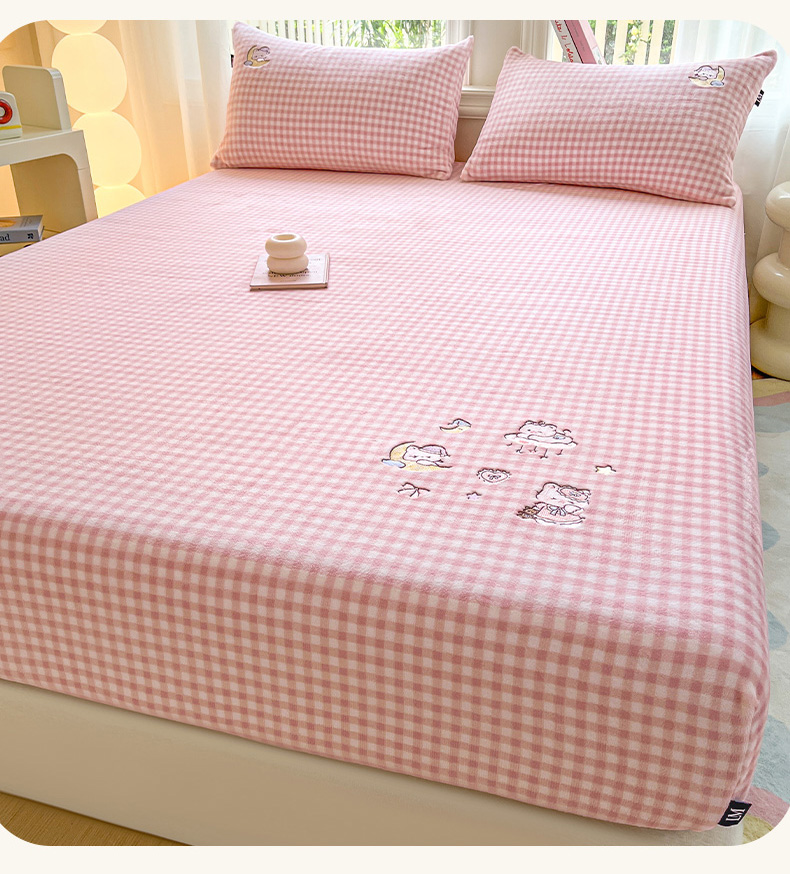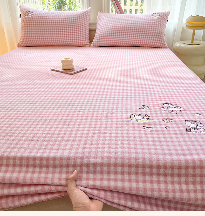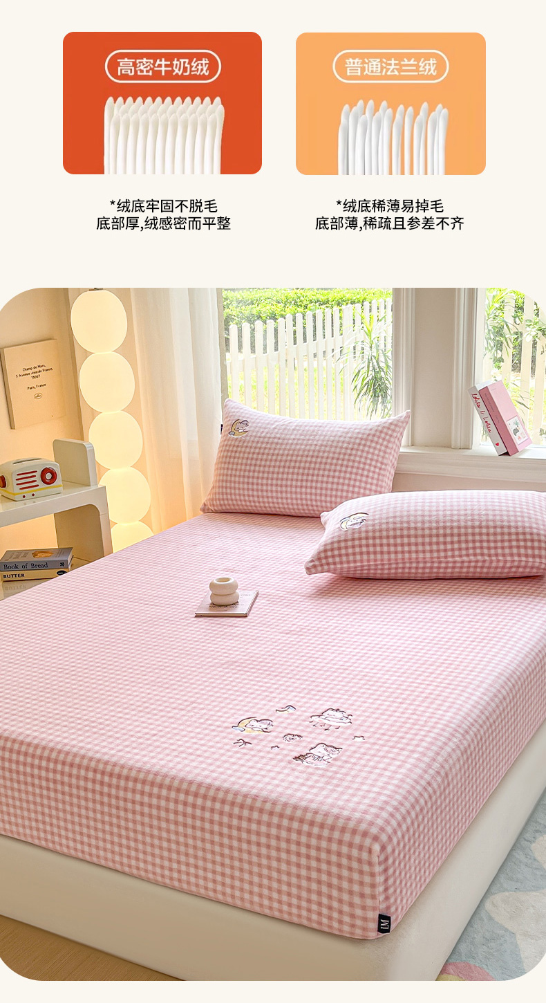 乐美家纺 2025新款A类高克重刺绣牛奶绒床笠三件套 萝莉猫