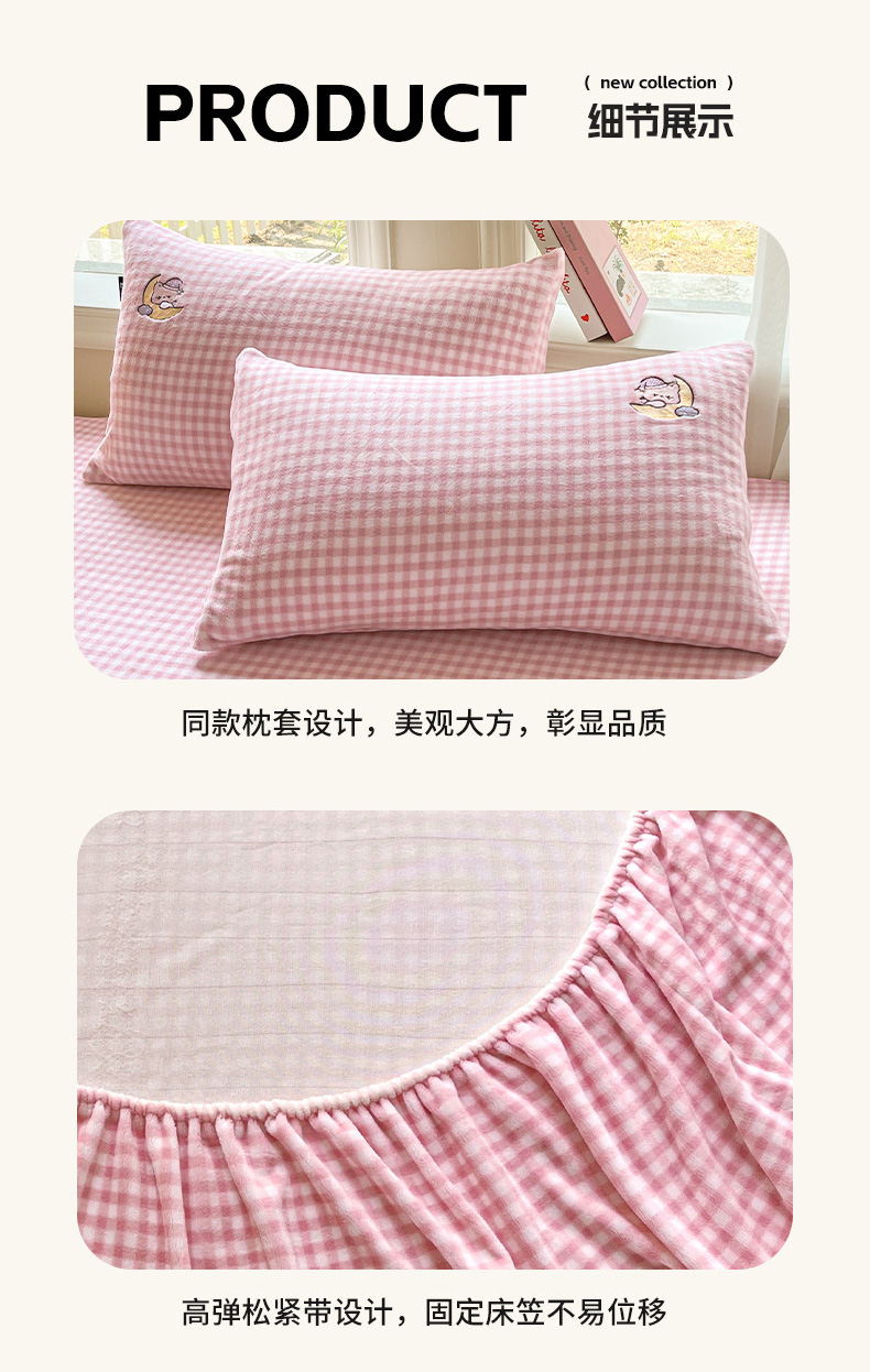 商品名称:乐美家纺 2025新款A类高克重刺绣牛奶绒床笠三件套 萝莉猫