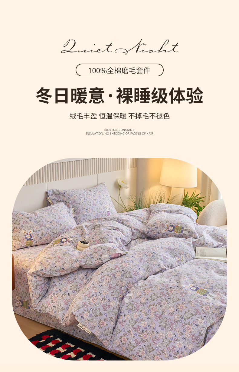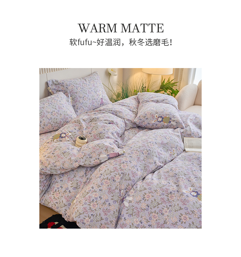 当前位置: 91家纺网 > 商品网购 > 床品套件 > 四件套 > 普通磨毛四件套 > 春皖家纺 2025新款原棉磨毛四件套-风格一萌萌兔