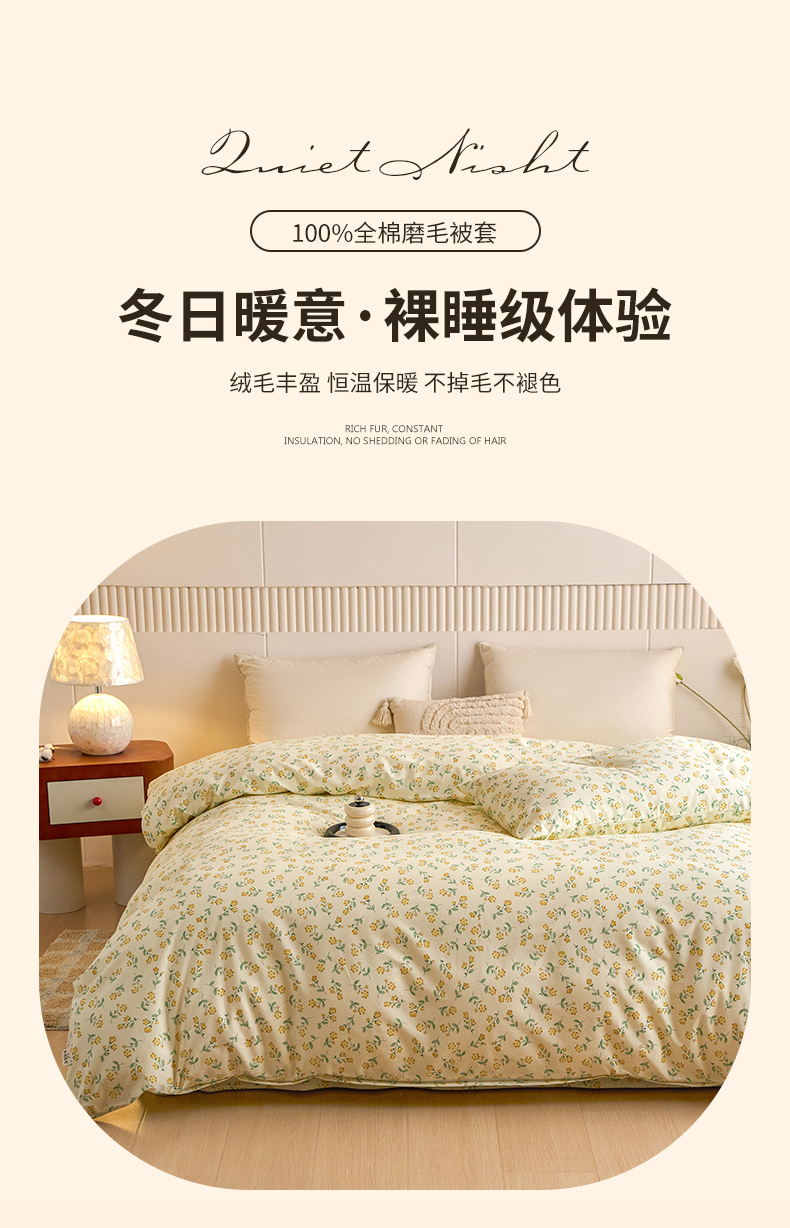 商品名称:春皖家纺 2025新款全棉原棉磨毛色织水洗单被套回暖系列-风格二 知春意