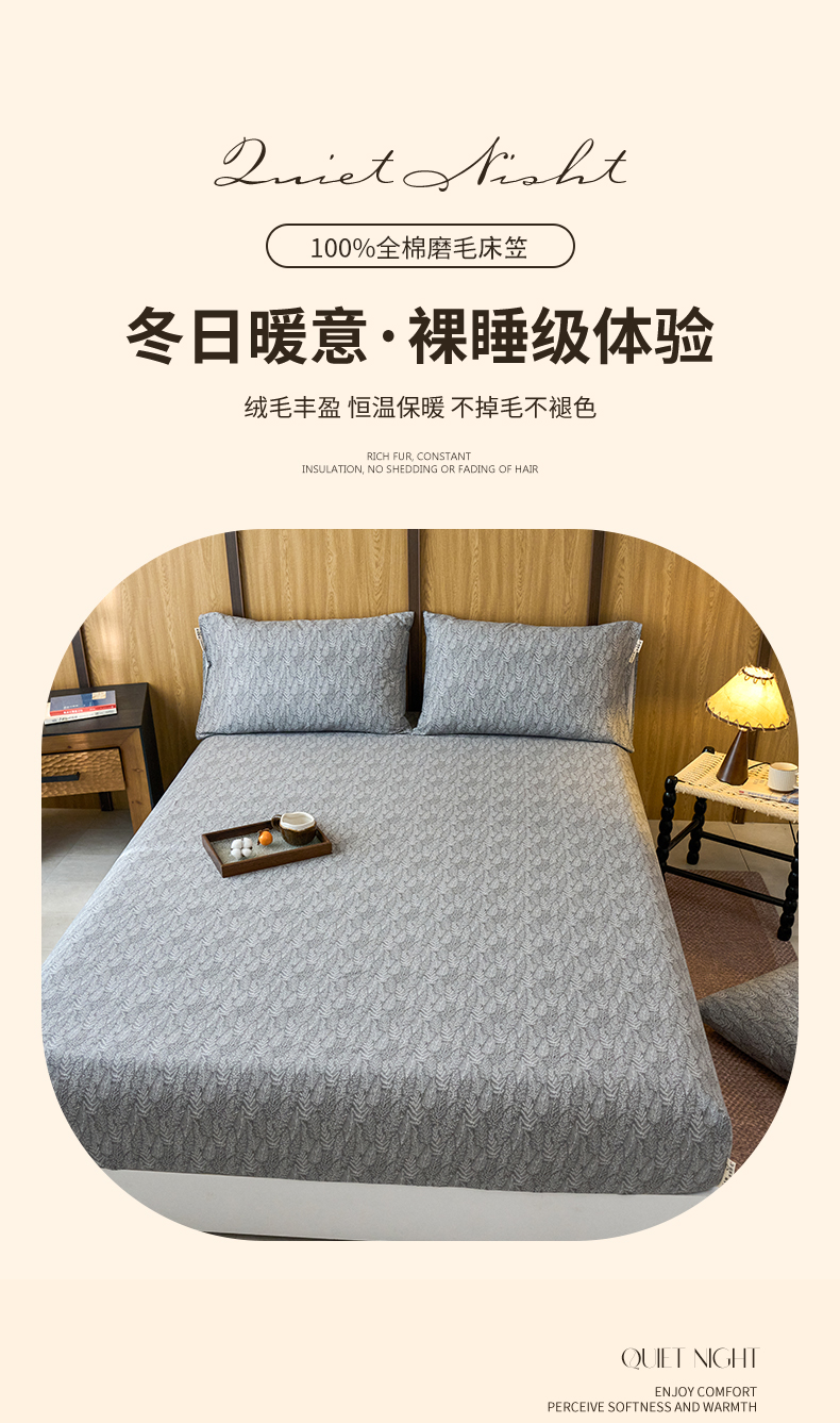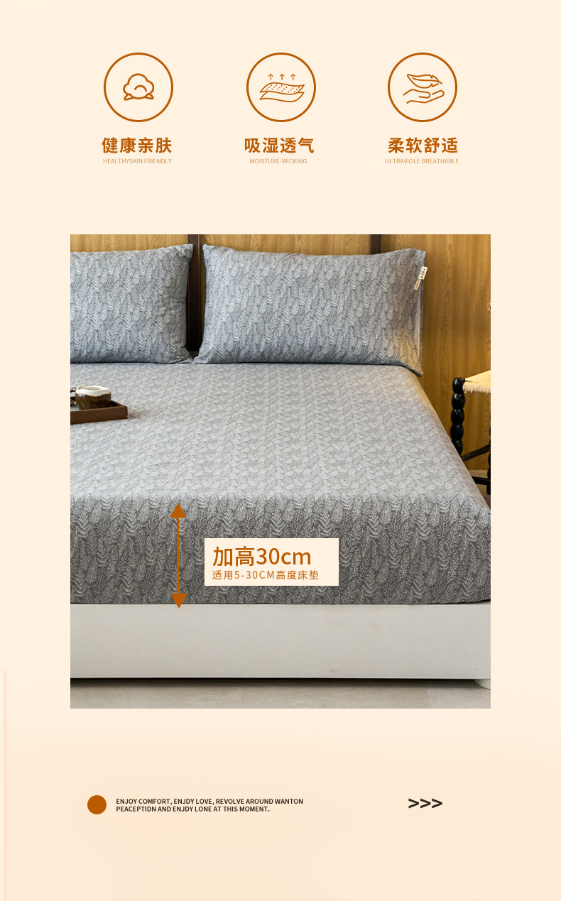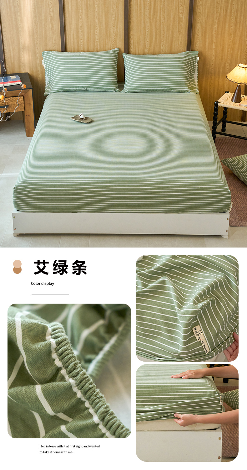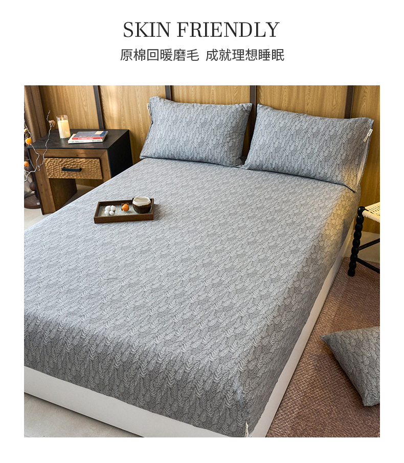 春皖家纺 2025新款全棉原棉磨毛色织水洗单床笠回暖系列-风格二 叶相思