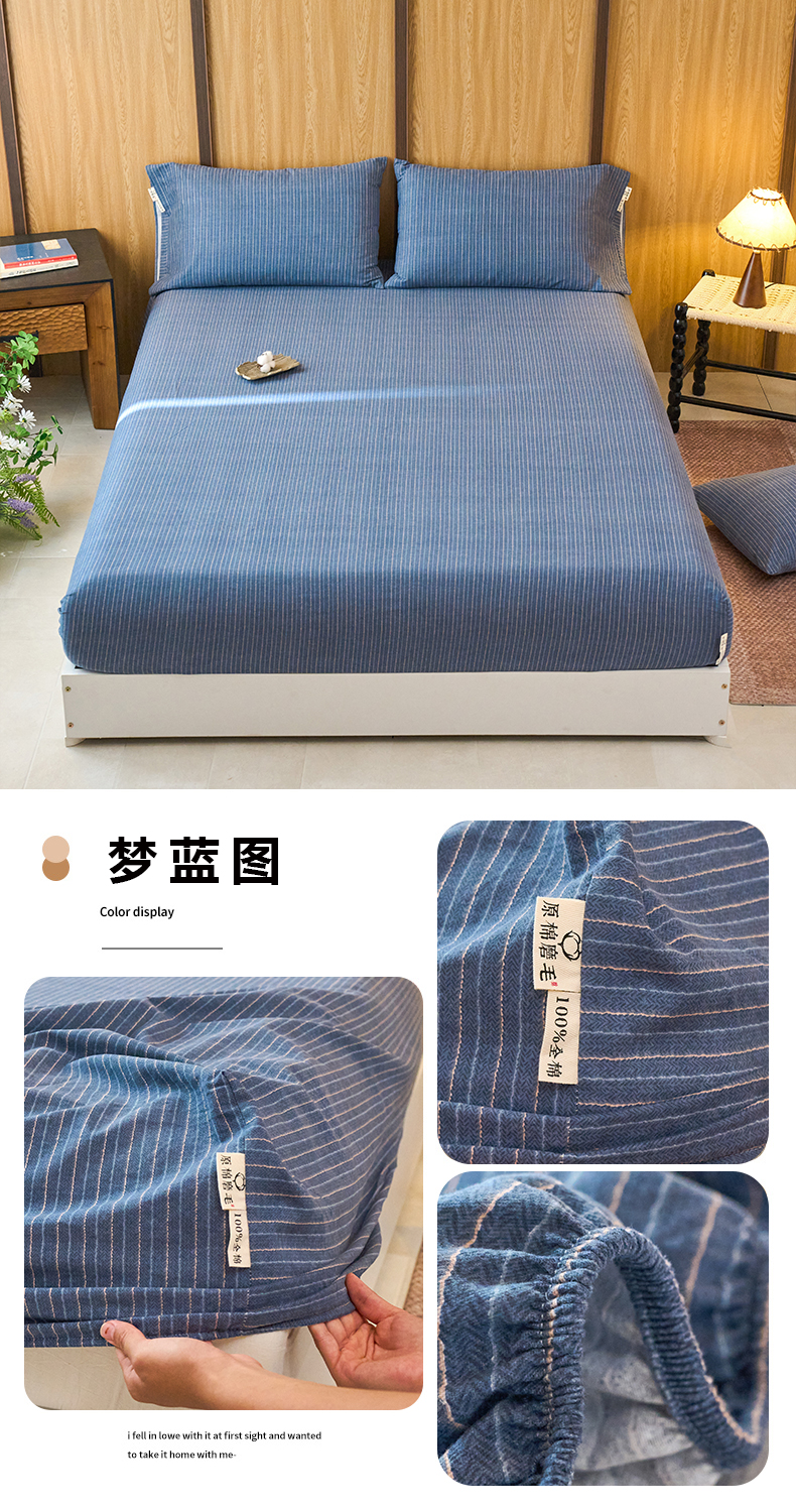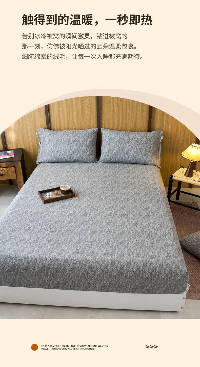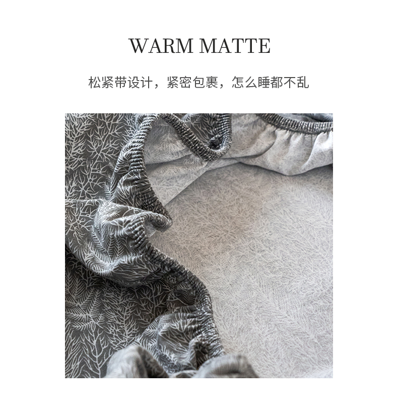 春皖家纺 2025新款全棉原棉磨毛色织水洗单床笠回暖系列-风格二 叶相思