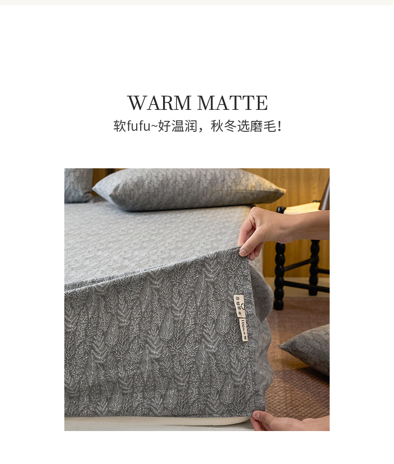 商品名称:春皖家纺 2025新款全棉原棉磨毛色织水洗单床笠回暖系列-风格二 叶相思