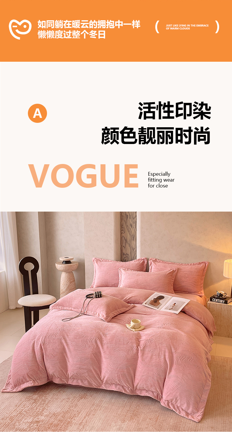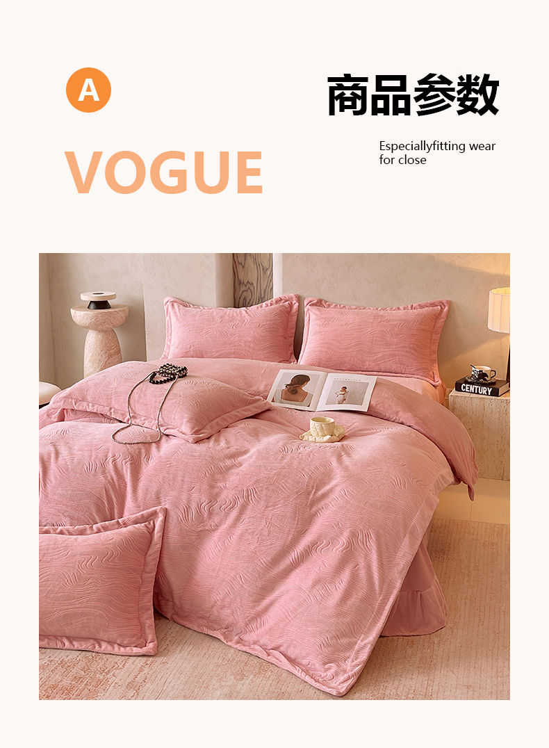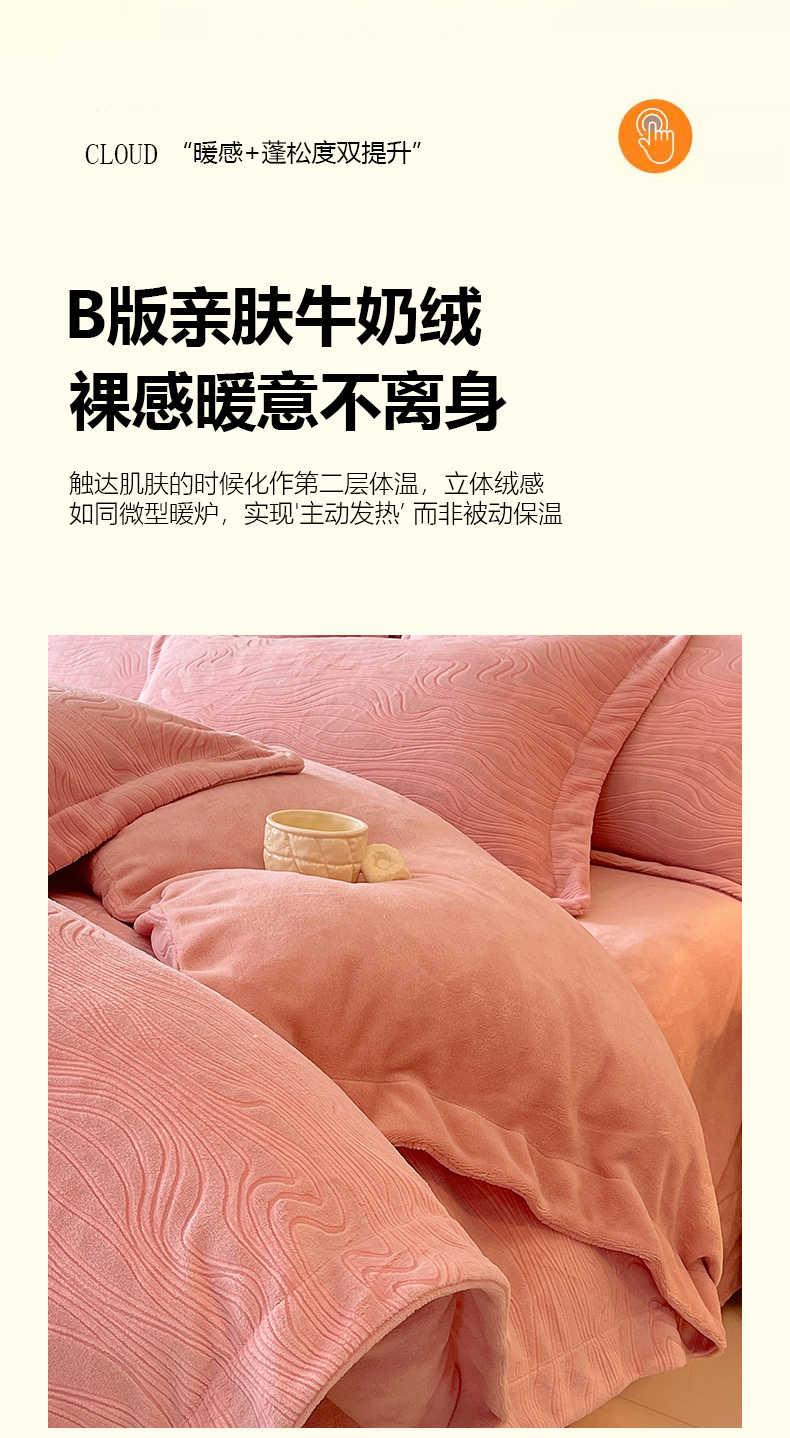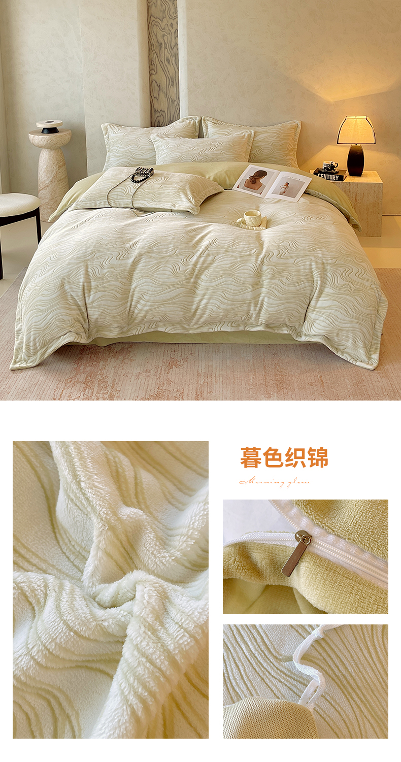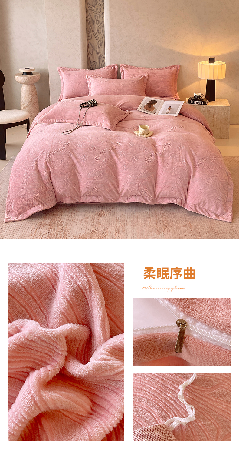 商品名称:春皖家纺 2025新款全消光雕花绒牛奶绒四件套 柔眠序曲